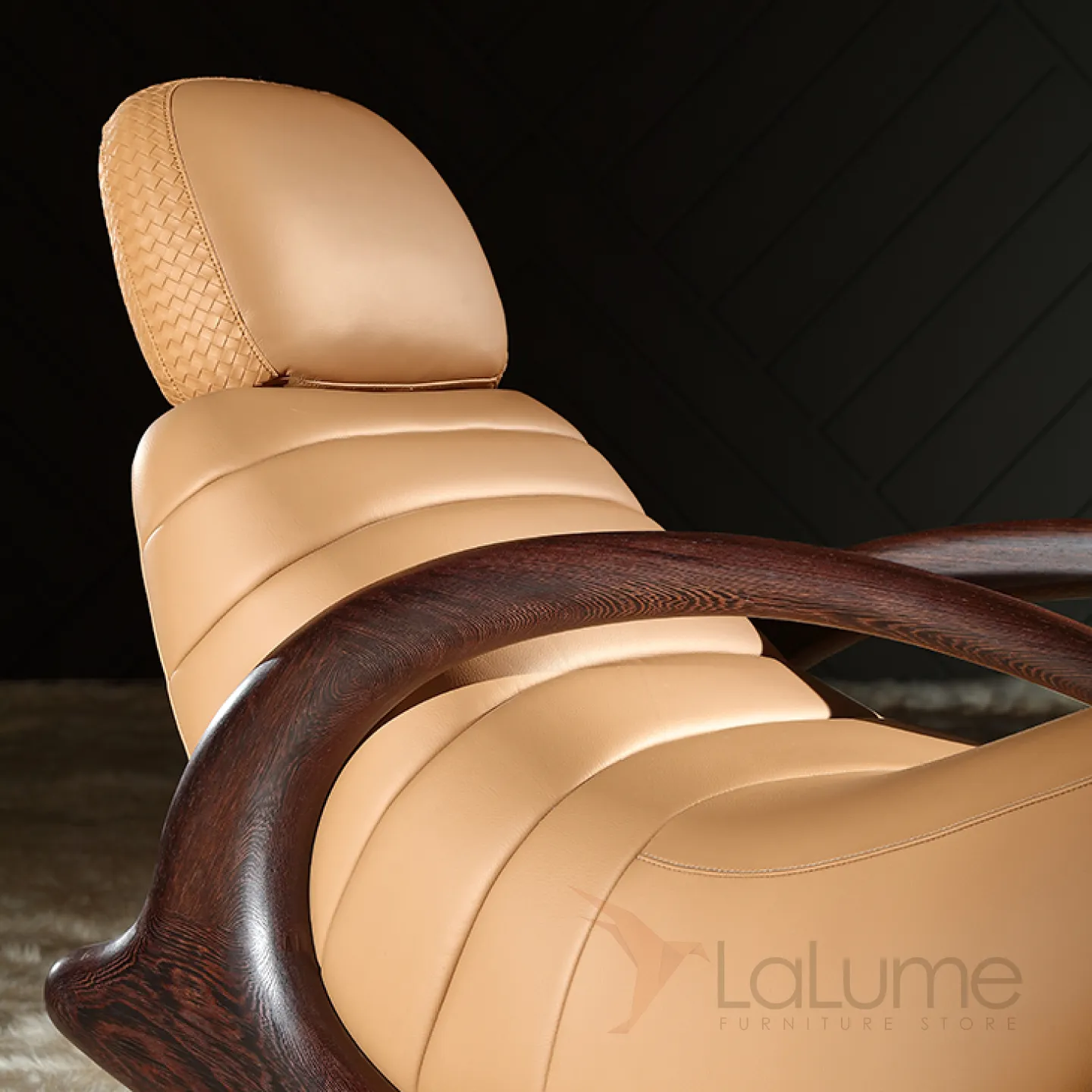 Роскошное кресло-качалка MIVICA из дерева и кожи KR38745-32