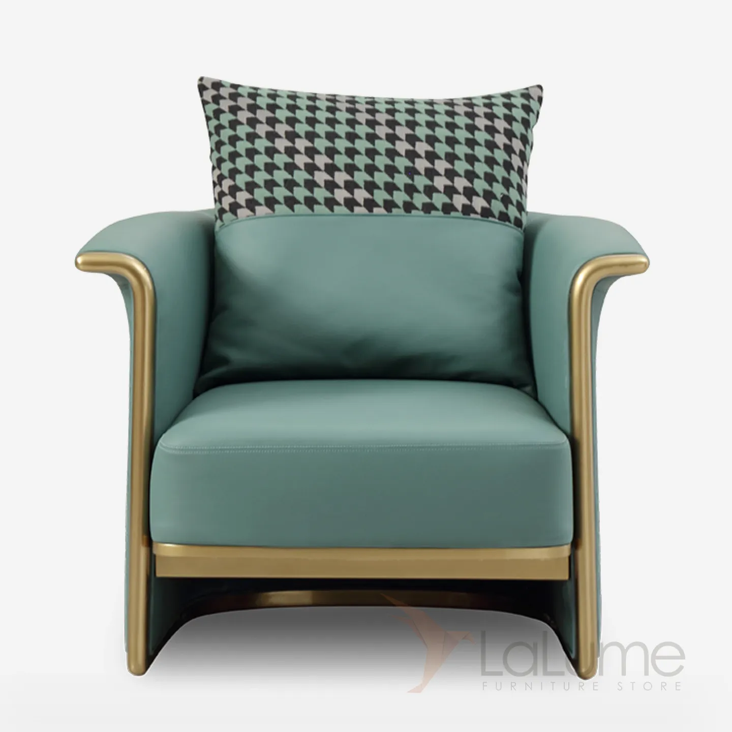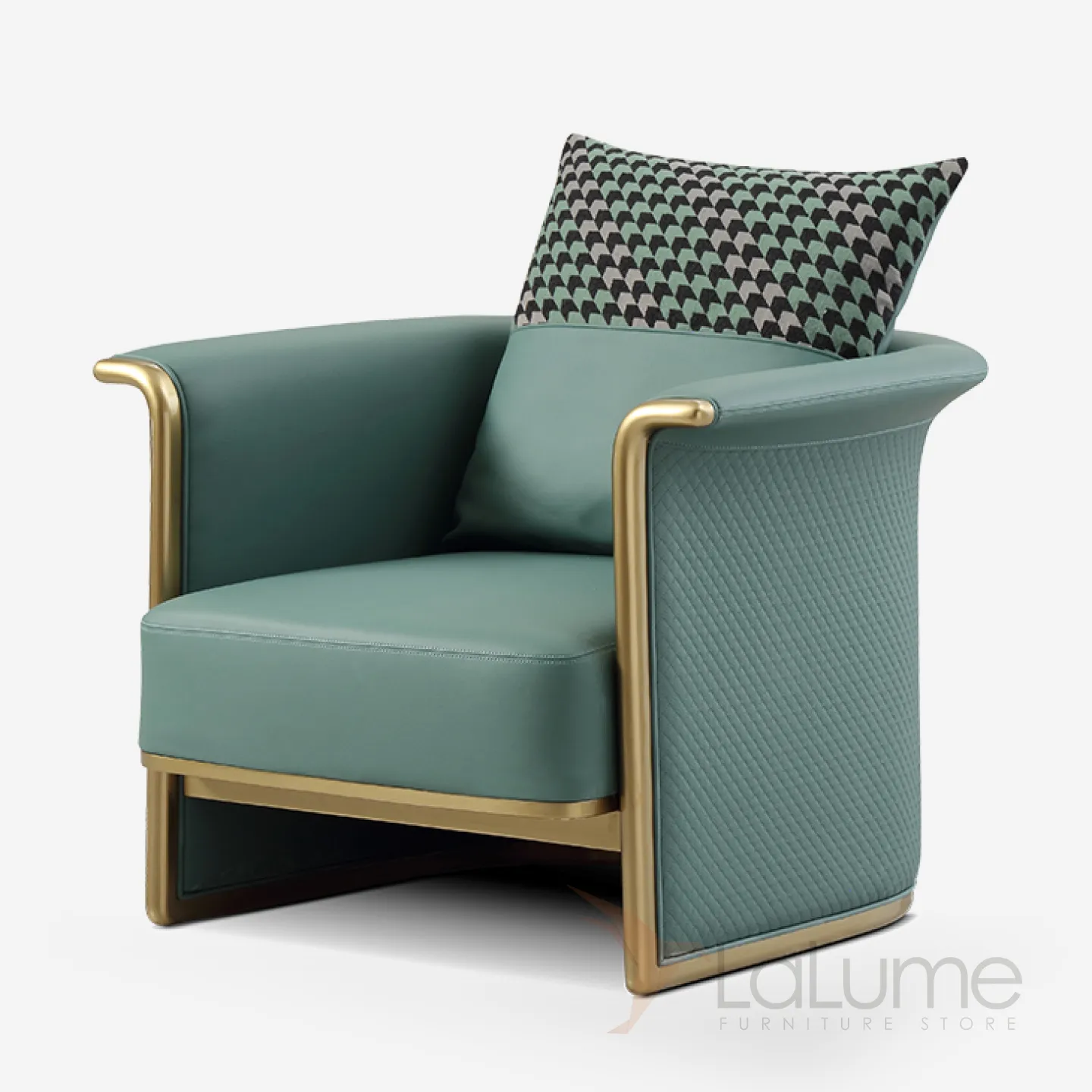Кресло с кожаной обивкой на прочном деревянном каркасе с латунными элементами. Его продуманная конструкция со спинкой и подушкой обеспечивает комфорт и уют в любое время суток.