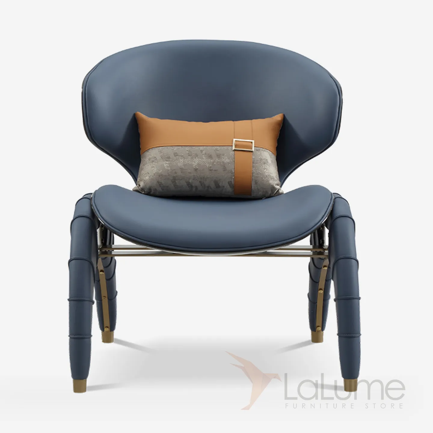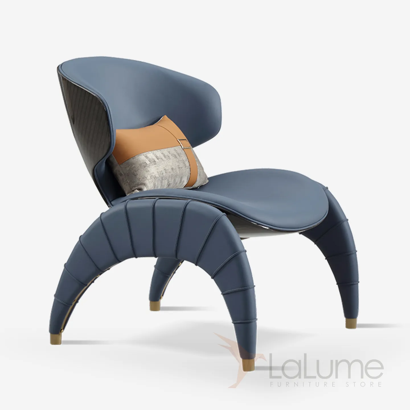 Кресло необычной формы с мягким сиденьем, обитым натуральной кожей. Его продуманная конструкция, включающая спинку и подушку, обеспечивает комфорт в любое время суток.