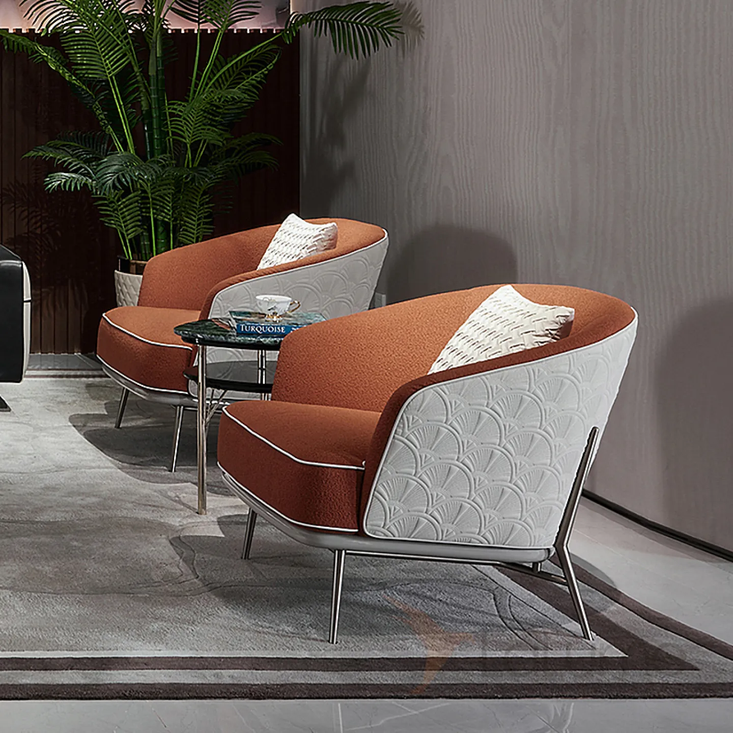 Роскошное кресло MIVICA комбинированное текстиль и кожа KR38845-32