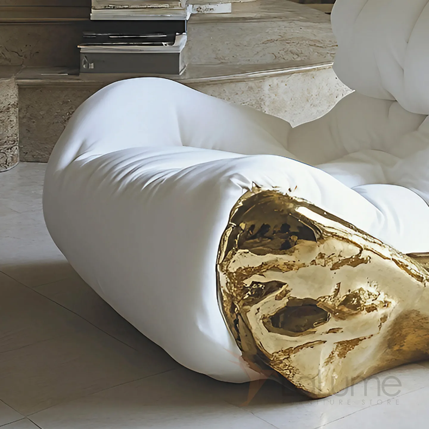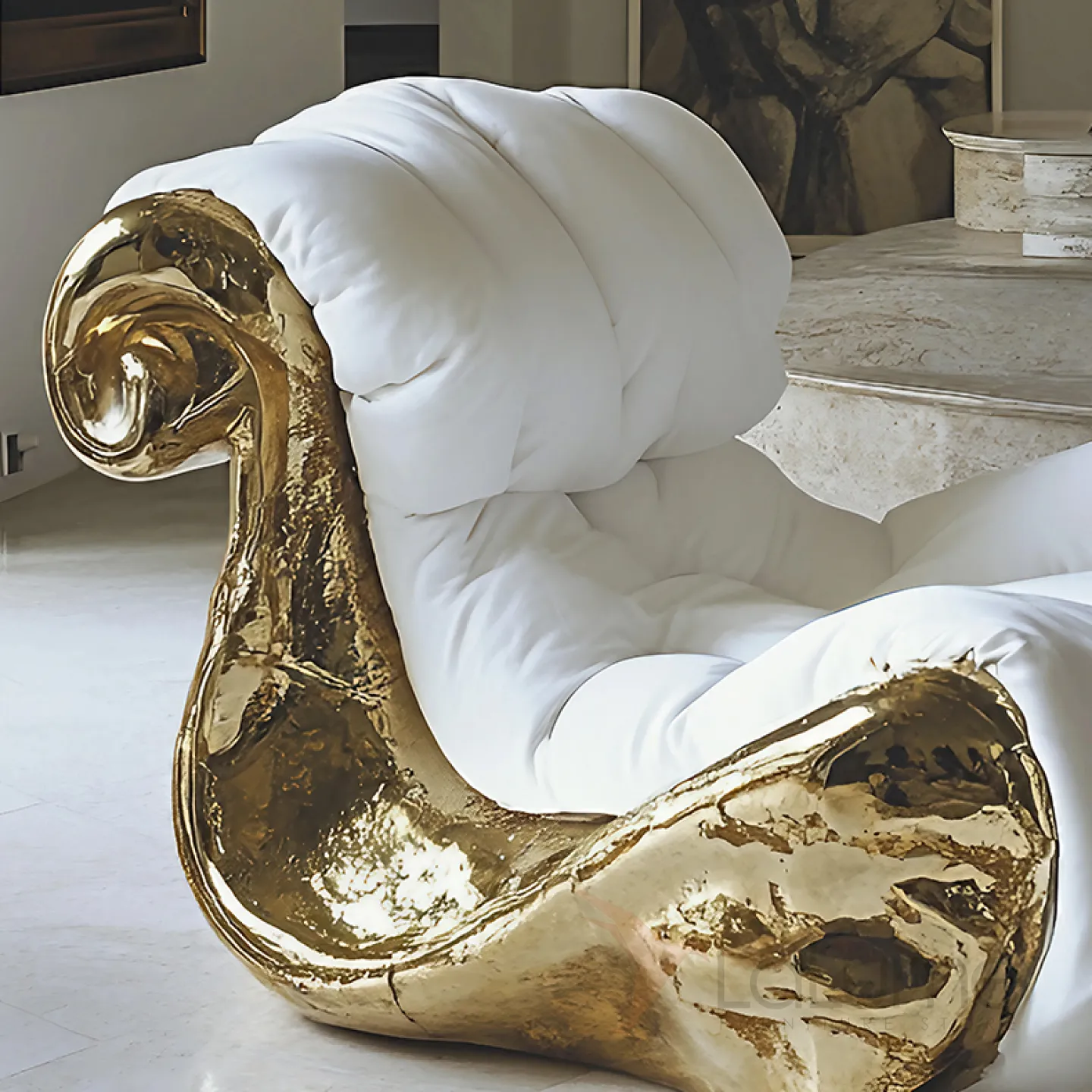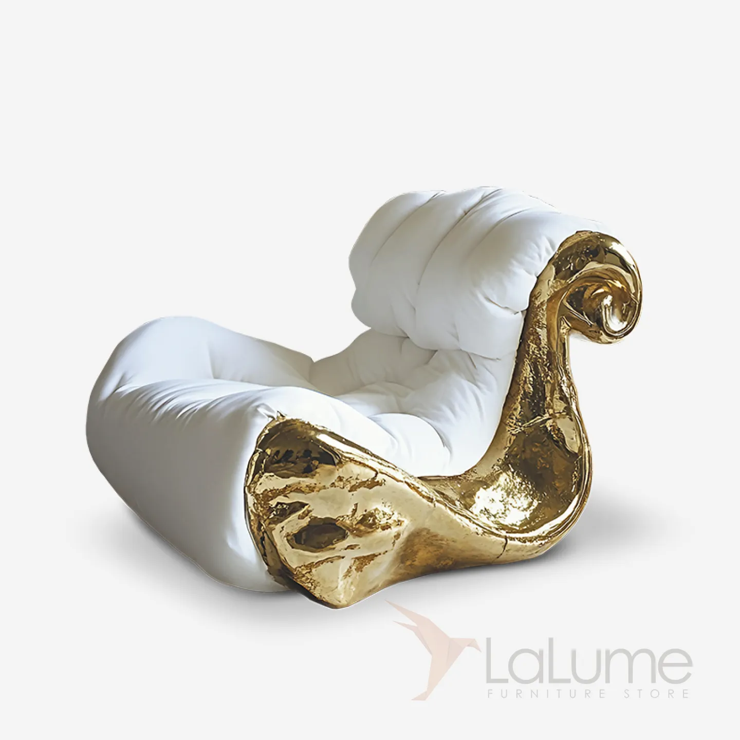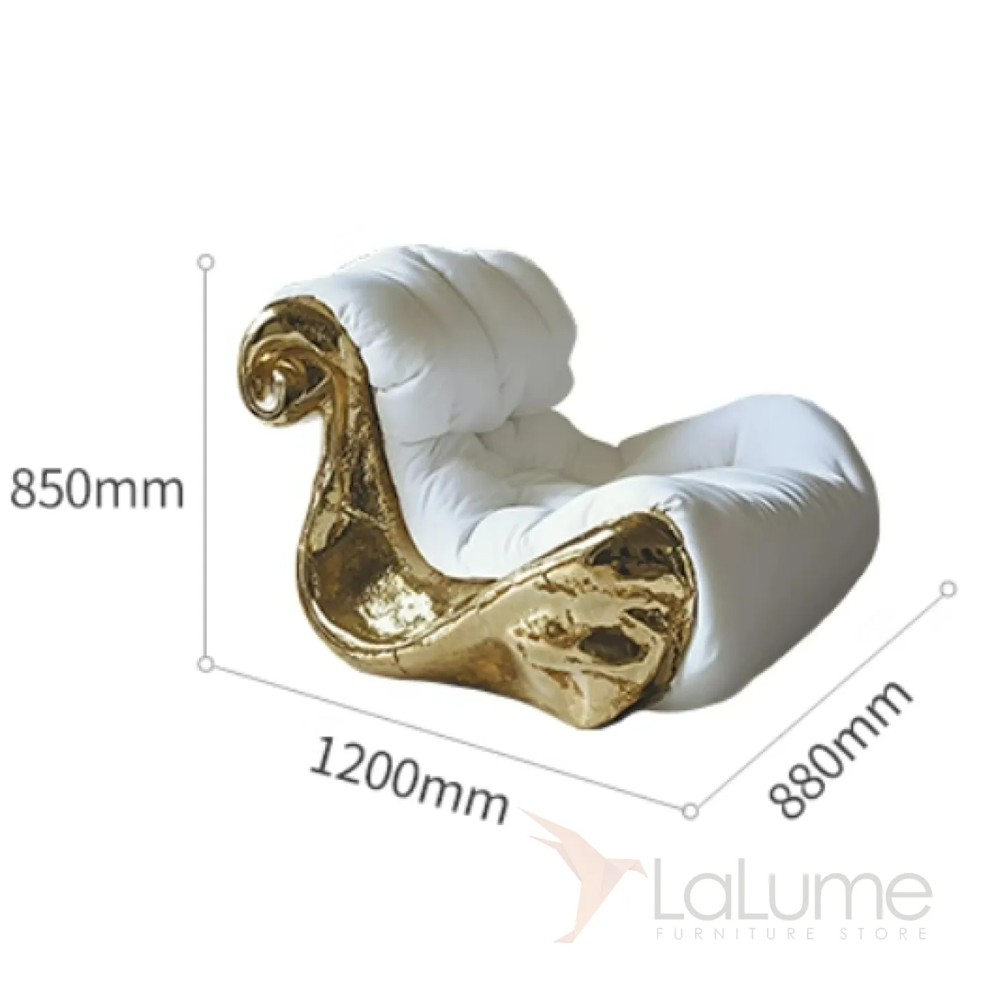 Кресло с необычным дизайном. Его мягкие контуры и грациозные изгибы делают его особенно привлекательным. Комбинация белого и золотого цветов в оформлении создаёт ощущение великолепия.