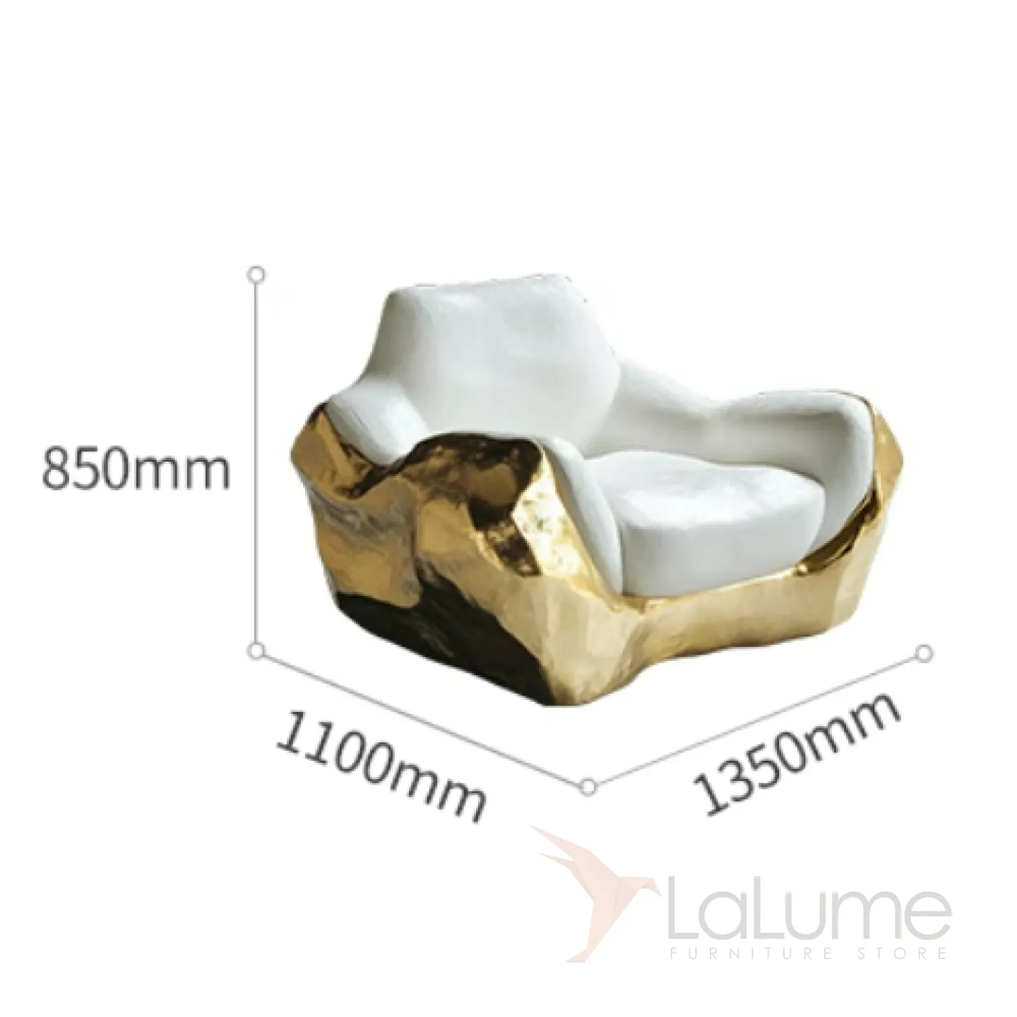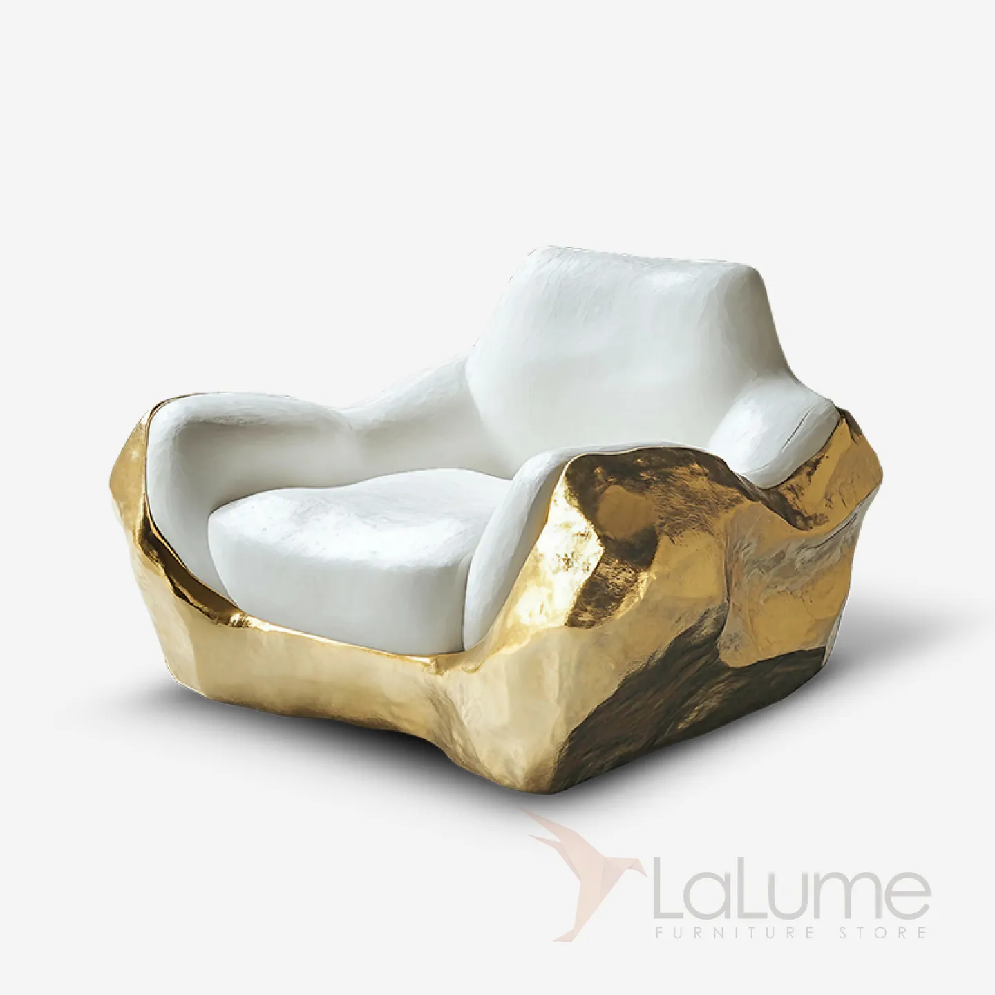 Кресло, выполненное в уникальном стиле, привлекает внимание своей элегантностью и плавными формами. Сочетание белого и золотого цветов в дизайне создаёт ощущение изысканности и богатства.