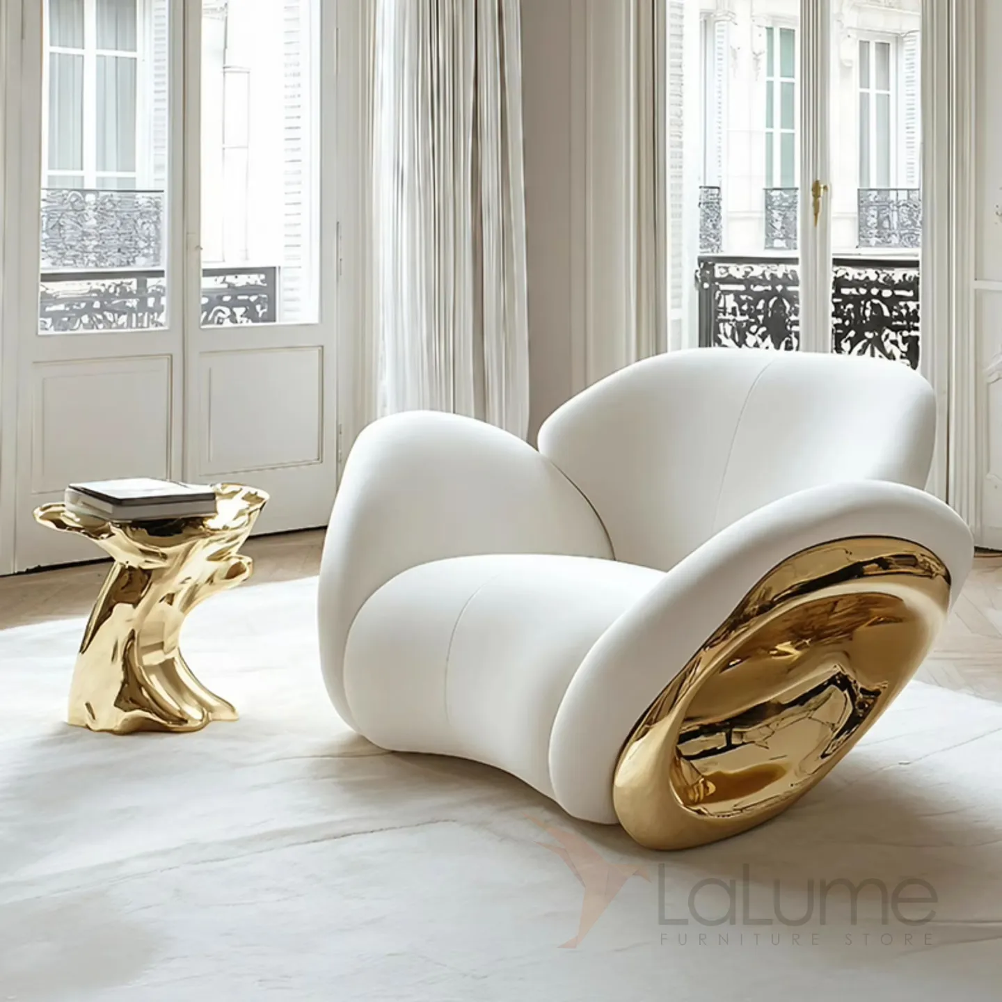 Кресло, которое станет главным украшением вашей гостиной, имеет изысканный дизайн. Его мягкие очертания и элегантные изгибы придают ему неповторимый шарм. А сочетание белого и золотого цветов в отделке создаёт атмосферу изысканности и великолепия.