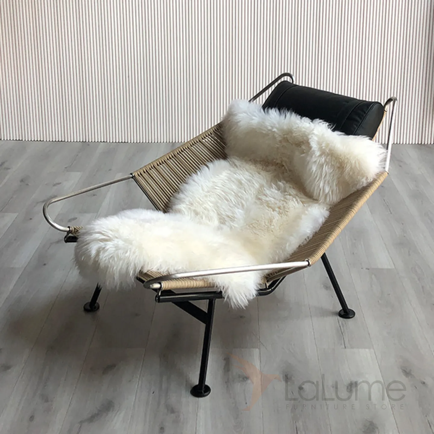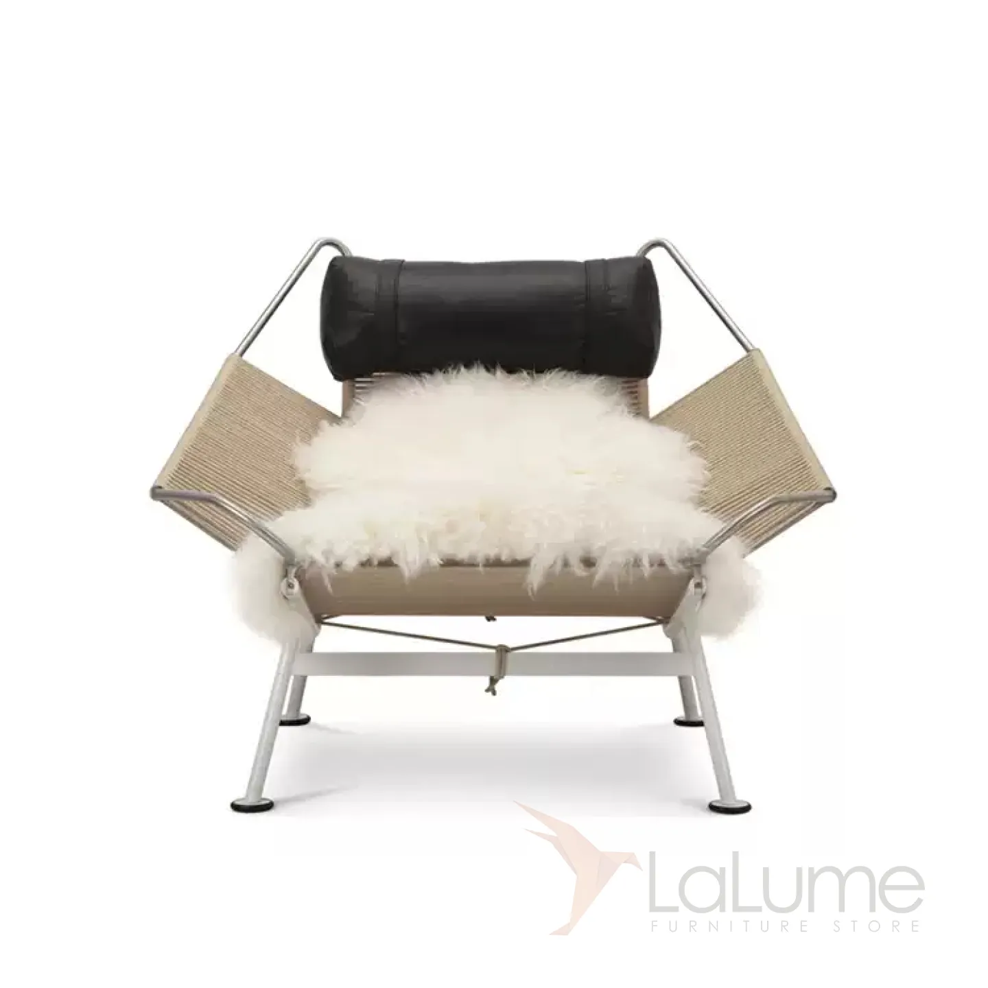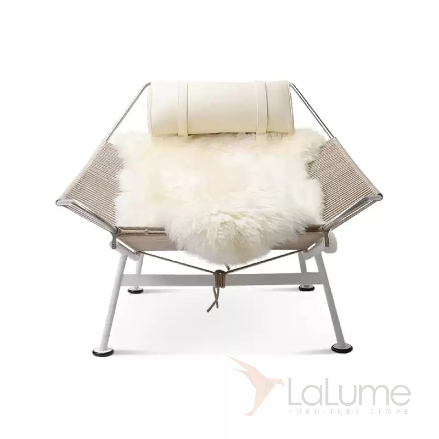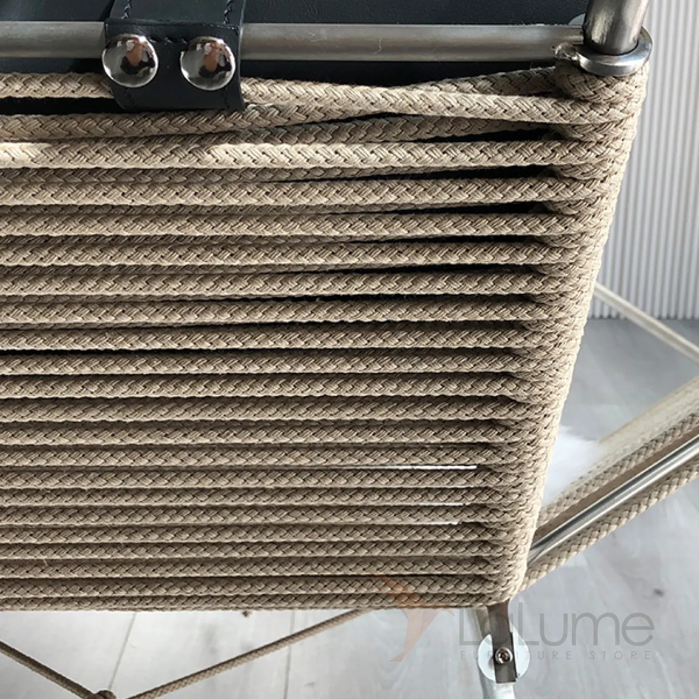 Шезлонг из нержавеющей стали с пеньковой веревкой, с натуральной меховой накидкой и с мягким подголовником. Есть модель без спинки, идеально подходящая для балкона или коридора.