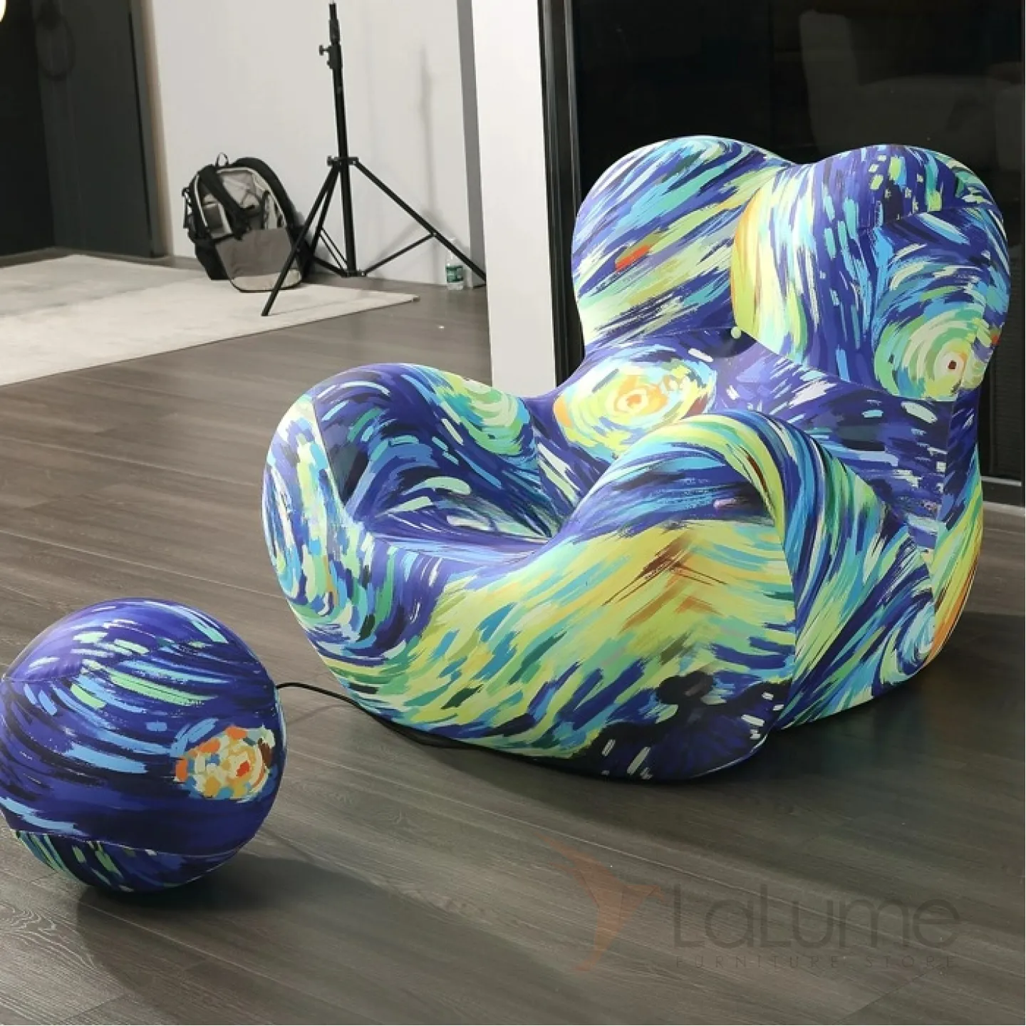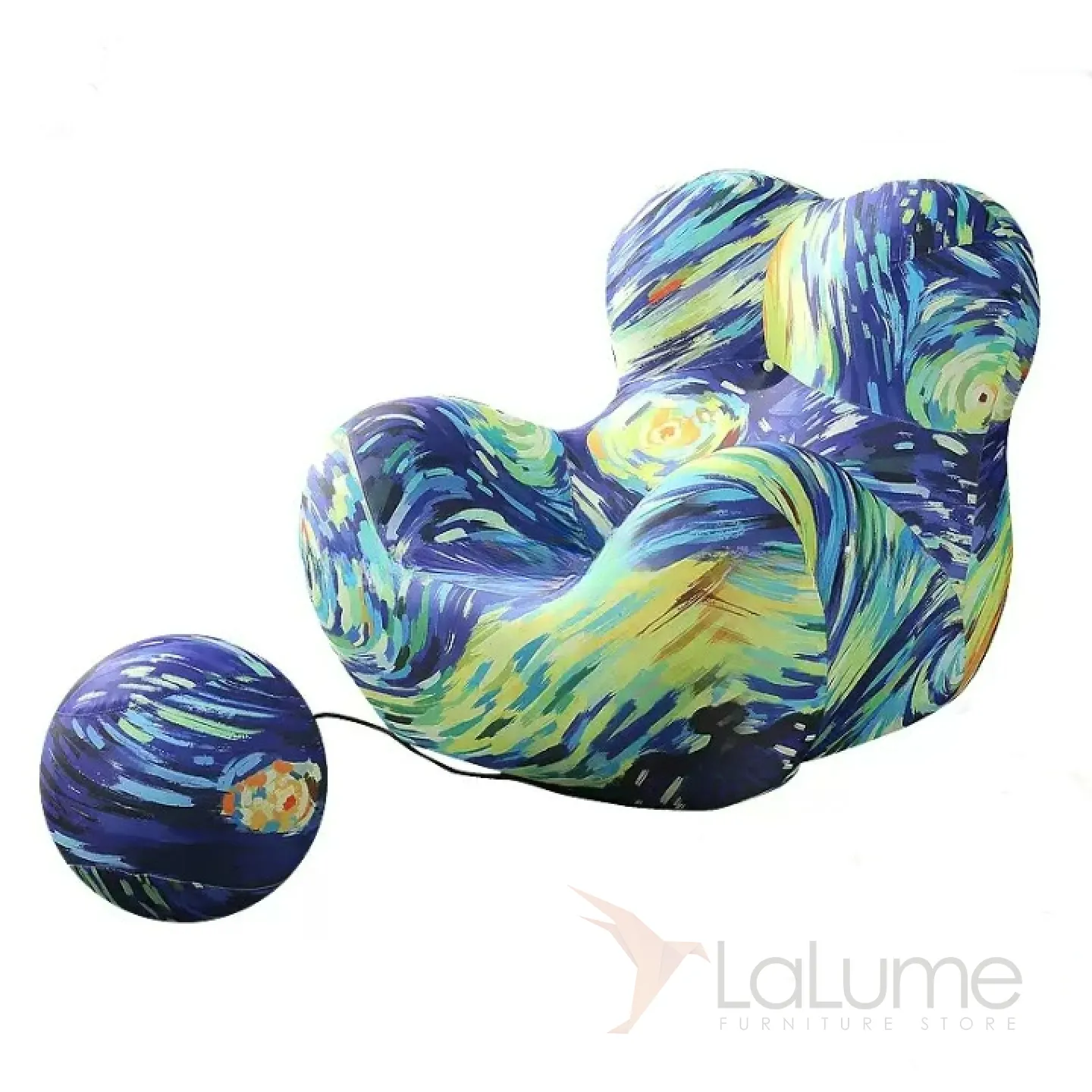Компрессионное кресло с пуфом для ног изготовлено из современного плотного поролона высокой плотности, который сохраняет форму долгие годы. Яркий чехол из трикотажного полотна придает изделию стильный вид.