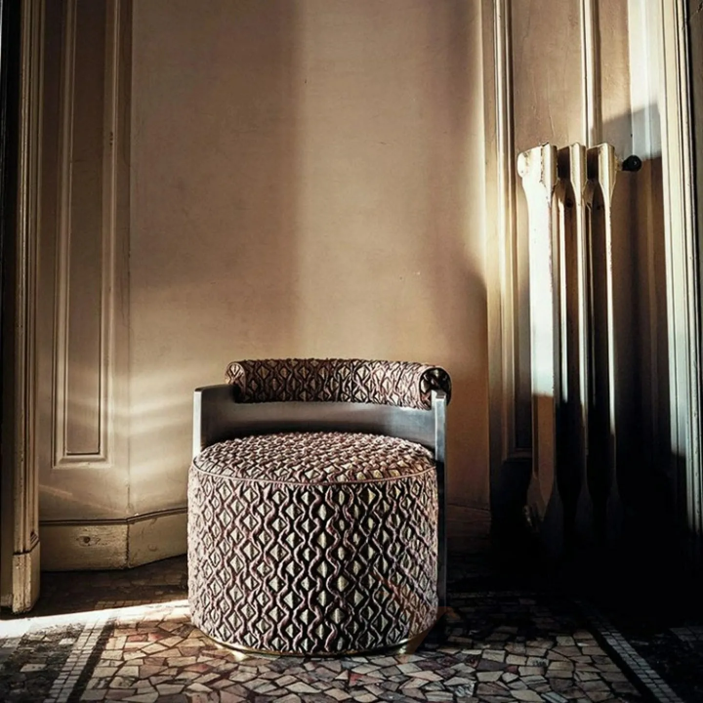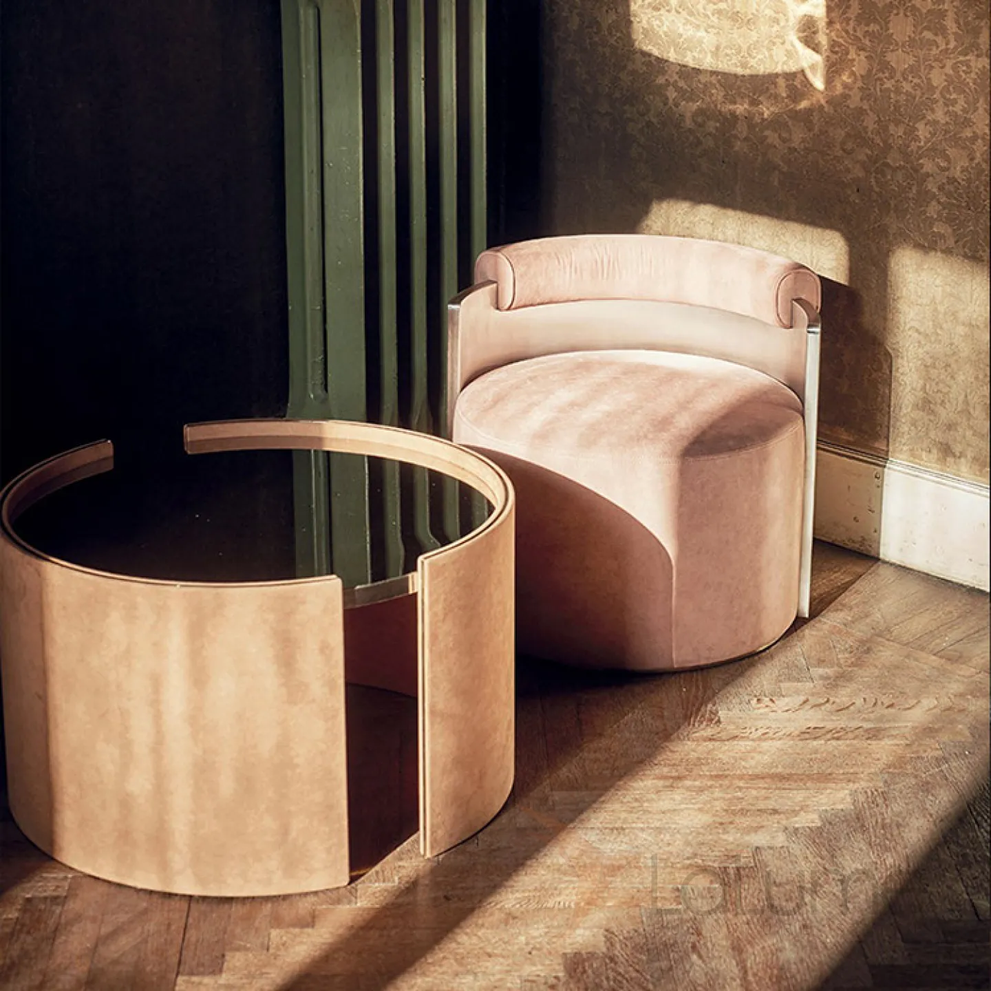 Изящное кресло, выполненное из дерева, с металлической спинкой, покрытой поролоном и текстилем. Доступно в двух цветовых вариантах.