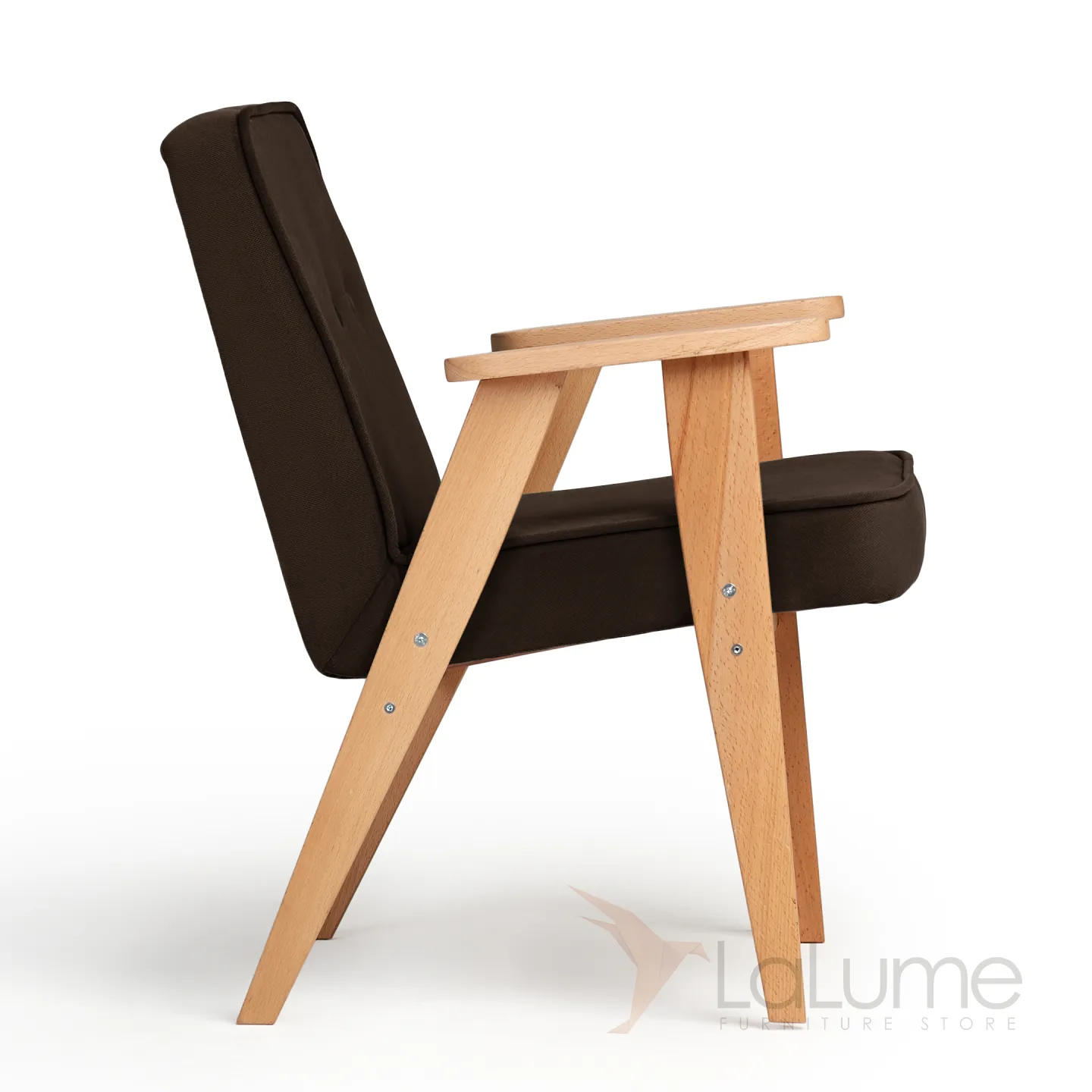 Кресло стул Несс благодаря мягкой спинке и удобным деревянным подлокотникам позволит вам комфортно разместиться для отдыха с чашечкой чая, для чтения книги или просмотра любимого фильма. Кресло с оригинальным дизайном и большим выбором расцветок впишется в любой современный интерьер, подойдет как для дома, так и для дачи или сада. Практичное стул-кресло компактного размера удачно будет смотреться на кухне, балконе, гостиной, в детской или спальне. Мы ответственно подходим к подбору материалов для изготовления каждого предмета мебели. Обивка кресла выполнена из износостойкого велюра, который прослужит вам длительное время и прост в уходе. Прочные опоры изготовлены из массива березы. Для нас важно, чтобы вы оставались довольны покупкой и доверяли нам. Нашим клиентам мы предоставляем гарантию на изделия 12 месяцев.