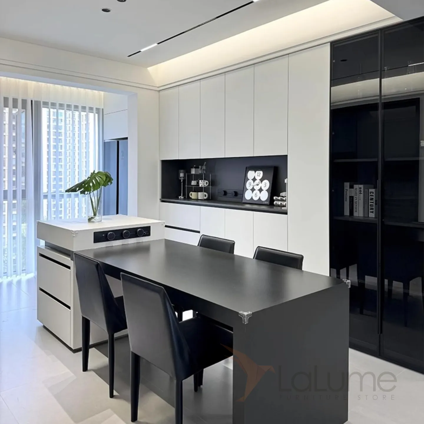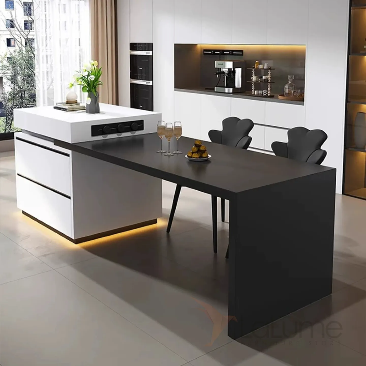 Стильный обеденный стол-остров станет настоящим центром притяжения в вашем интерьере, объединяя функциональность рабочей поверхности и комфорт обеденной зоны. Функциональный остров оснащен розетками для бытовой техники. Изысканная комбинация чёрного и белого цветов создаёт современный монохромный дизайн, который гармонично впишется в любой интерьер. Прочная конструкция и эргономичные размеры обеспечивают максимальное удобство как для приготовления пищи, так и для семейных трапез. Практичное решение для современной кухни, где каждая деталь продумана для создания комфортной и эстетичной атмосферы.