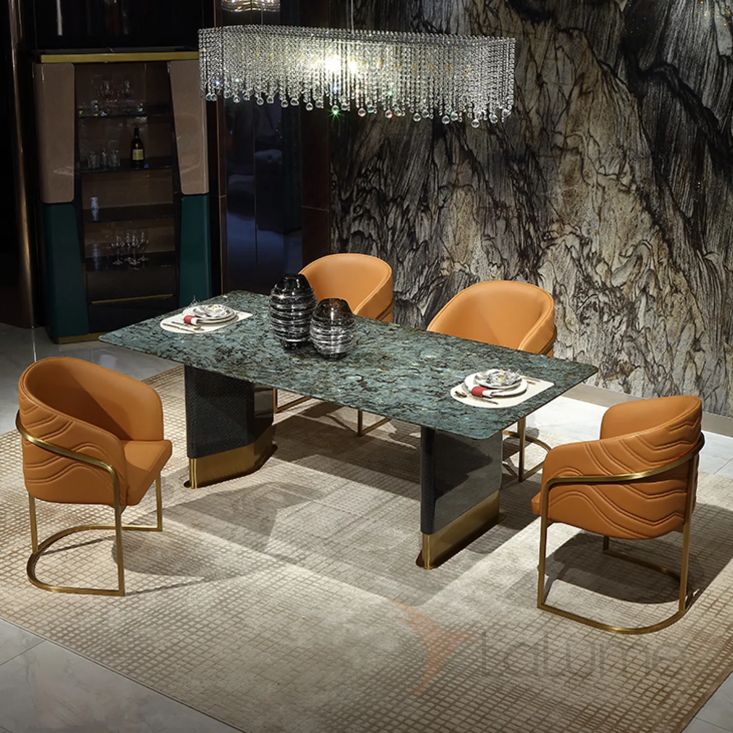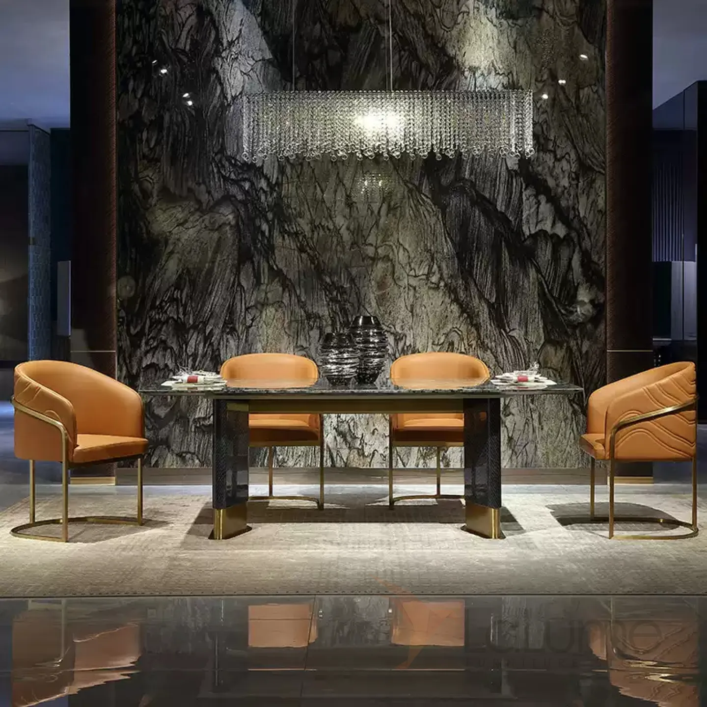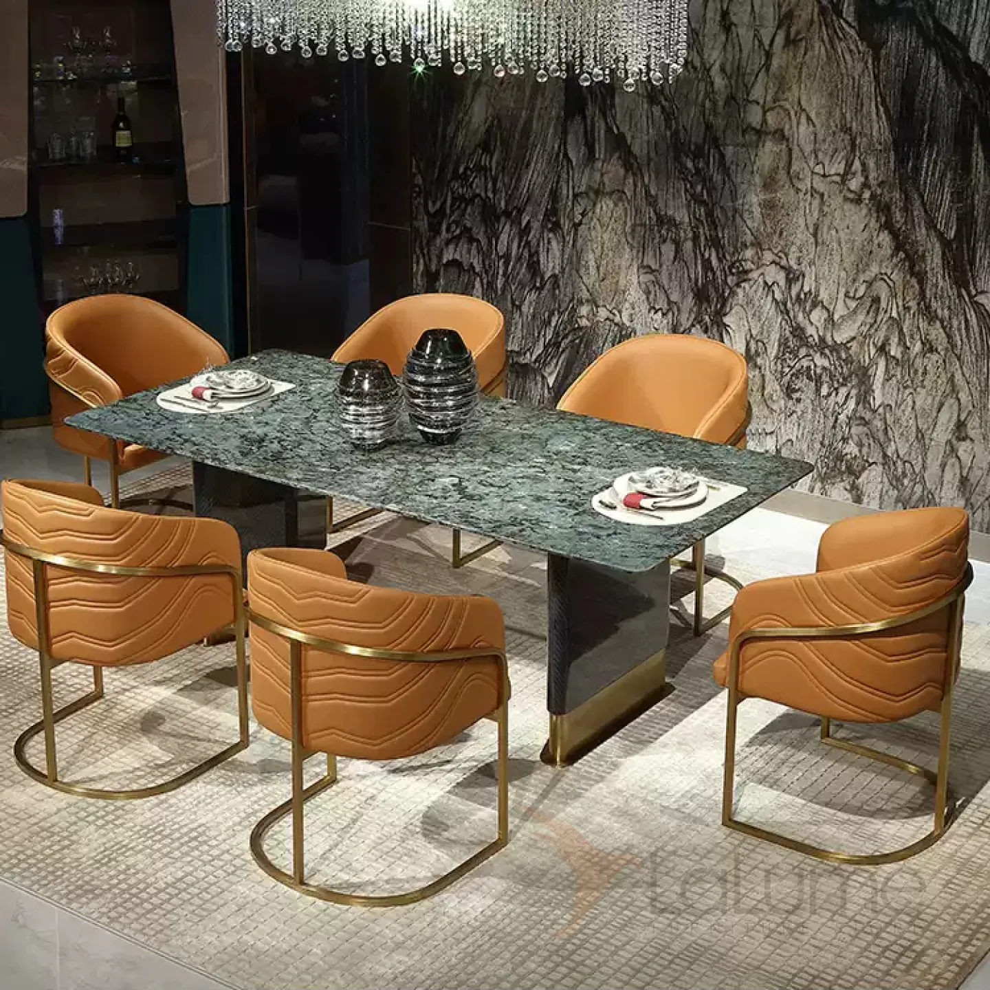 Роскошный обеденный стол MIVICA из мрамора и красного дерева OS38210-32