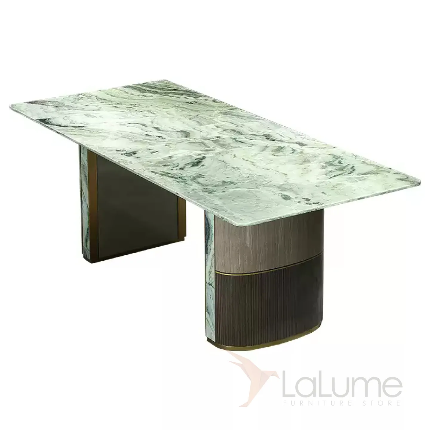 Роскошный обеденный стол MIVICA из зелёного мрамора и красного дерева OS38248-32