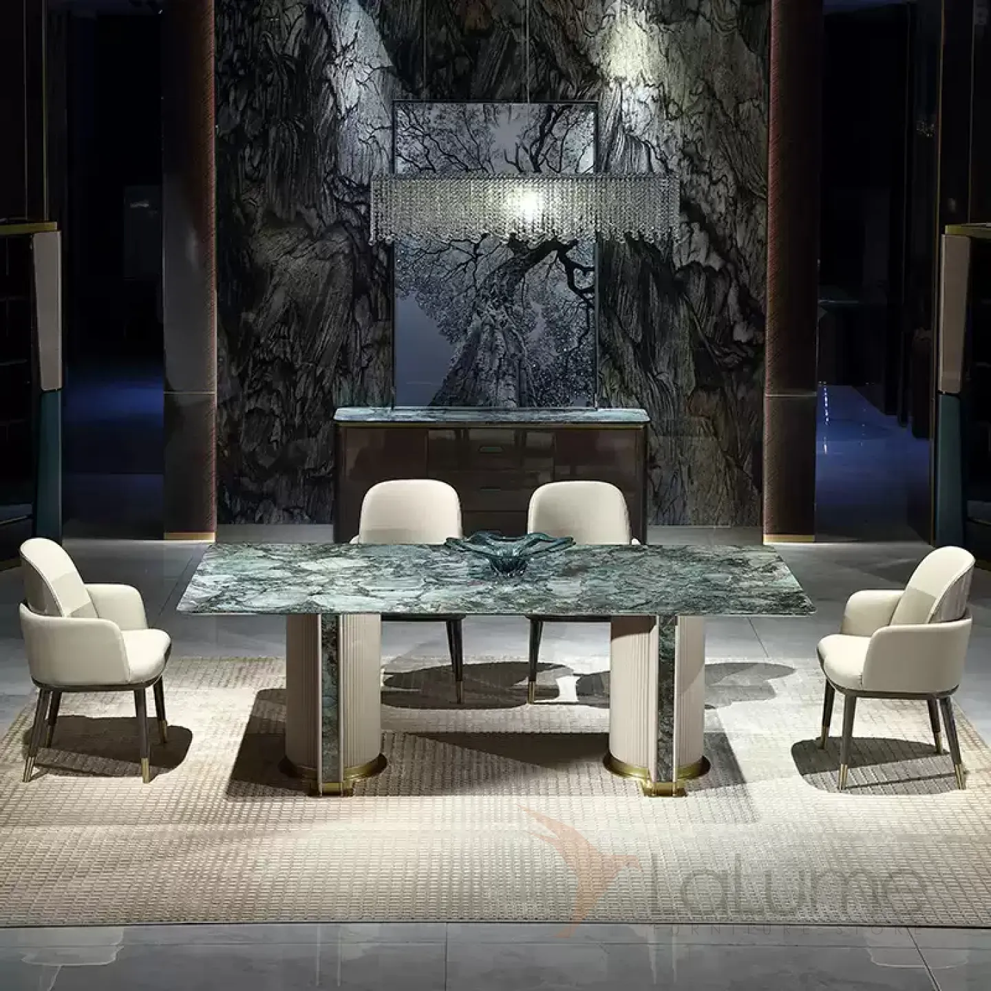 Роскошный обеденный стол MIVICA из натурального мрамора и красного дерева OS38281-32