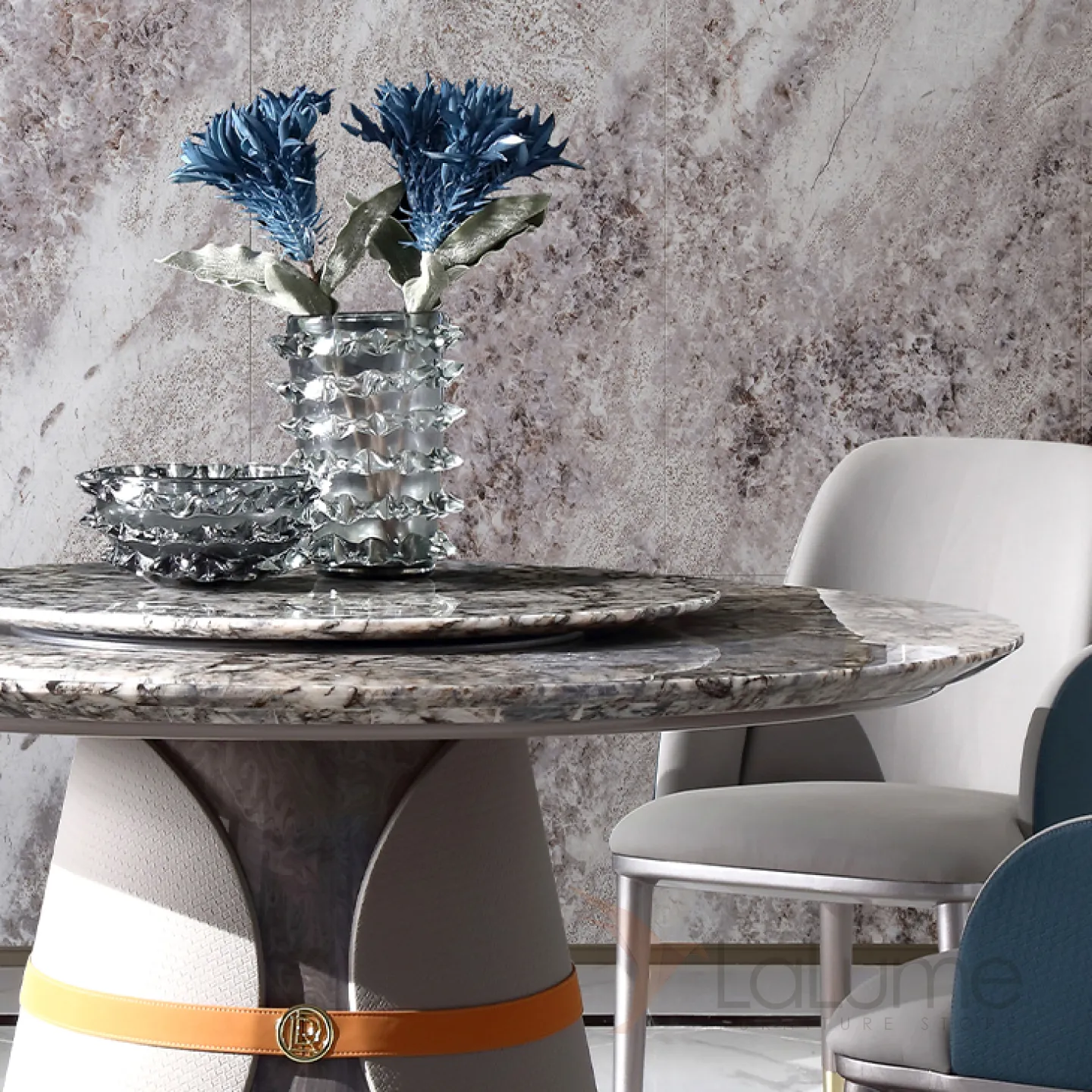 Оригинальный круглый обеденный стол MIVICA из натурального мрамора OS38361-32
