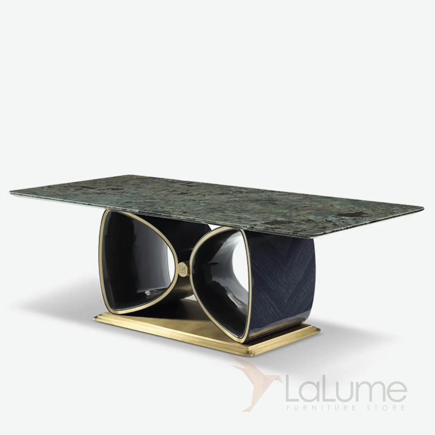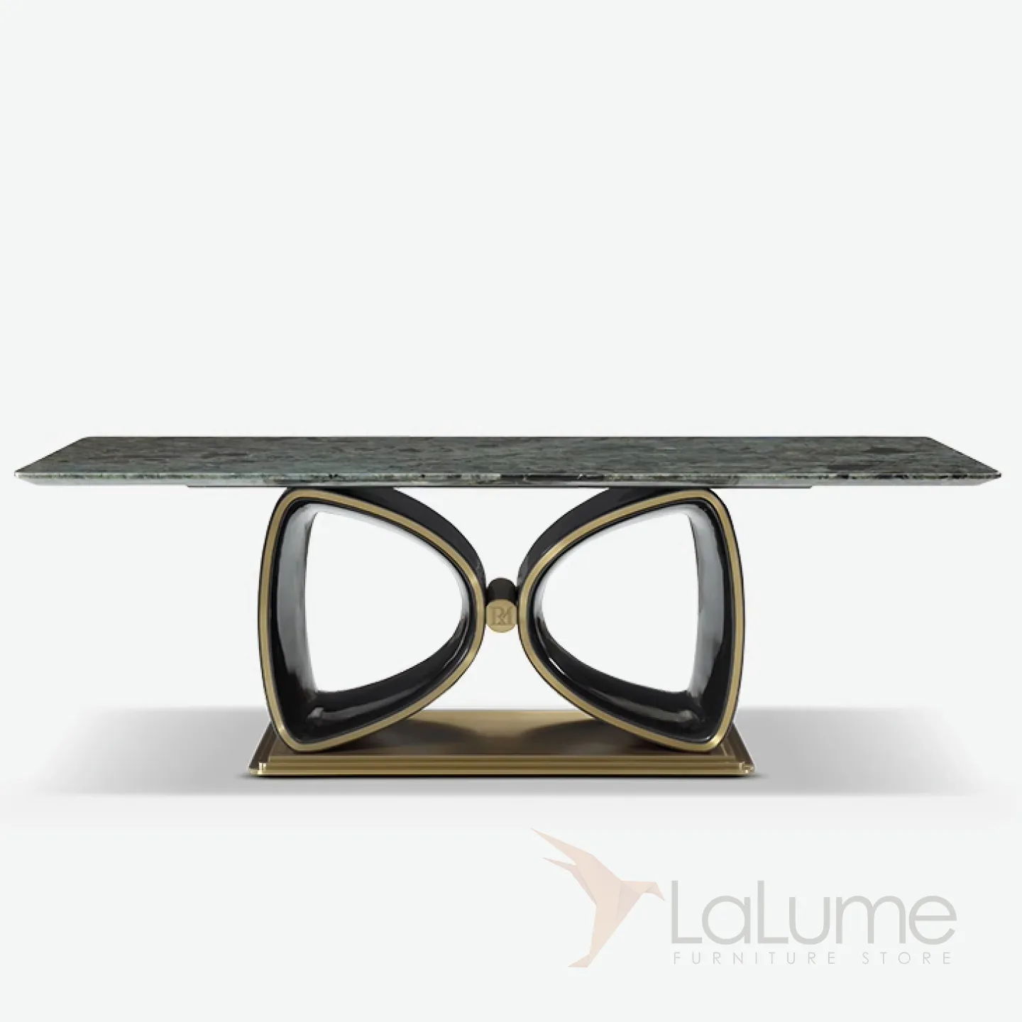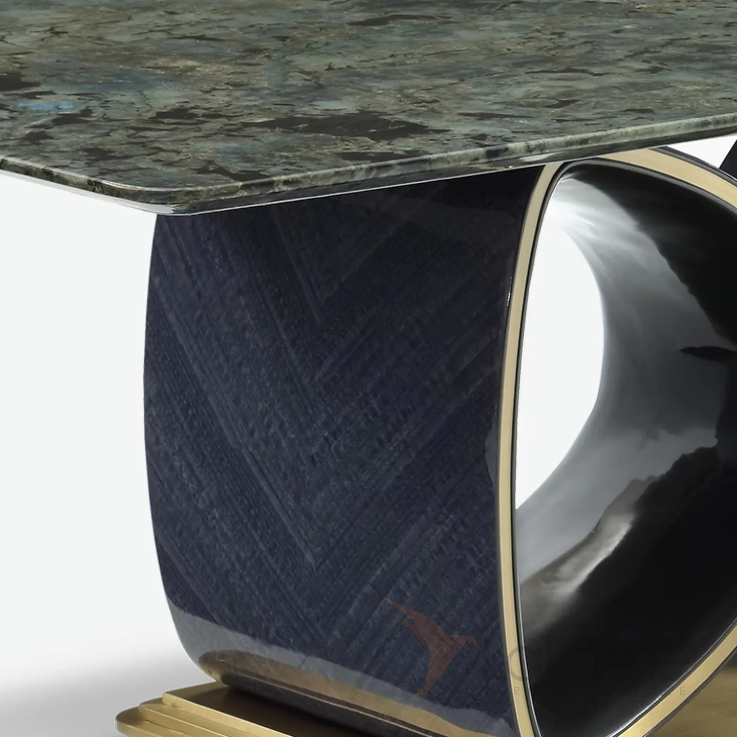 Великолепный обеденный стол рассчитан на 10 персон и украшен благородной мраморной столешницей в сине-зелёных тонах. Строгое металлическое основание в сочетании с красным деревом, покрытым элитным шпоном, придают мебели особый статус и изысканность. Подстолье оригинальной формы обязательно привлечёт внимание.
