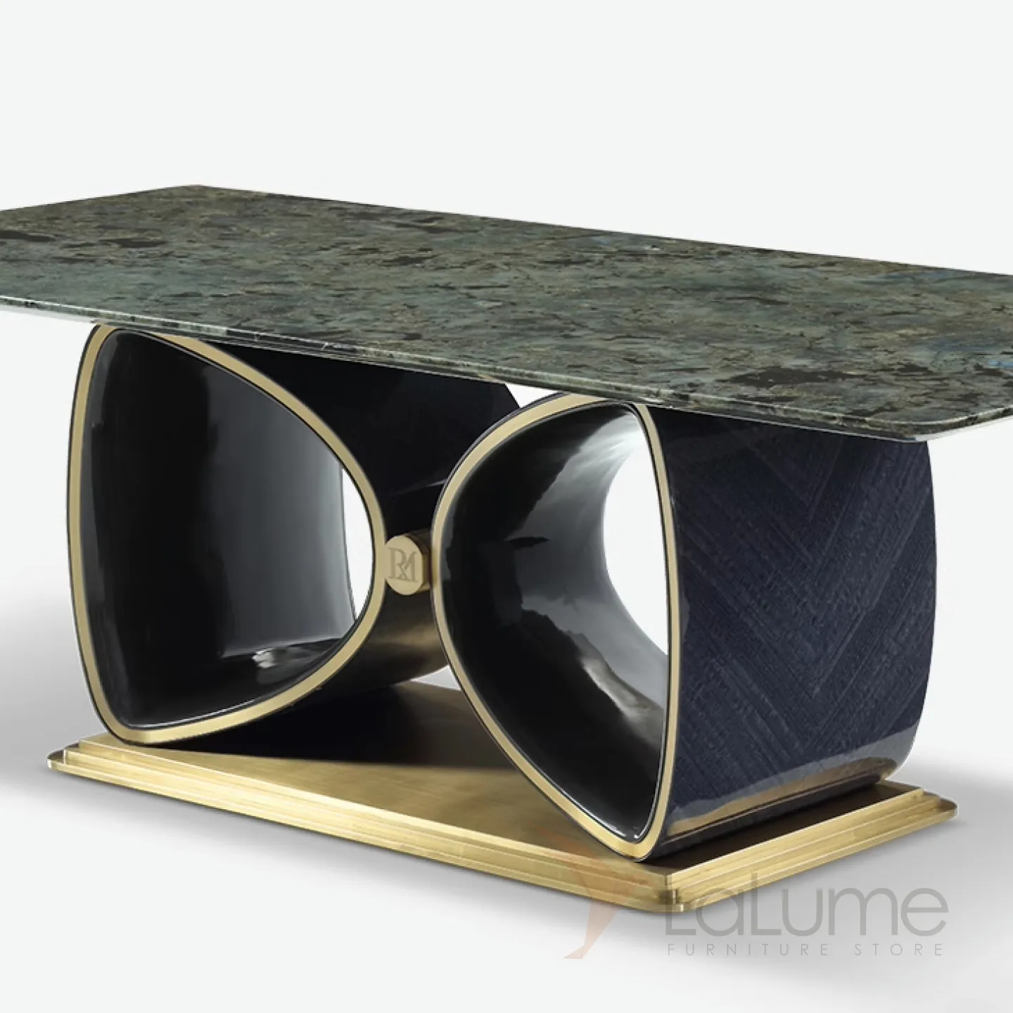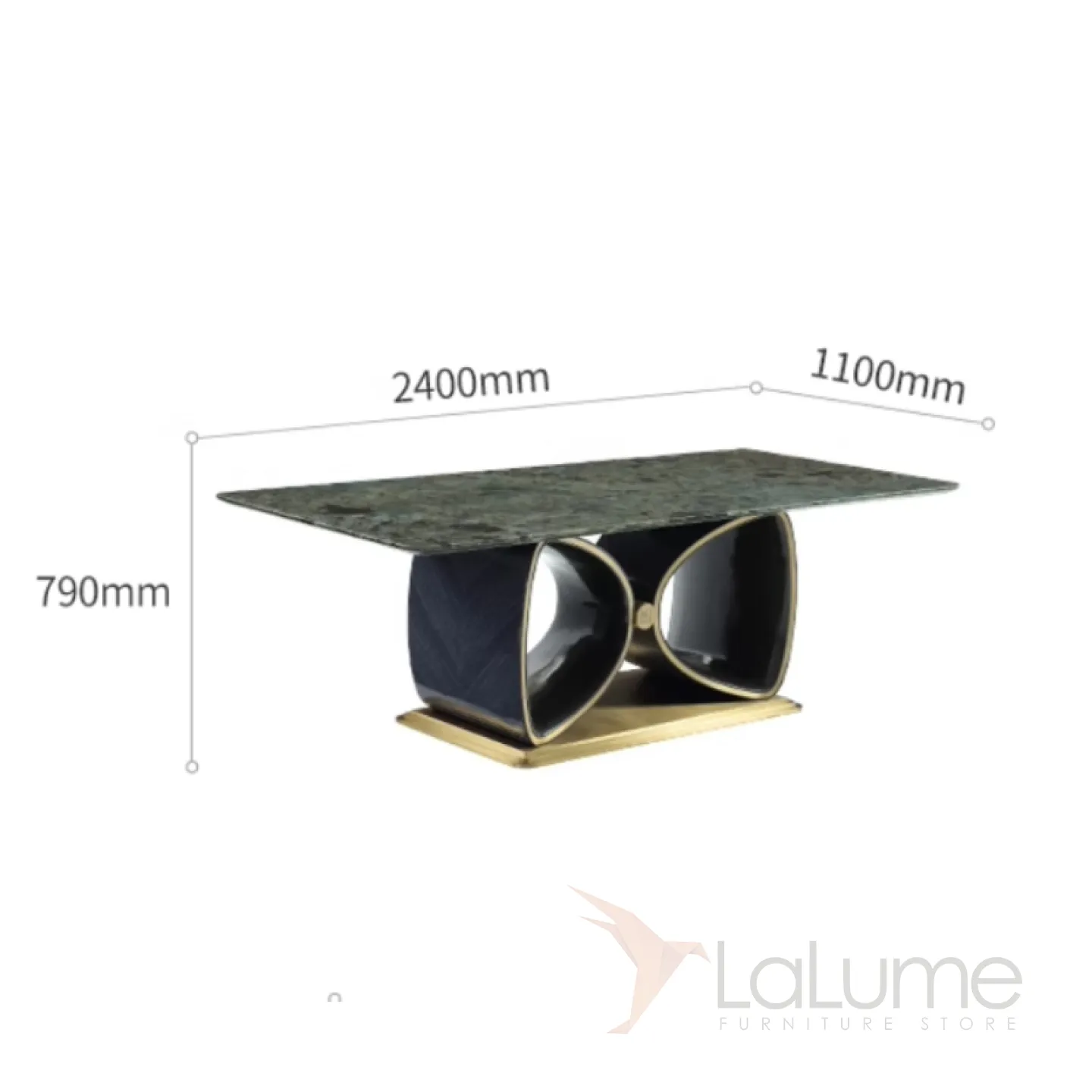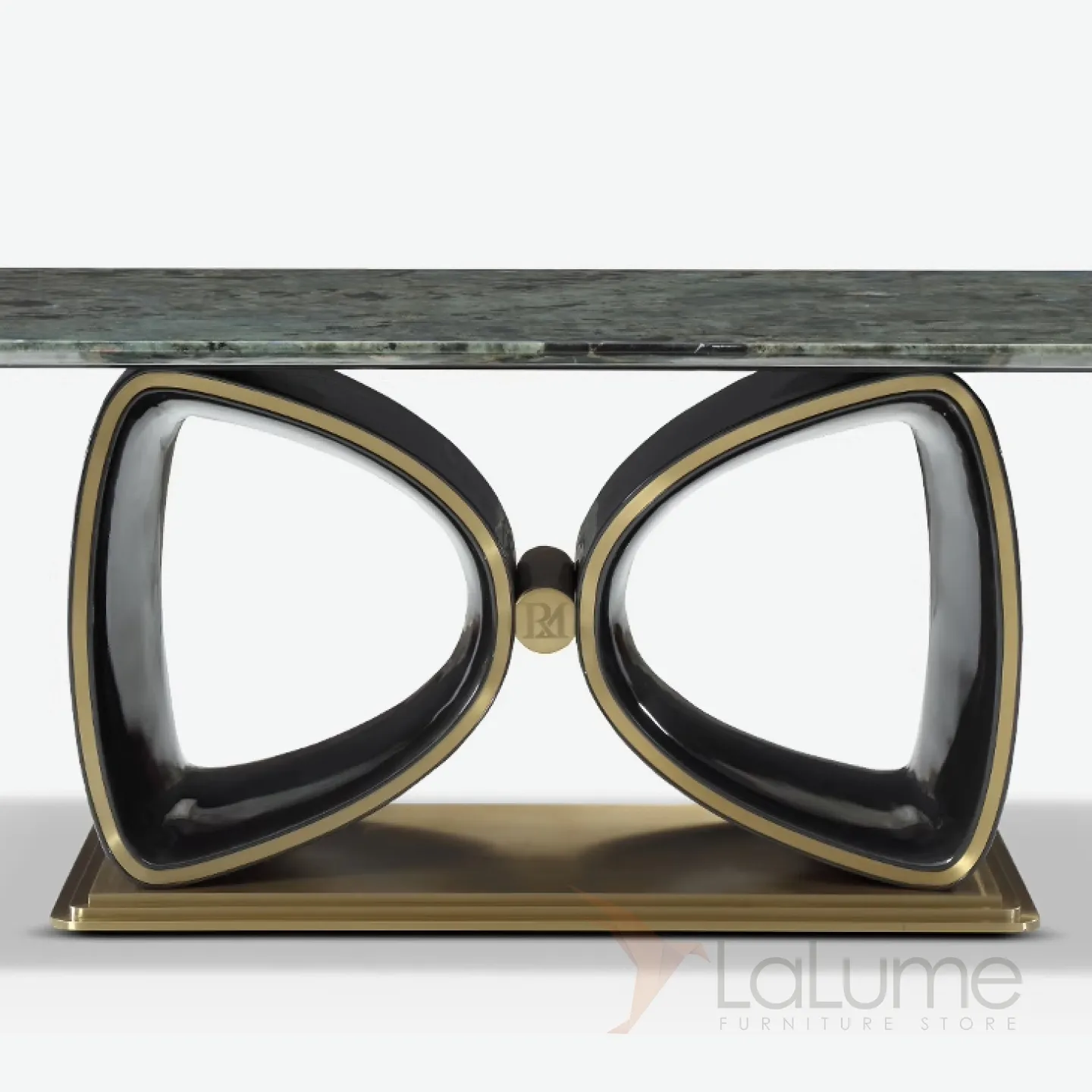 Великолепный обеденный стол рассчитан на 10 персон и украшен благородной мраморной столешницей в сине-зелёных тонах. Строгое металлическое основание в сочетании с красным деревом, покрытым элитным шпоном, придают мебели особый статус и изысканность. Подстолье оригинальной формы обязательно привлечёт внимание.