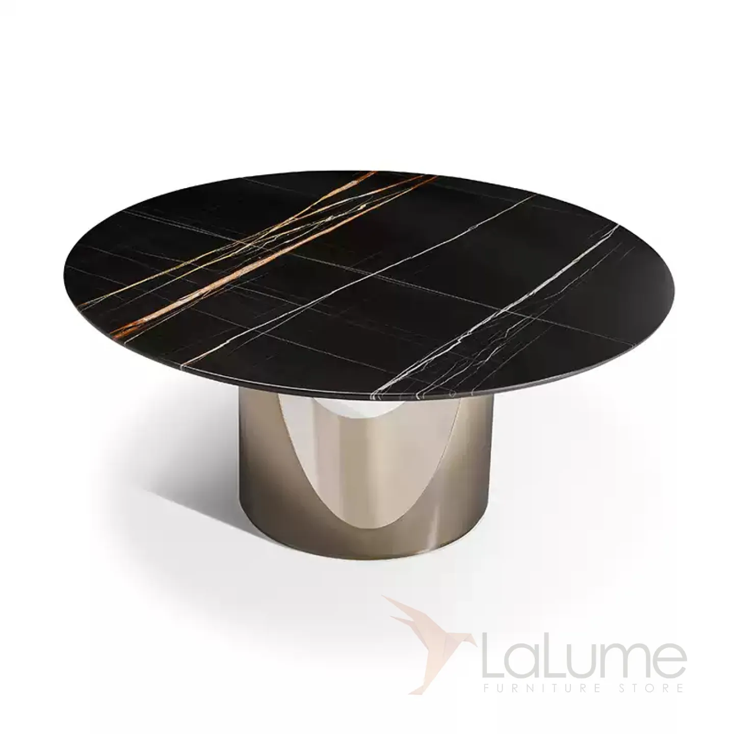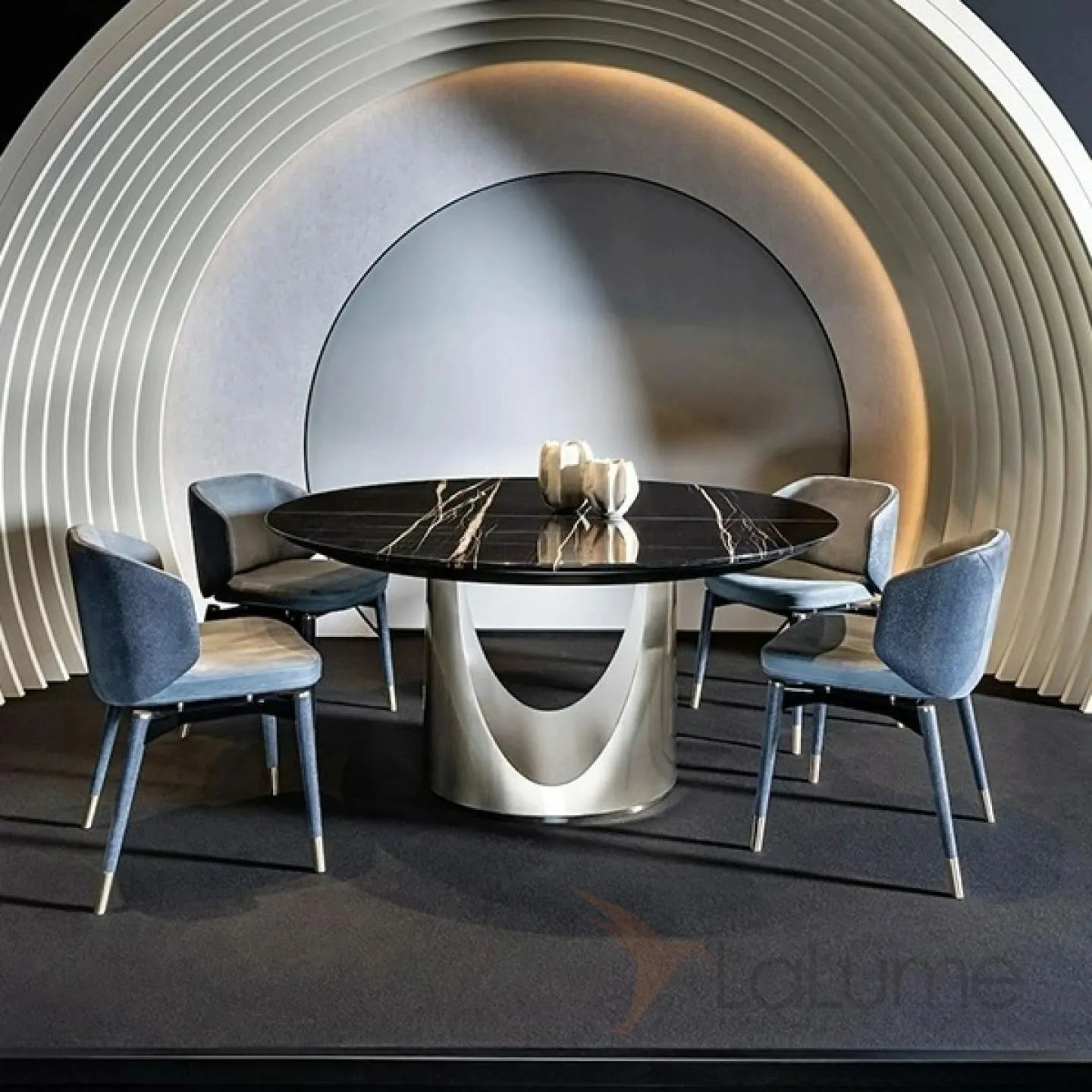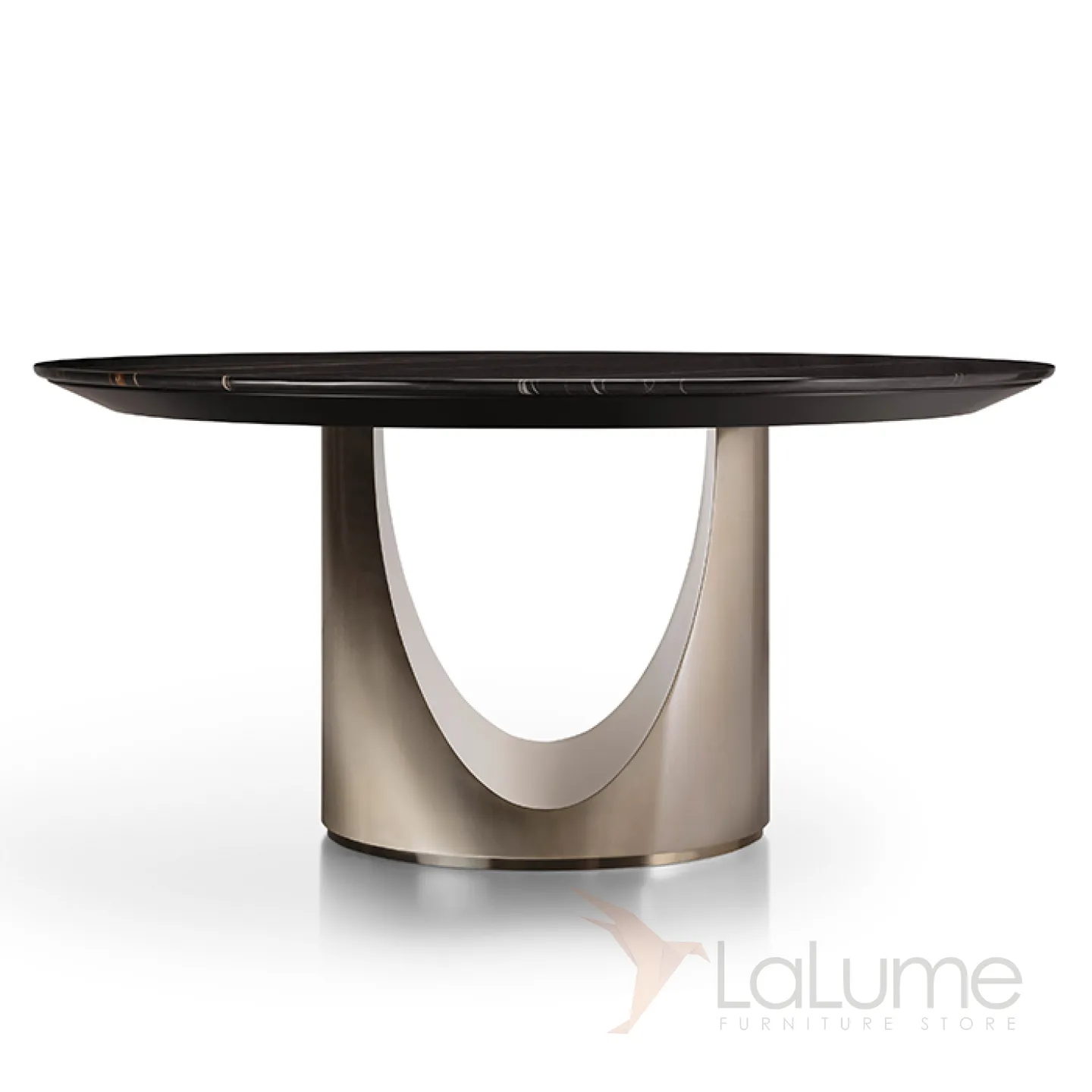 Обеденный стол из нержавеющей стали и чёрного мрамора. Выберите диаметр стола, который подойдет именно вам.