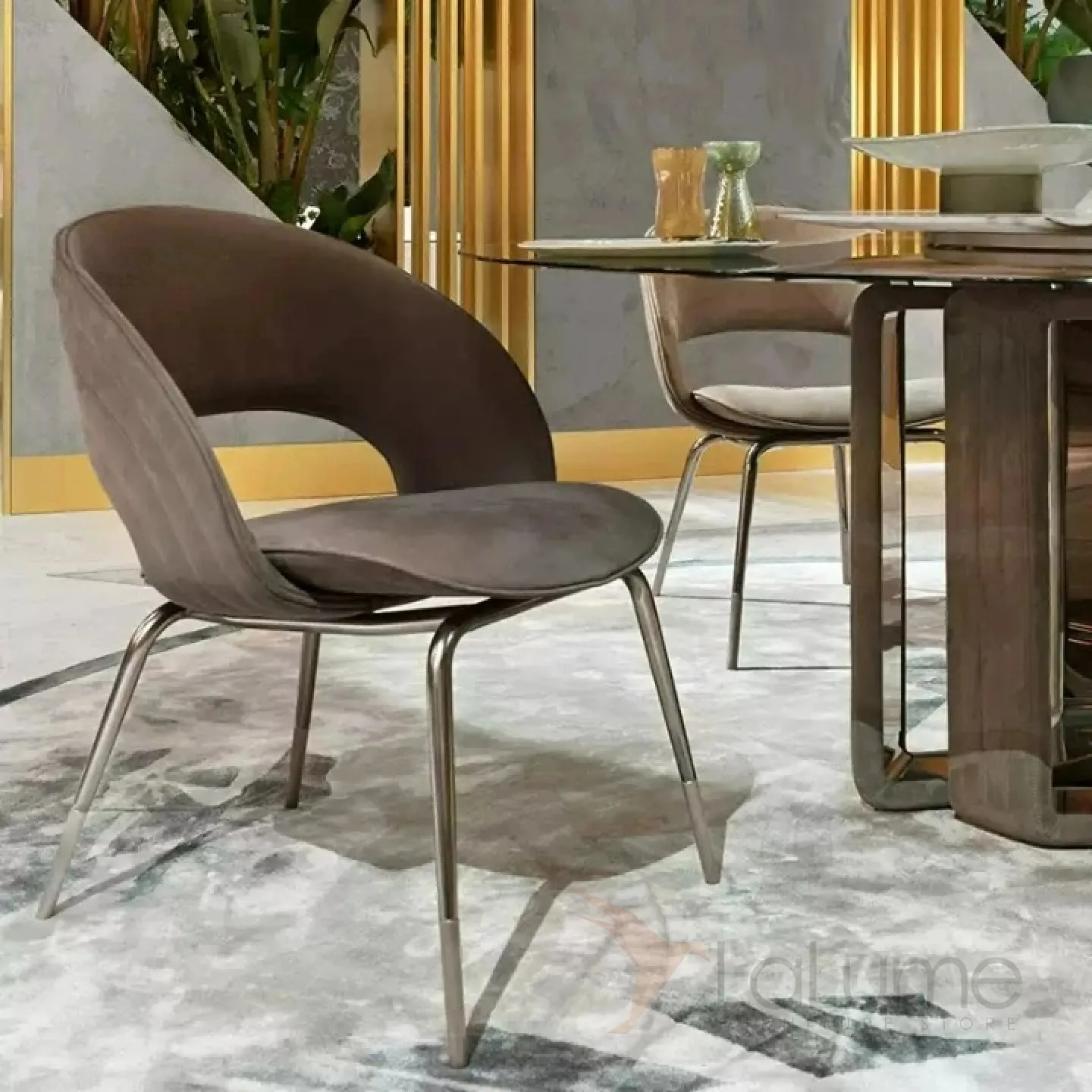 Элегантный стул для столовой из нержавеющей стали. Сиденье мягкое, наполнено поролоном и обито качественной искусственной кожей.
