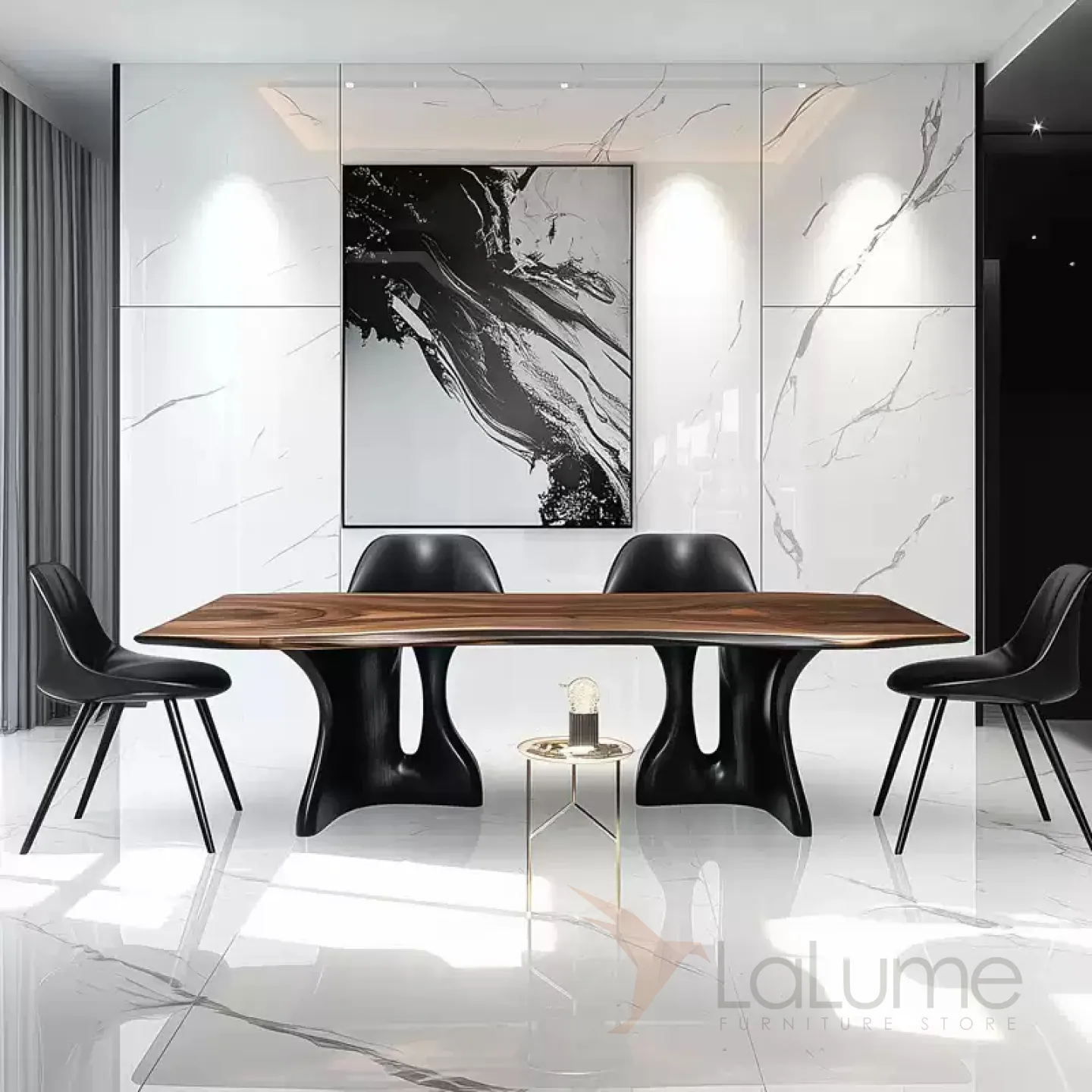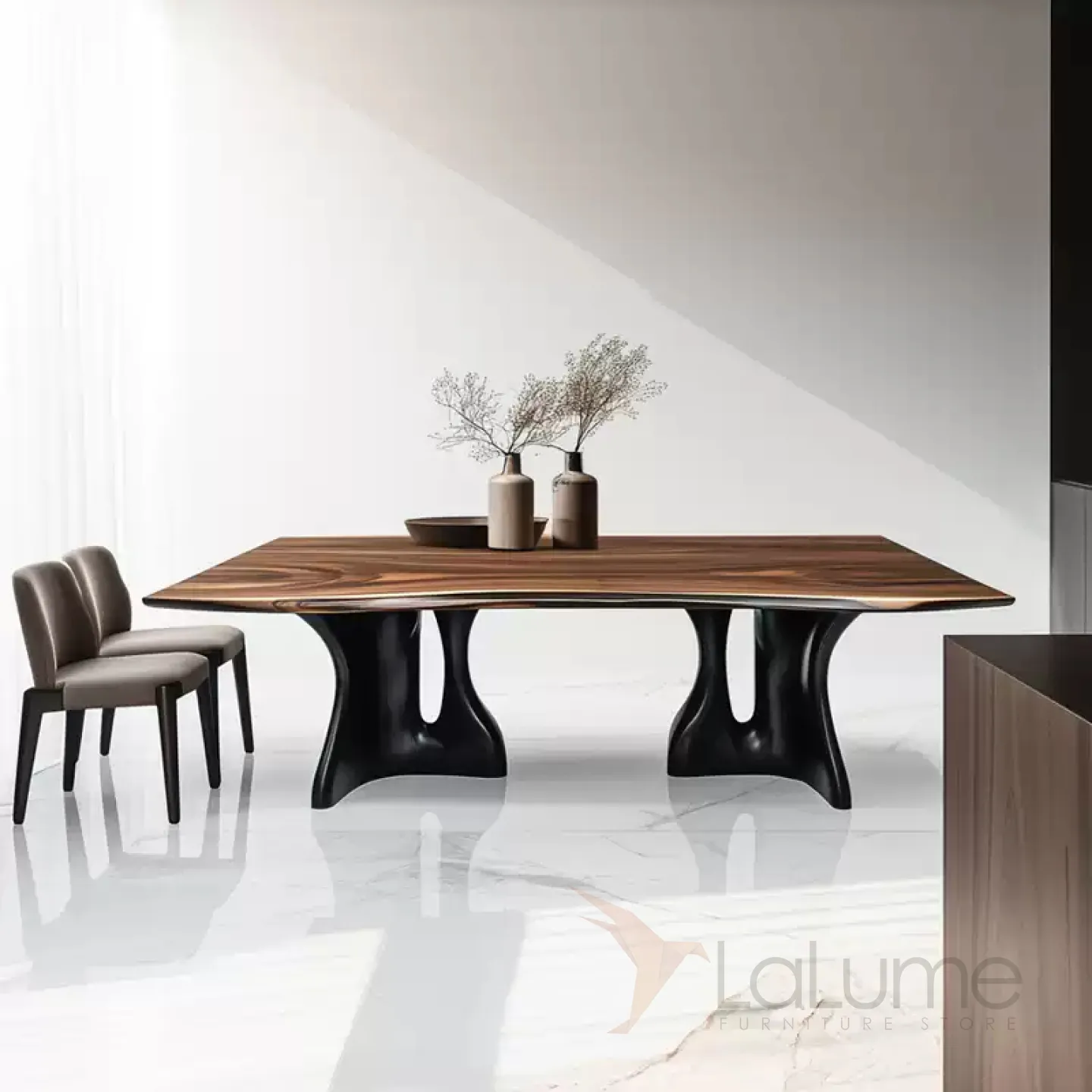 Обеденный стол выполнен из благородной древесины грецкого ореха, а его основание — из тополя. За ним с комфортом могут разместиться восемь человек, и он станет элегантным дополнением к любому интерьеру.