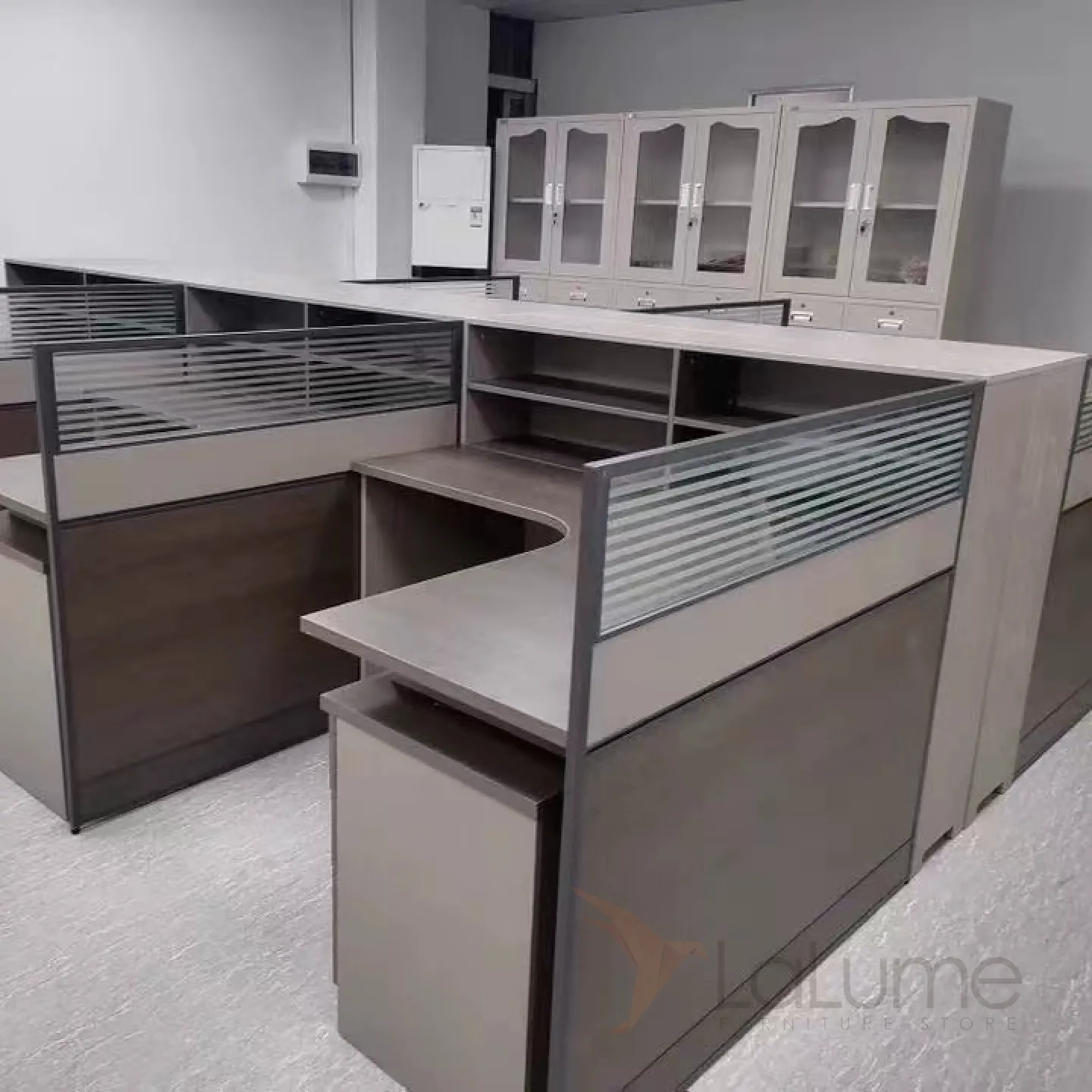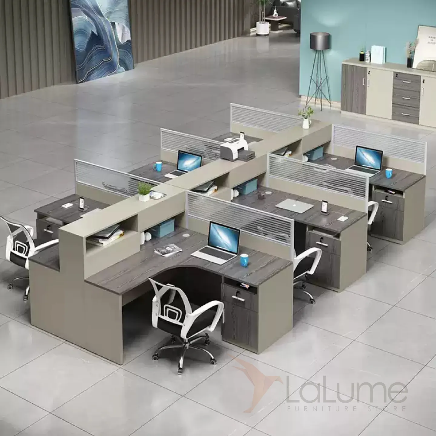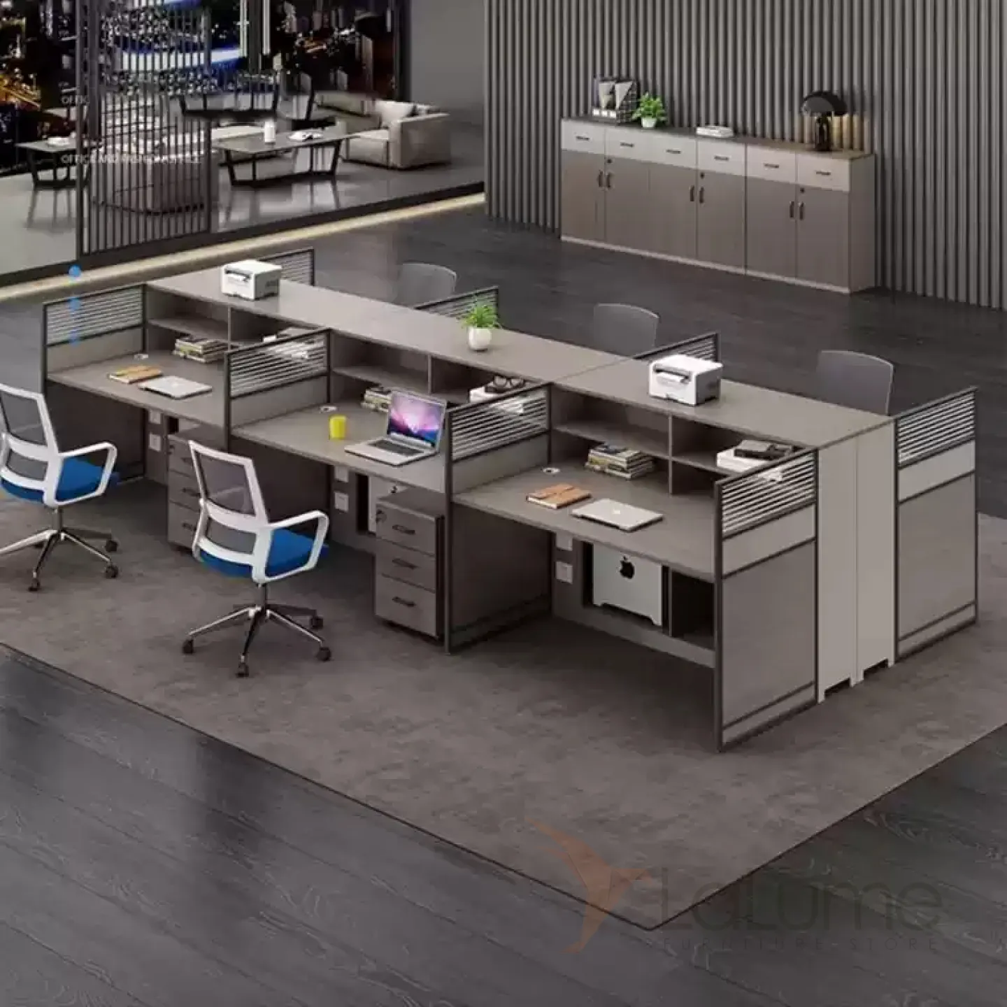 Практичные офисные столы из дерева, рассчитанные на 1–8 сотрудников, со стульями или без, световые перегородки, предусмотрены розетки и отверстия для проводов. Вы легко подберете идеальный набор для вашего офиса.
