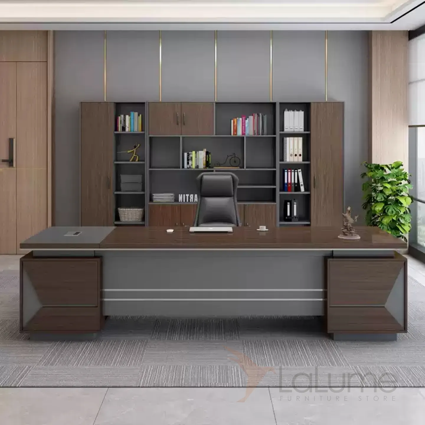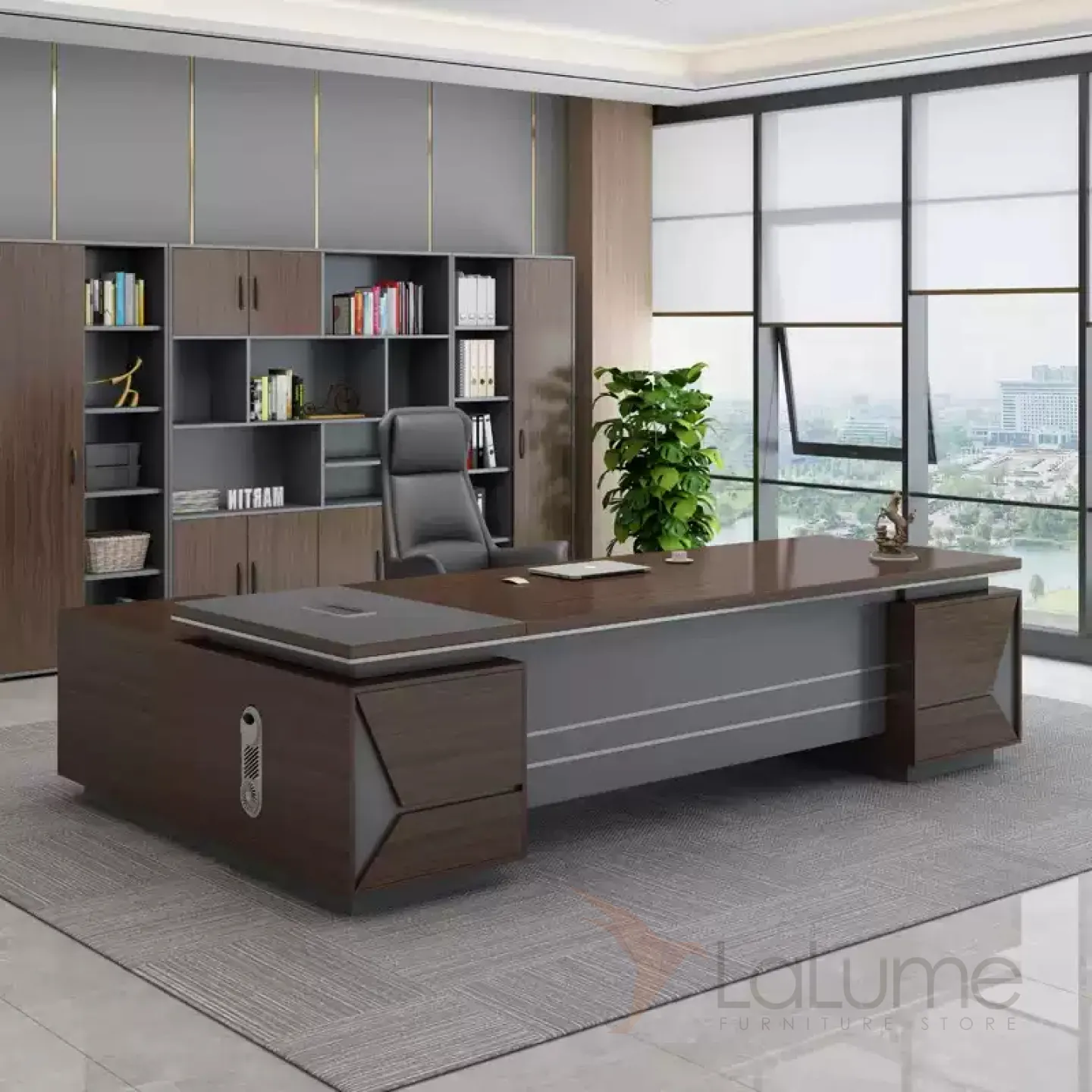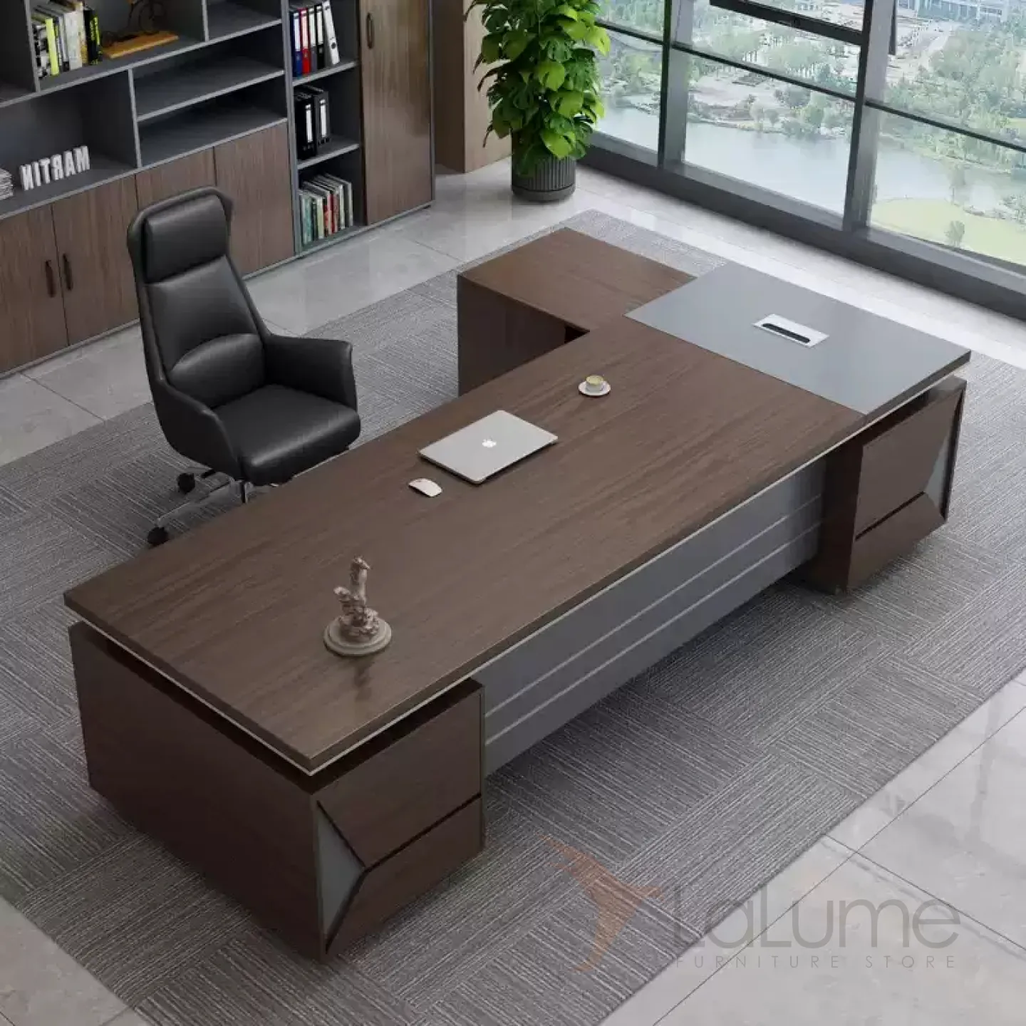 Роскошный стол руководителя с отделением для проводов, шкафчик с дверками и ящиками. На выбор стол разной длины, есть вариант с креслом и шкафом.