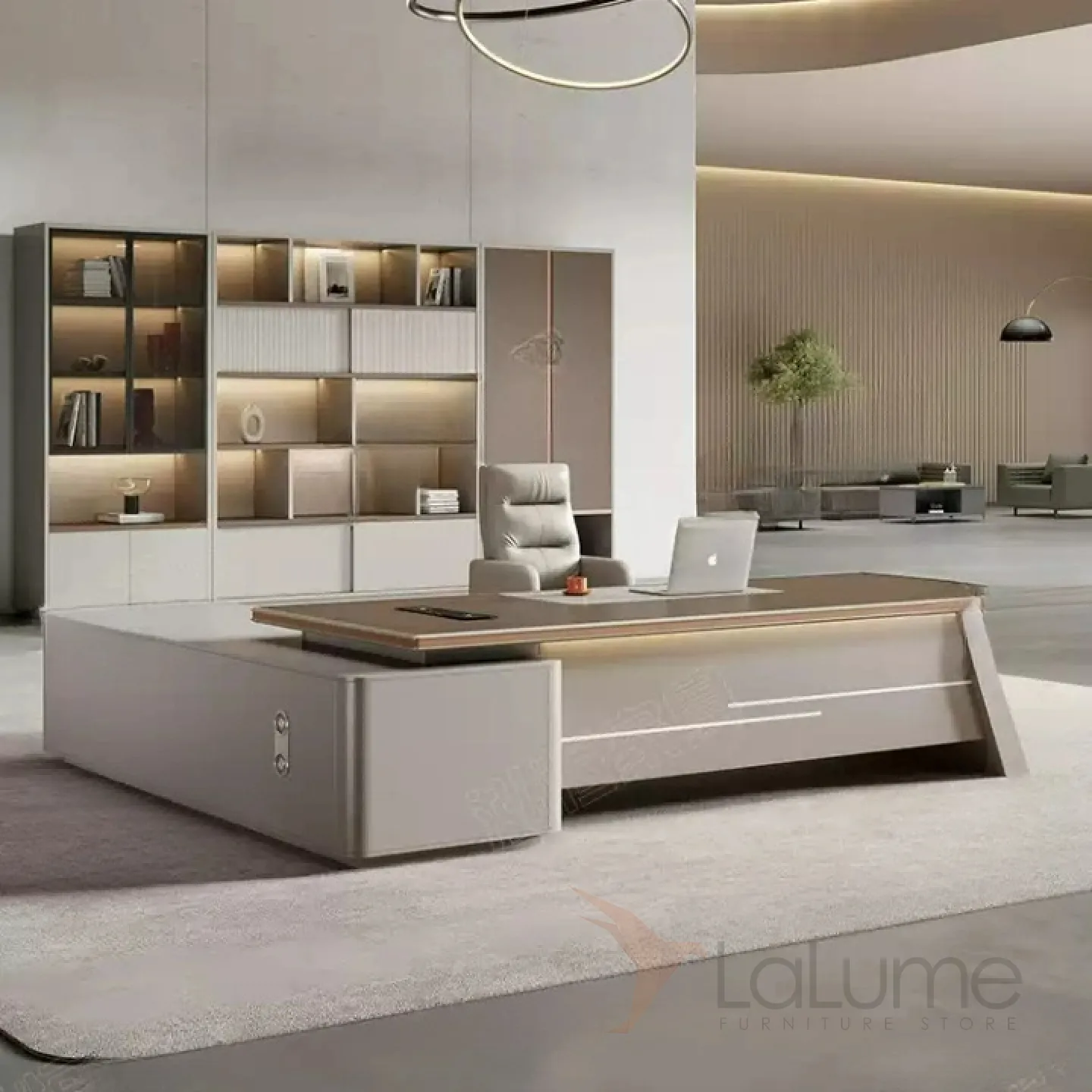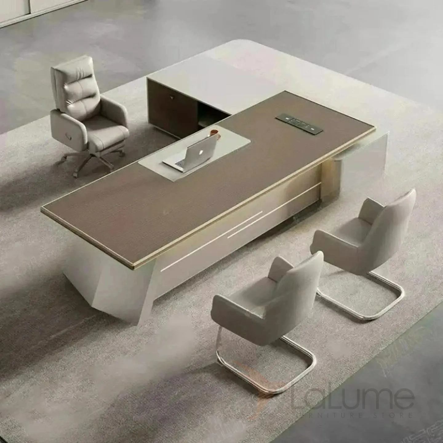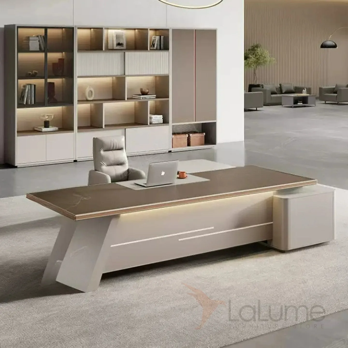 Роскошный стол руководителя с отделением для проводов, шкафчик с ящиками. На выбор стол разной длины, есть вариант с креслом и шкафом.