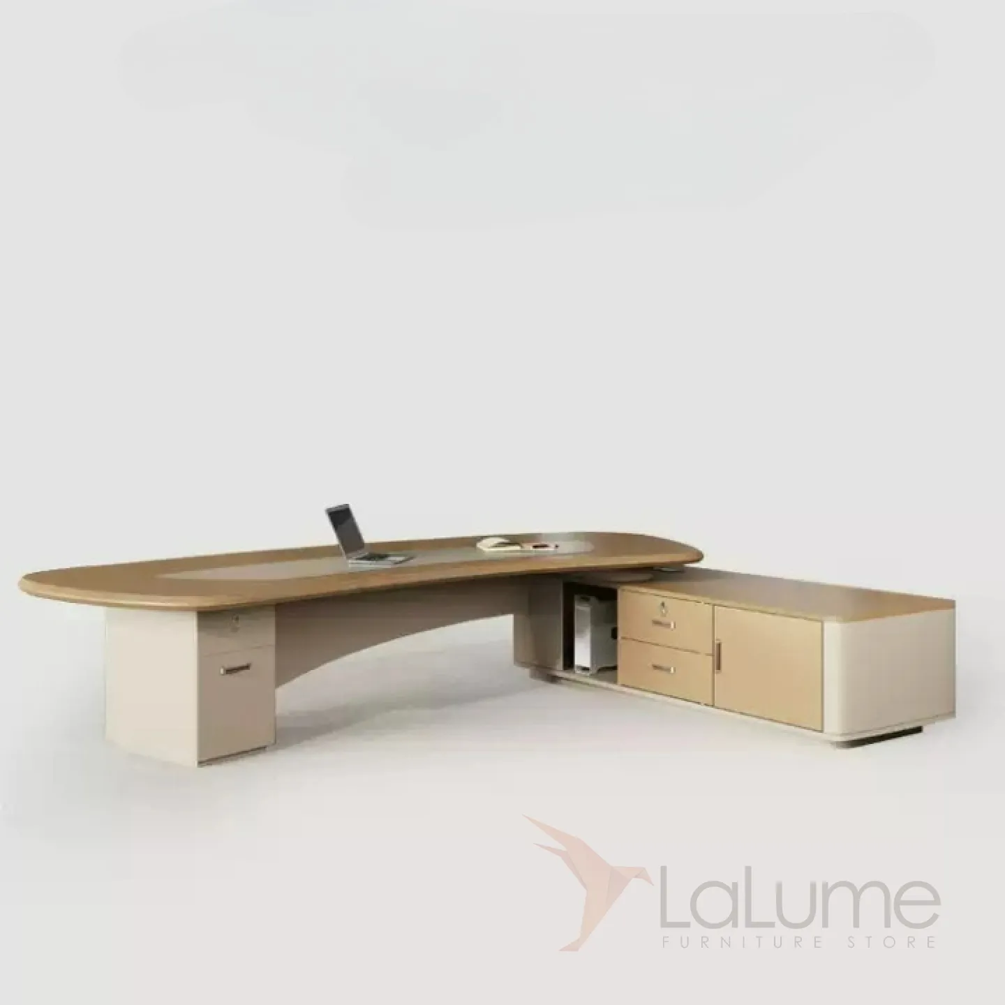 Роскошный стол руководителя с отделением для проводов, шкафчиком с ящиками и дверками. На выбор стол разной длины, есть вариант с креслом и шкафом.