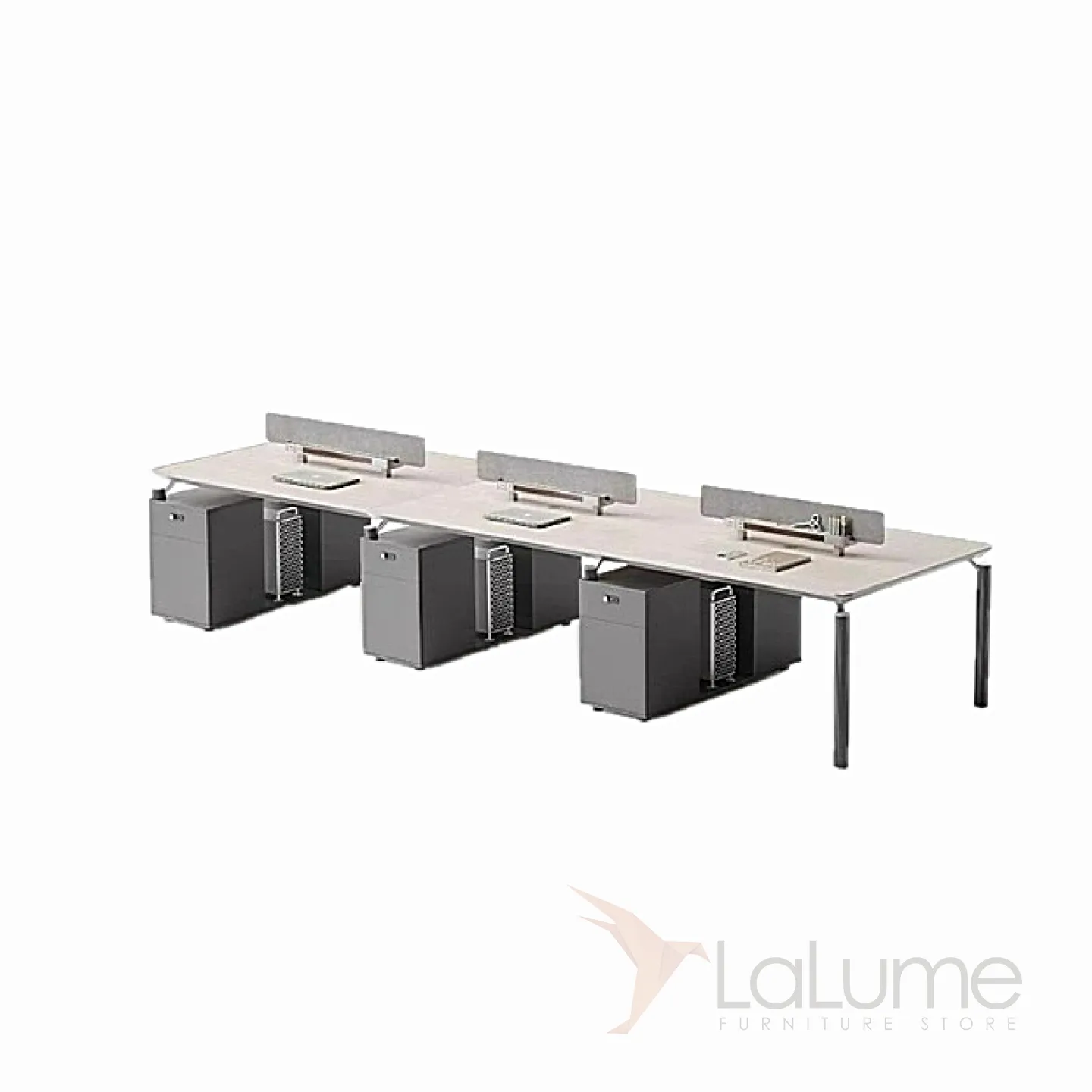 Практичные офисные столы из ДСП с перегородками и дополнительными полками, рассчитанные на 2–6 сотрудников, с комодом. Вы легко подберете идеальный набор для вашего офиса.