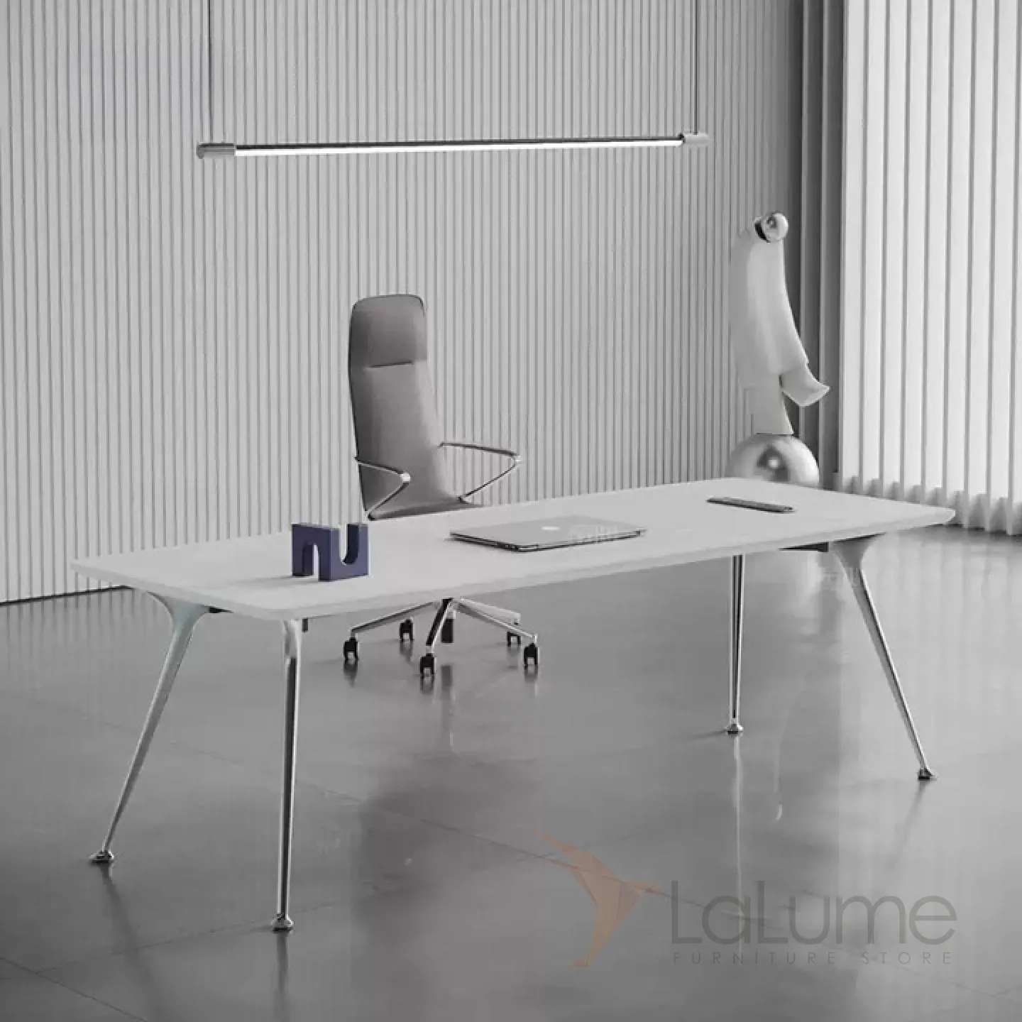 Практичный, светлый стол руководителя из меламина, с отделом для проводов. Есть вариант углового стола с ящиками, полочками для хранения вещей. В комплекте можно приобрести кресло и шкаф.