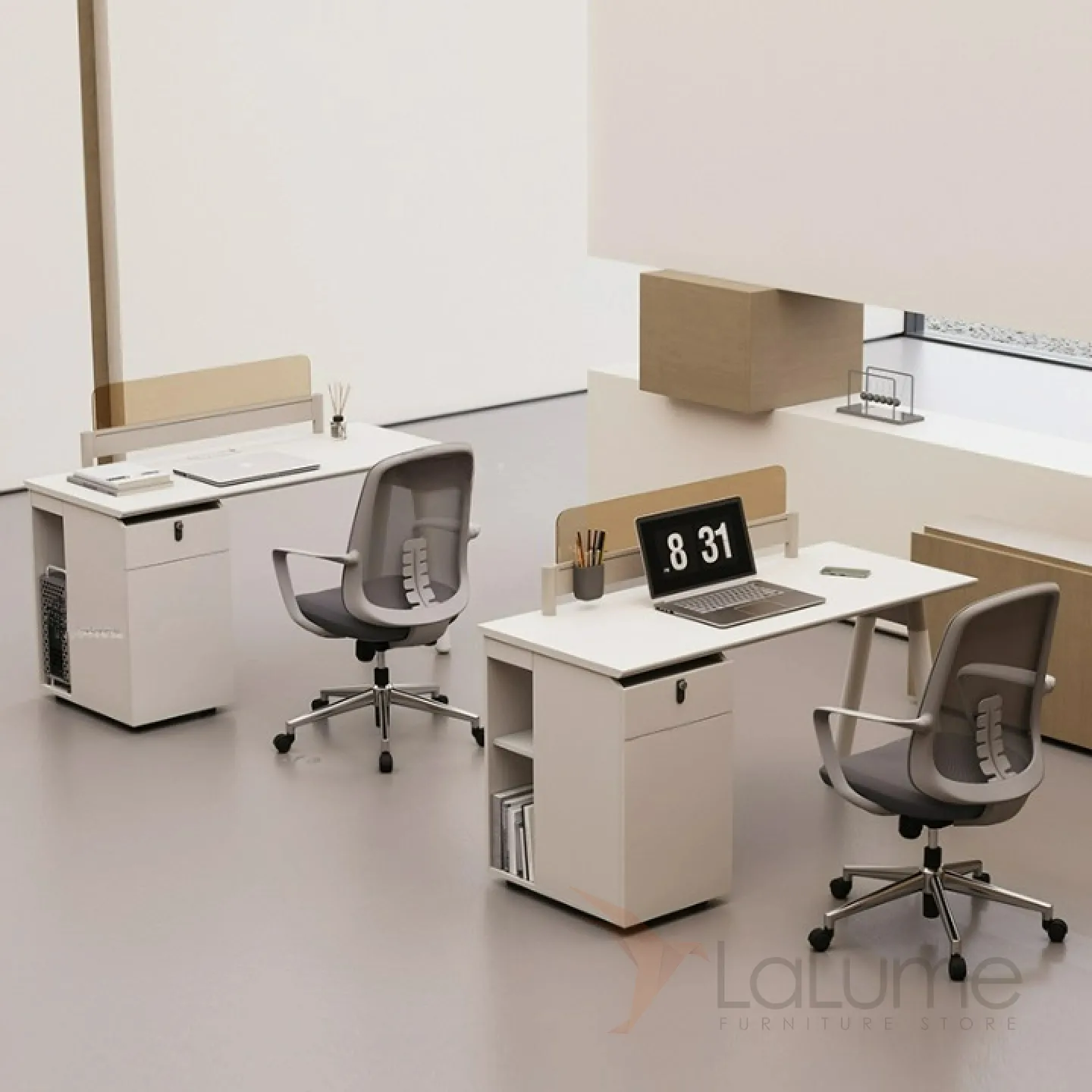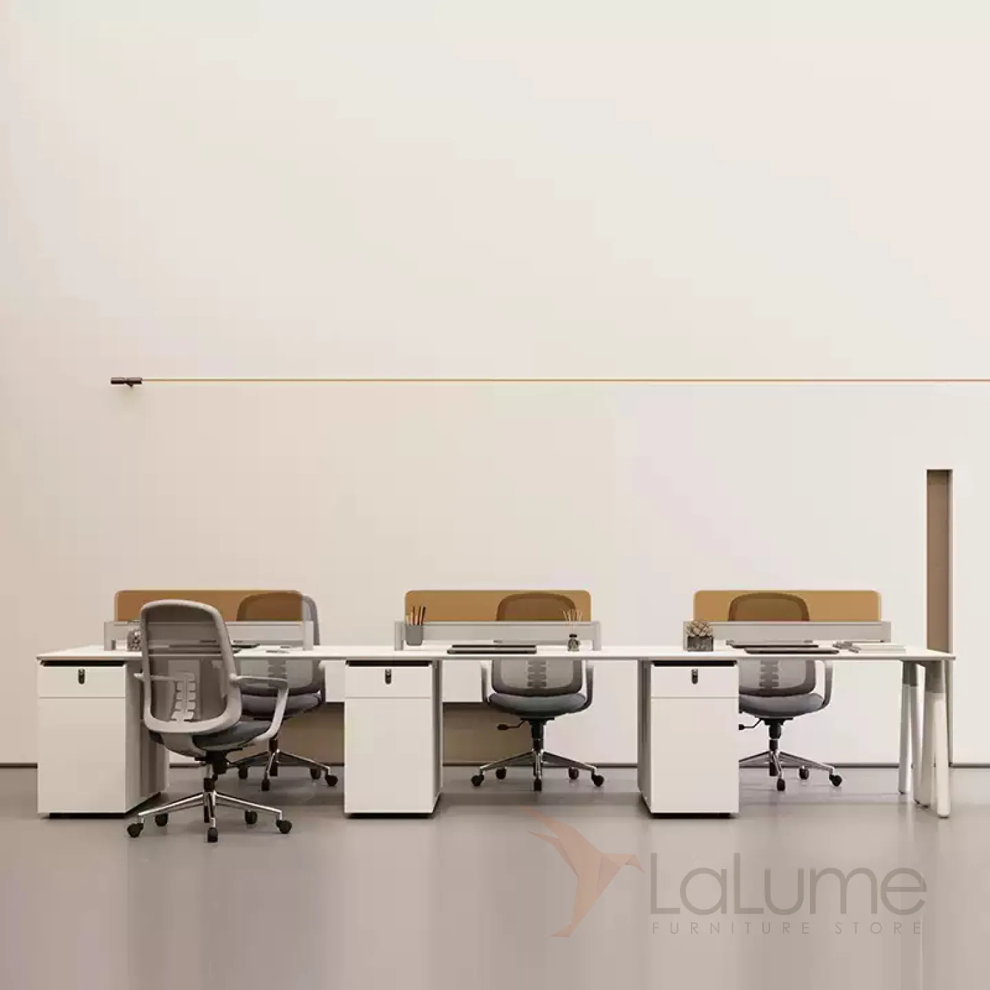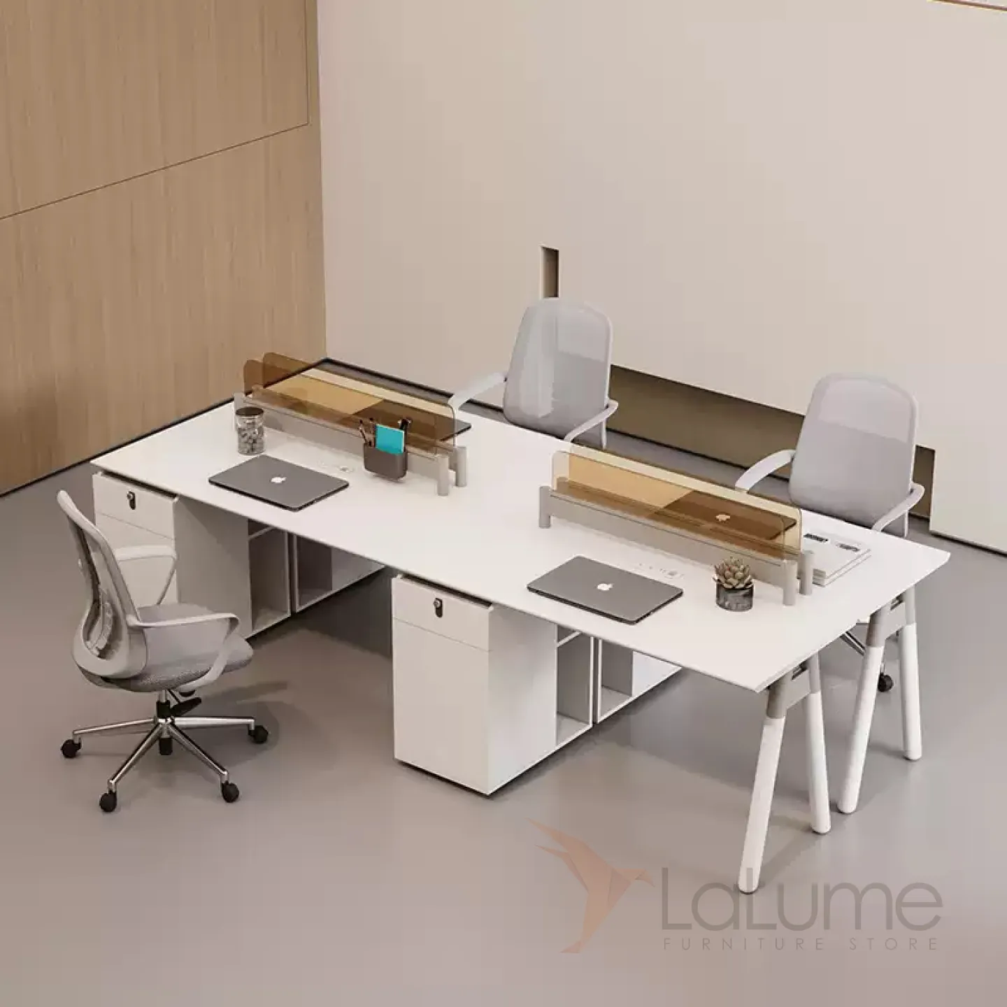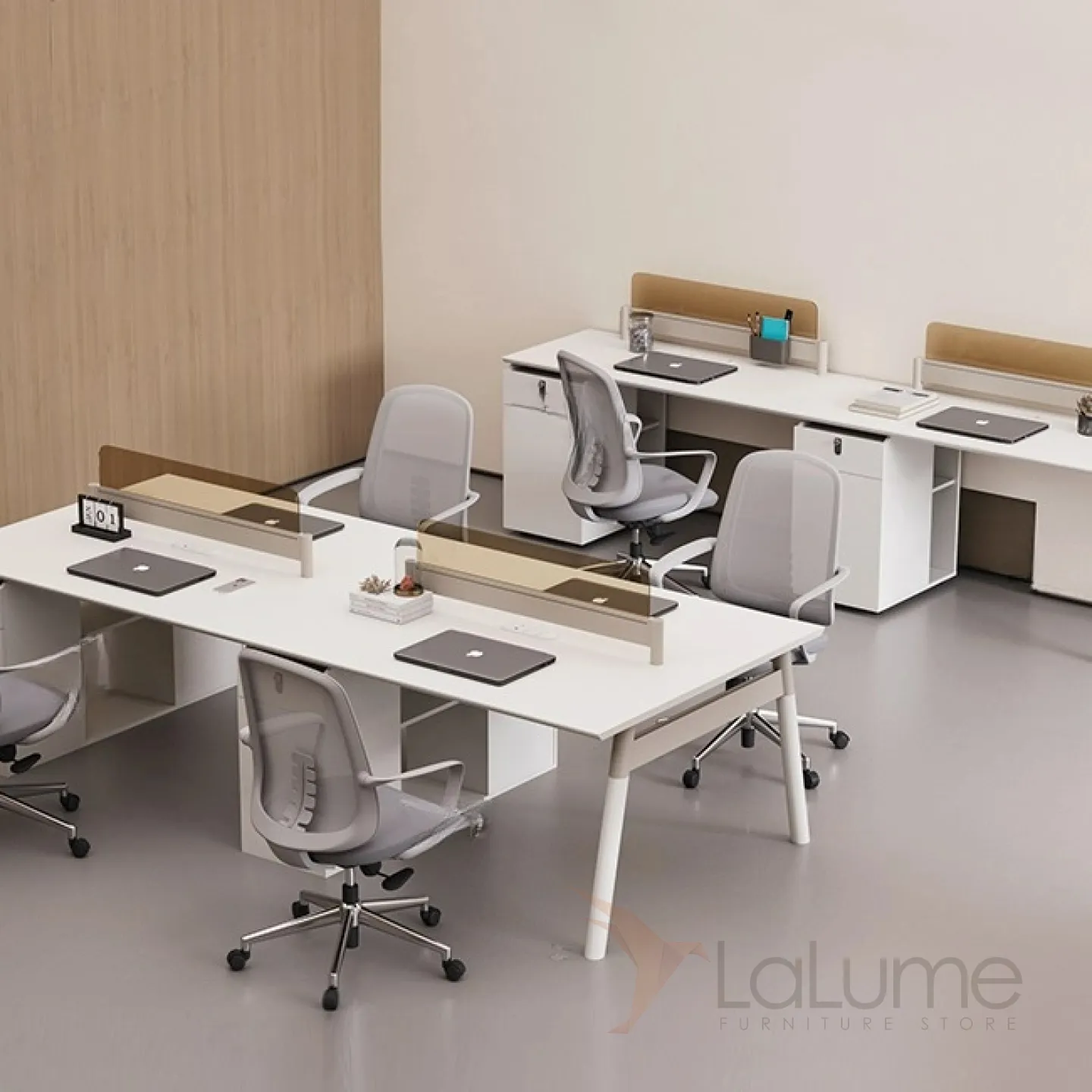 Практичные офисные столы из ДСП с перегородками из закалённого стекла, отделение для проводов, рассчитанные на 1–6 сотрудников, с комодом с ящиком на кодовом замке. Вы легко подберете идеальный вариант для вашего офиса, есть комплектация с креслами на колесах.