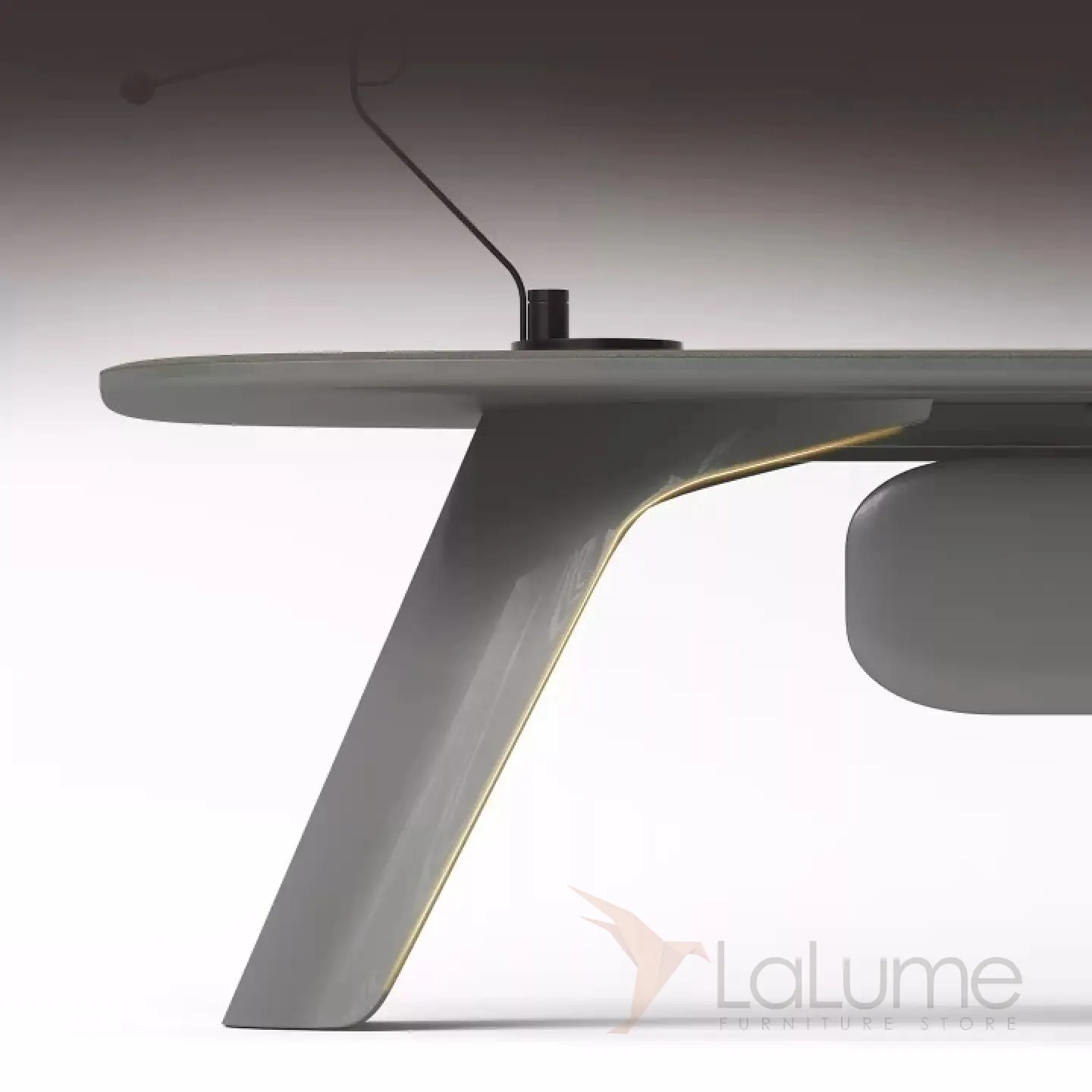 Практичный, светлый стол руководителя из МДФ, с отделом для проводов, несколько ящиков и закрытых отделений для хранения вещей. В комплекте можно приобрести шкаф, кресло, комплект мягкой мебели.