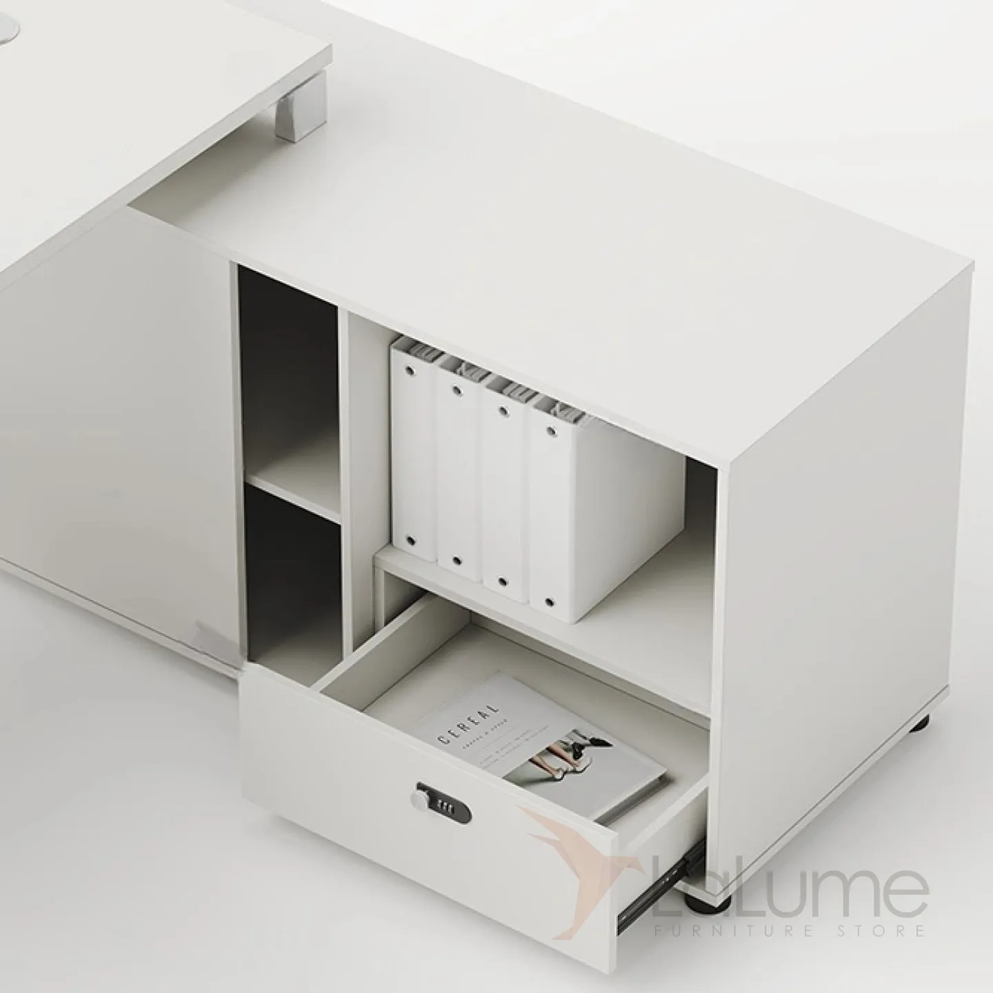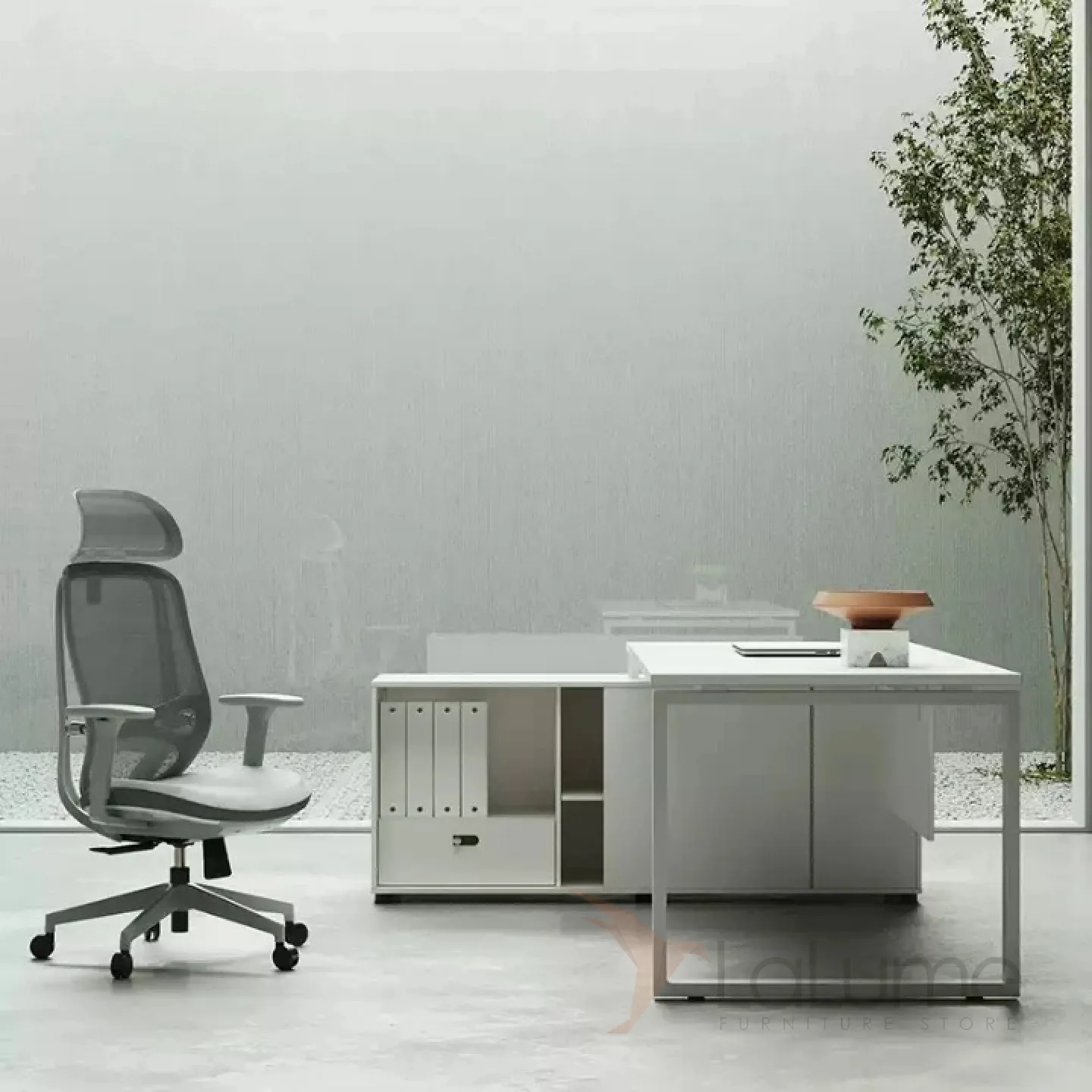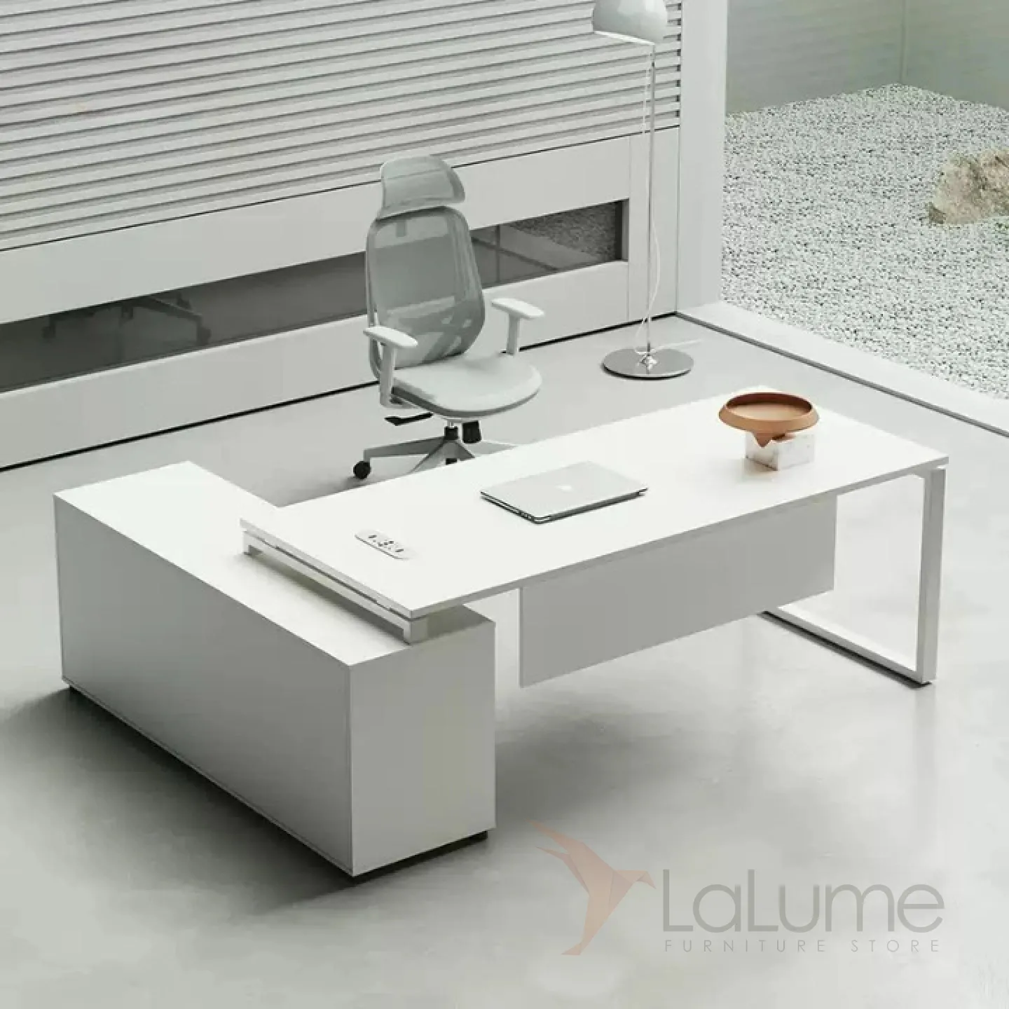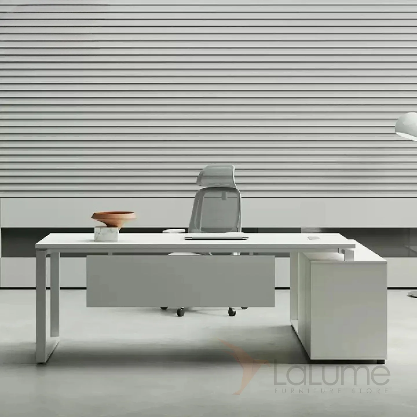 Роскошный стол руководителя из ДСП, удобной формы, с отделом для проводов, несколько ящиков для хранения вещей. В комплекте можно приобрести шкаф, кресло на колесиках.