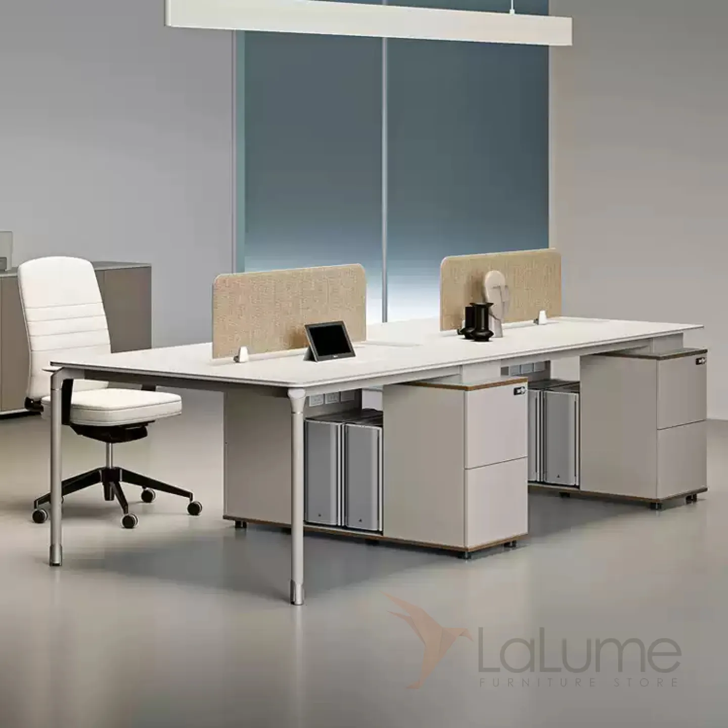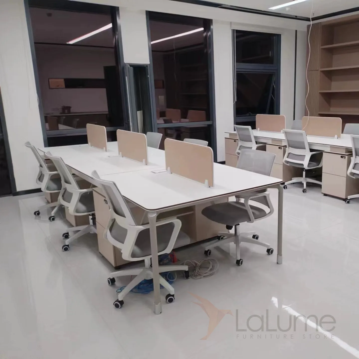 Практичные офисные столы из ДСП с перегородками, отделение для проводов, рассчитанные на 2–8 сотрудников, с комодом с ящиками. Вы легко подберете идеальный вариант для вашего офиса, есть комплектация с креслами на колесах.