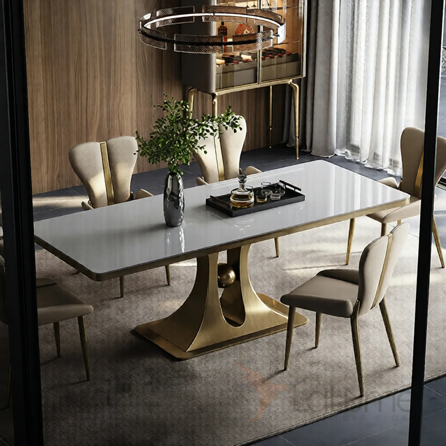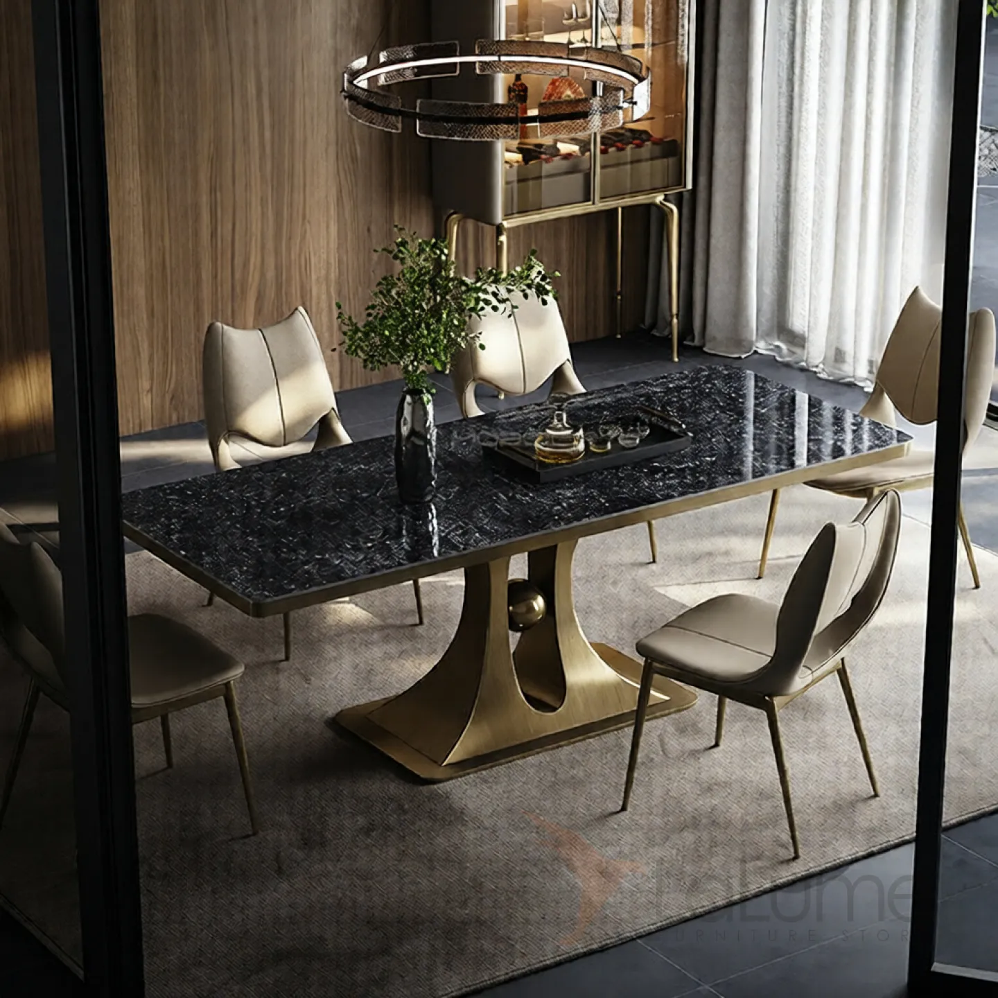 Роскошный обеденный стол Mobeier от LaLume с мраморной столешницей OS40322-32