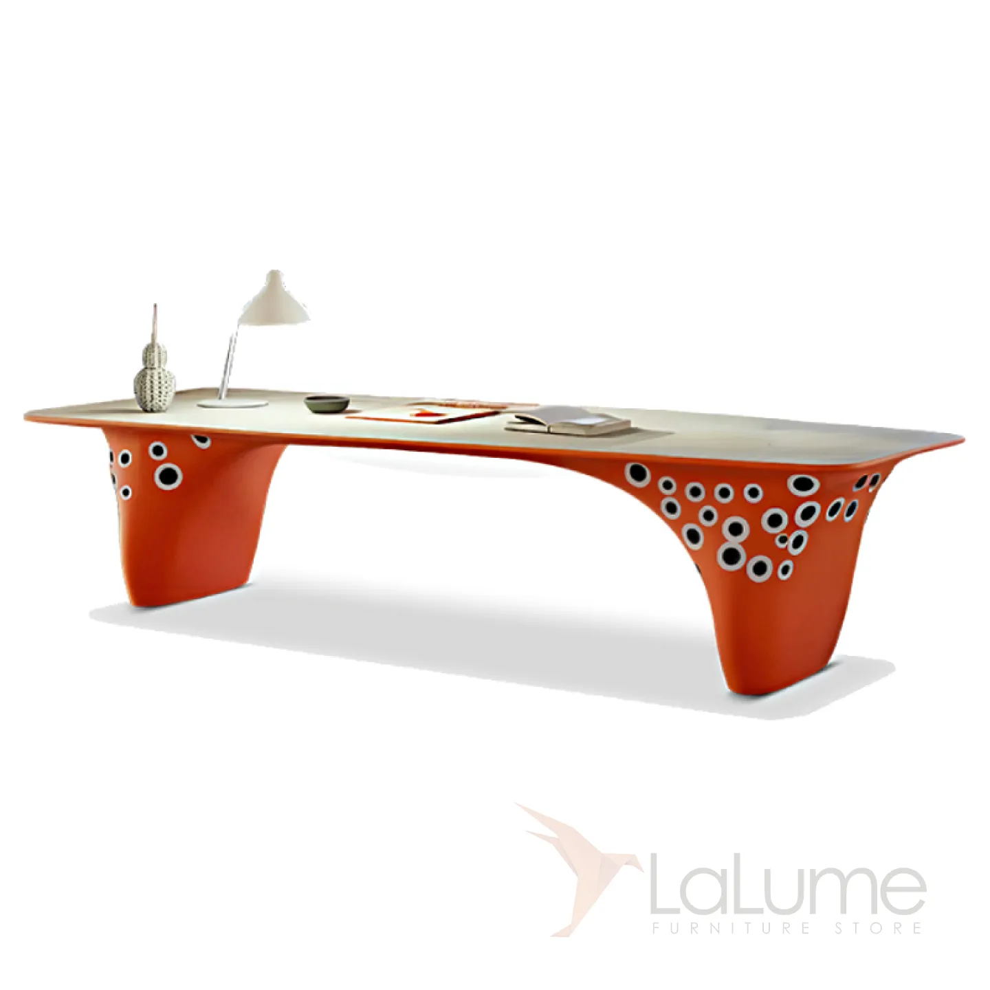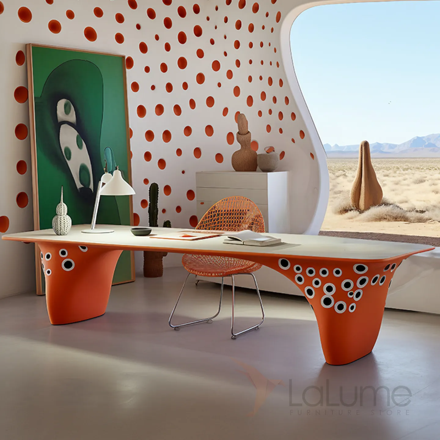 Этот изысканный и эффектный стол для письма, выполненный из массива дерева в насыщенном оранжевом цвете, отличается плавными линиями и станет великолепным дополнением к вашему рабочему пространству.
