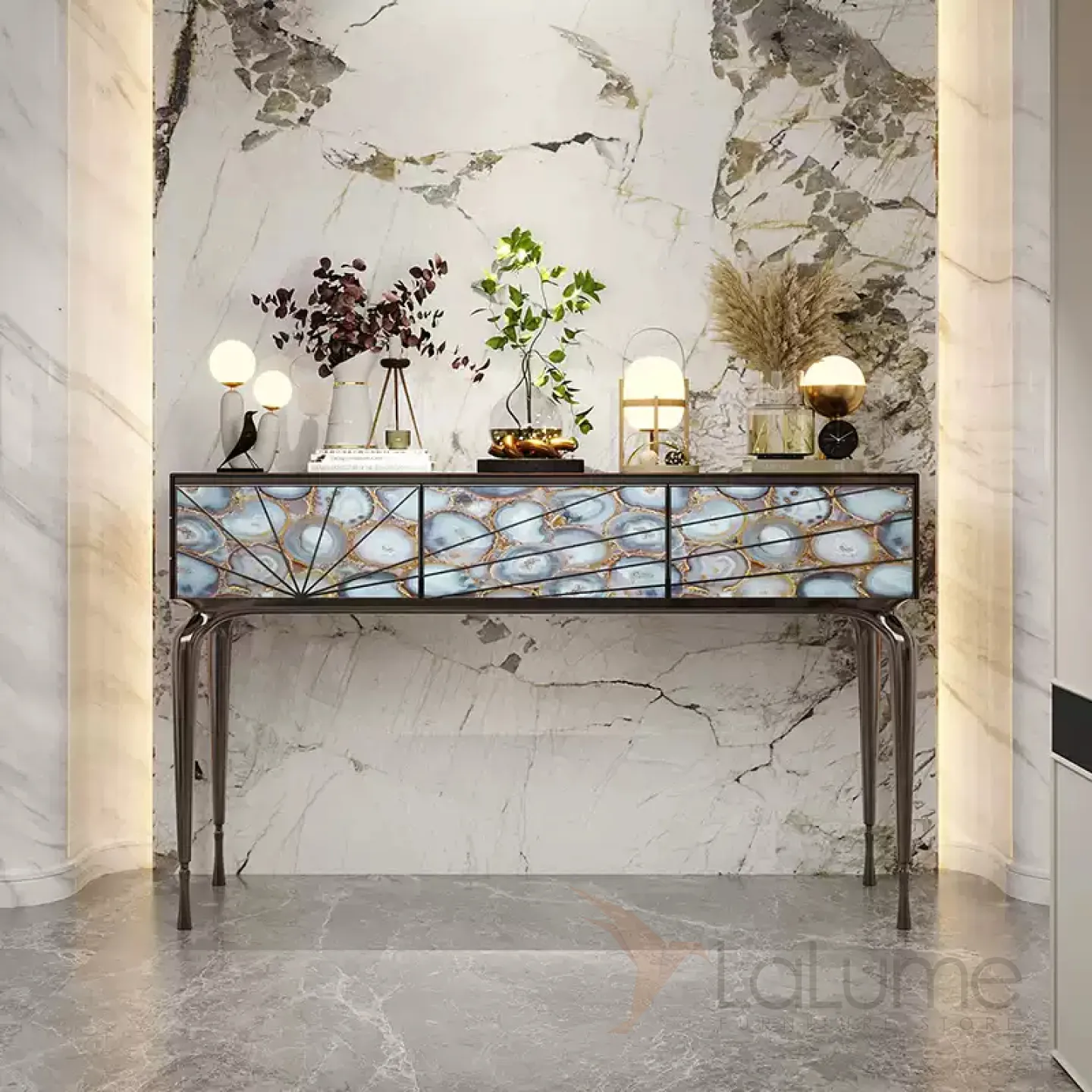 Элегантный пристенный столик Linko от LaLume c фасадом из агата PS39148-32