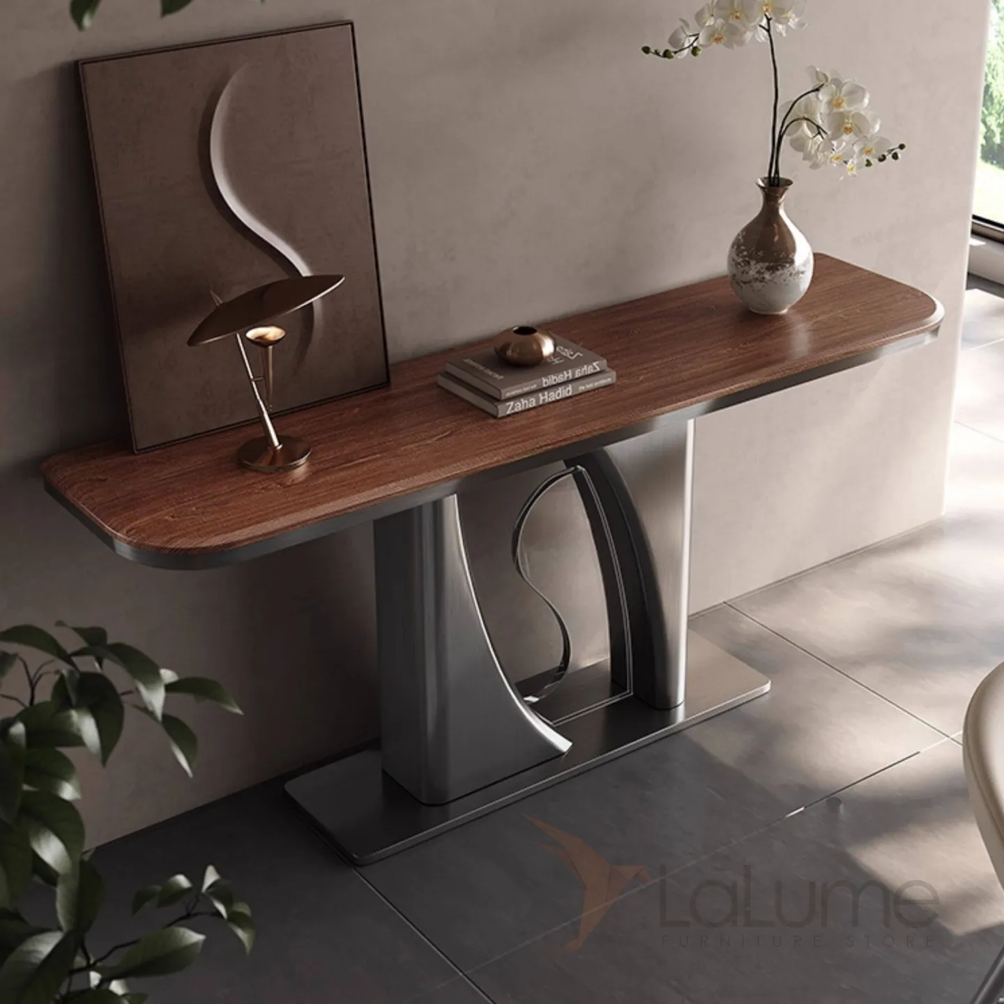 Роскошный пристенный столик Mobeier от LaLume с мраморной или деревянной столешницей PS40318-32