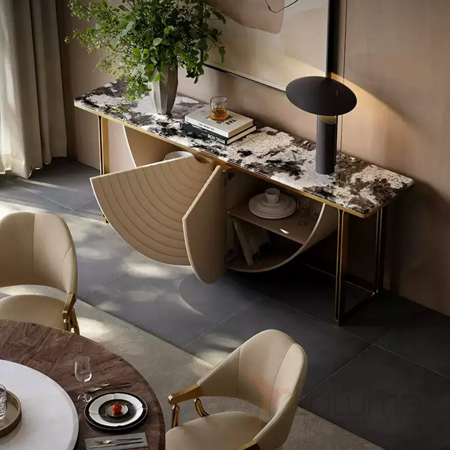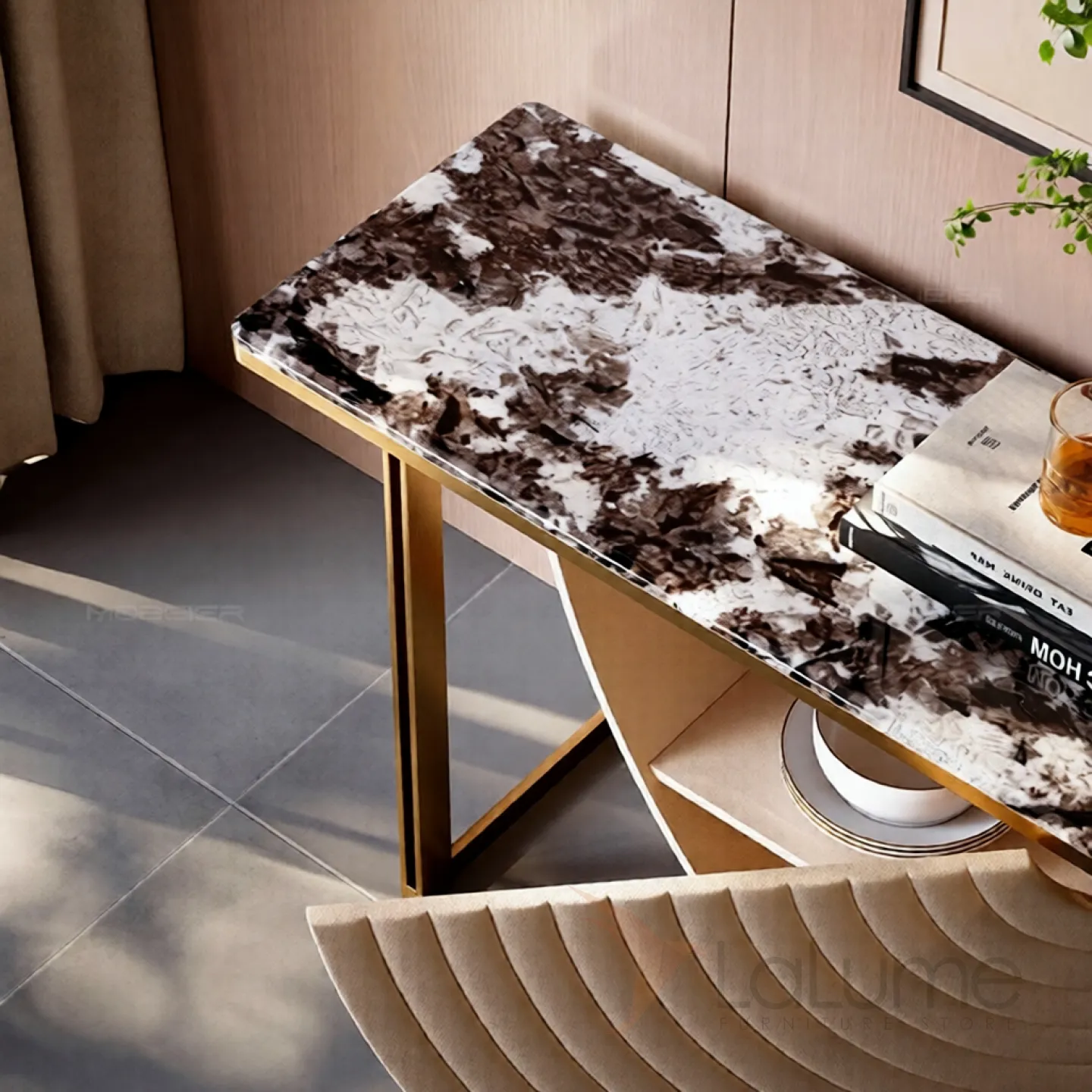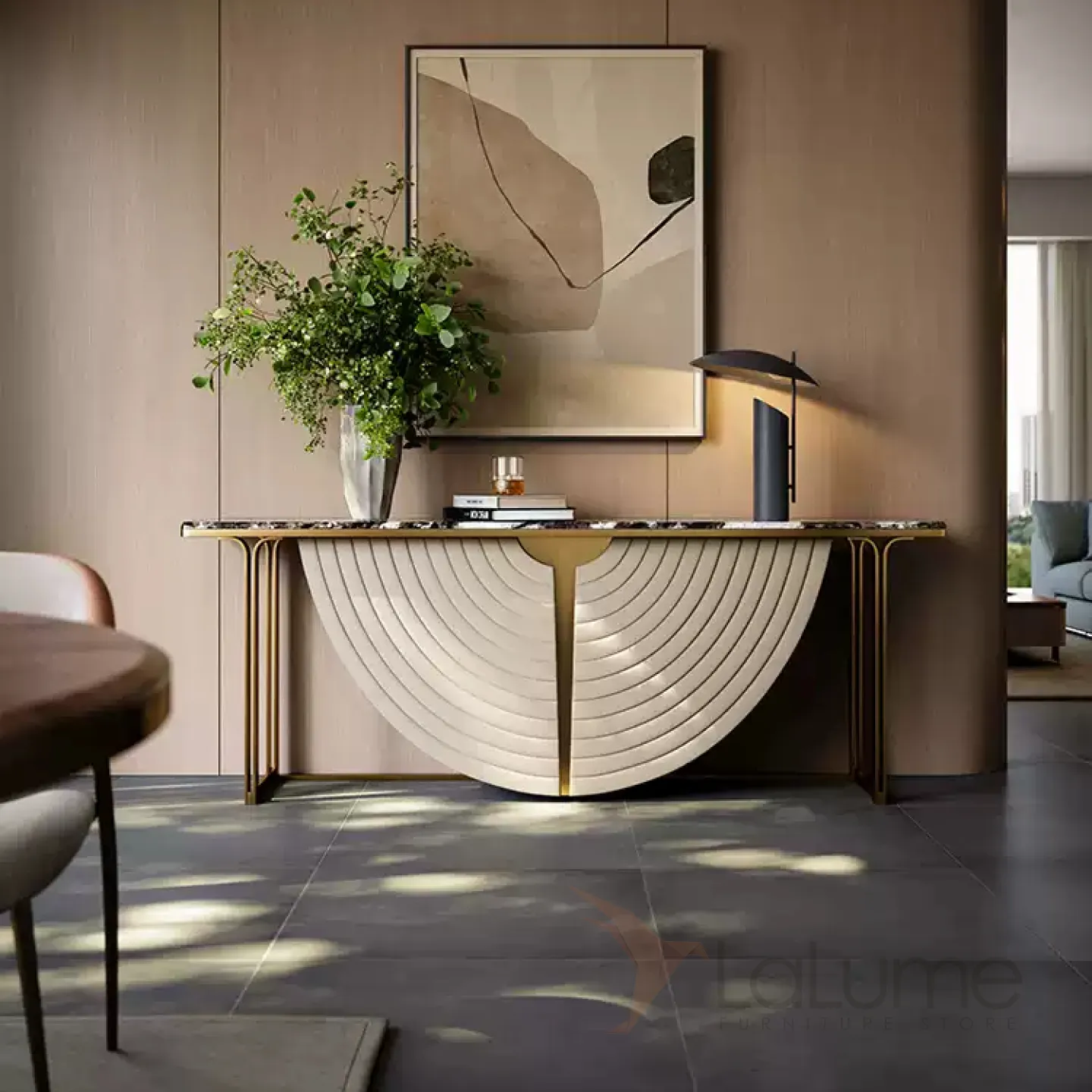 Элегантный пристенный столик Mobeier от LaLume с мраморной столешницей PS40323-32