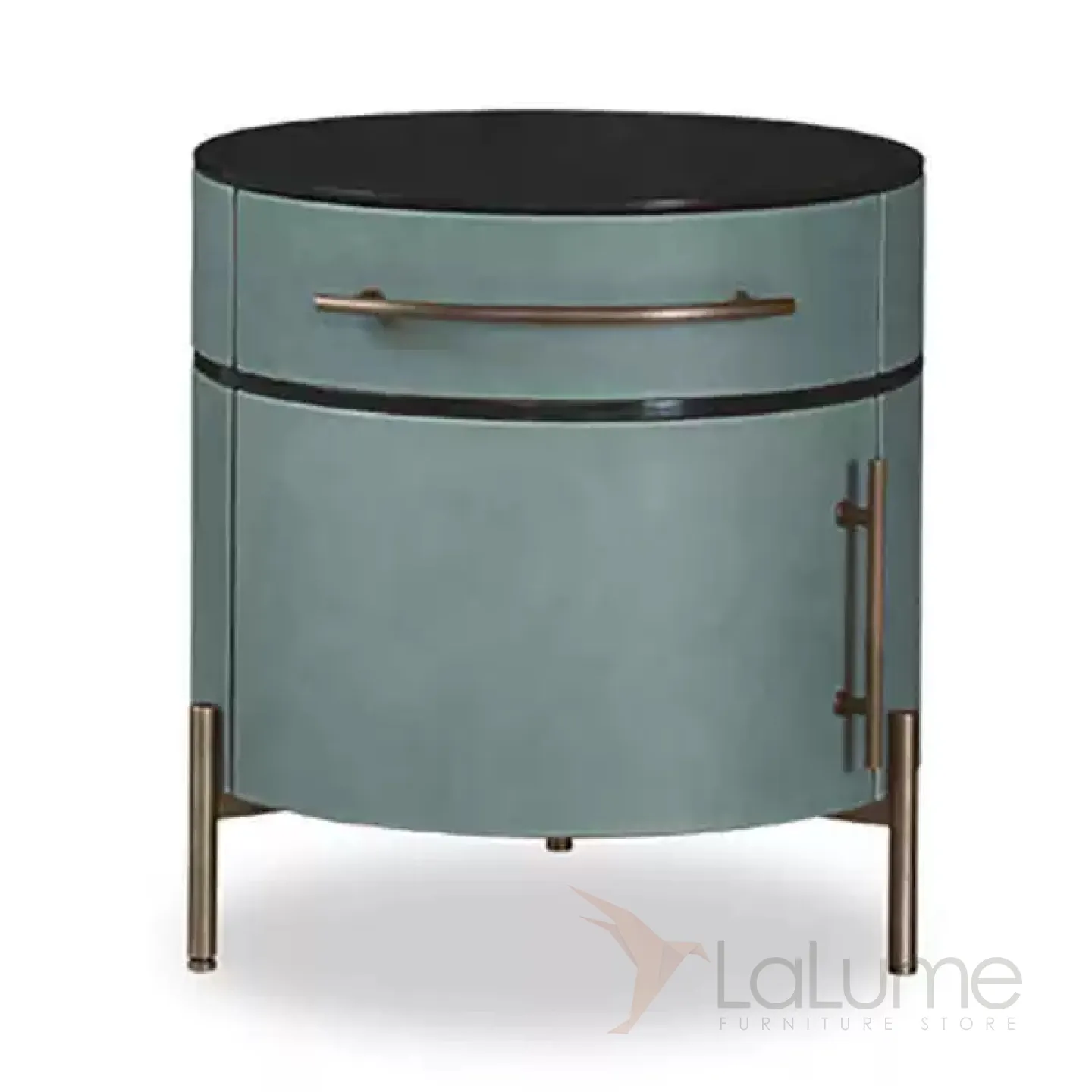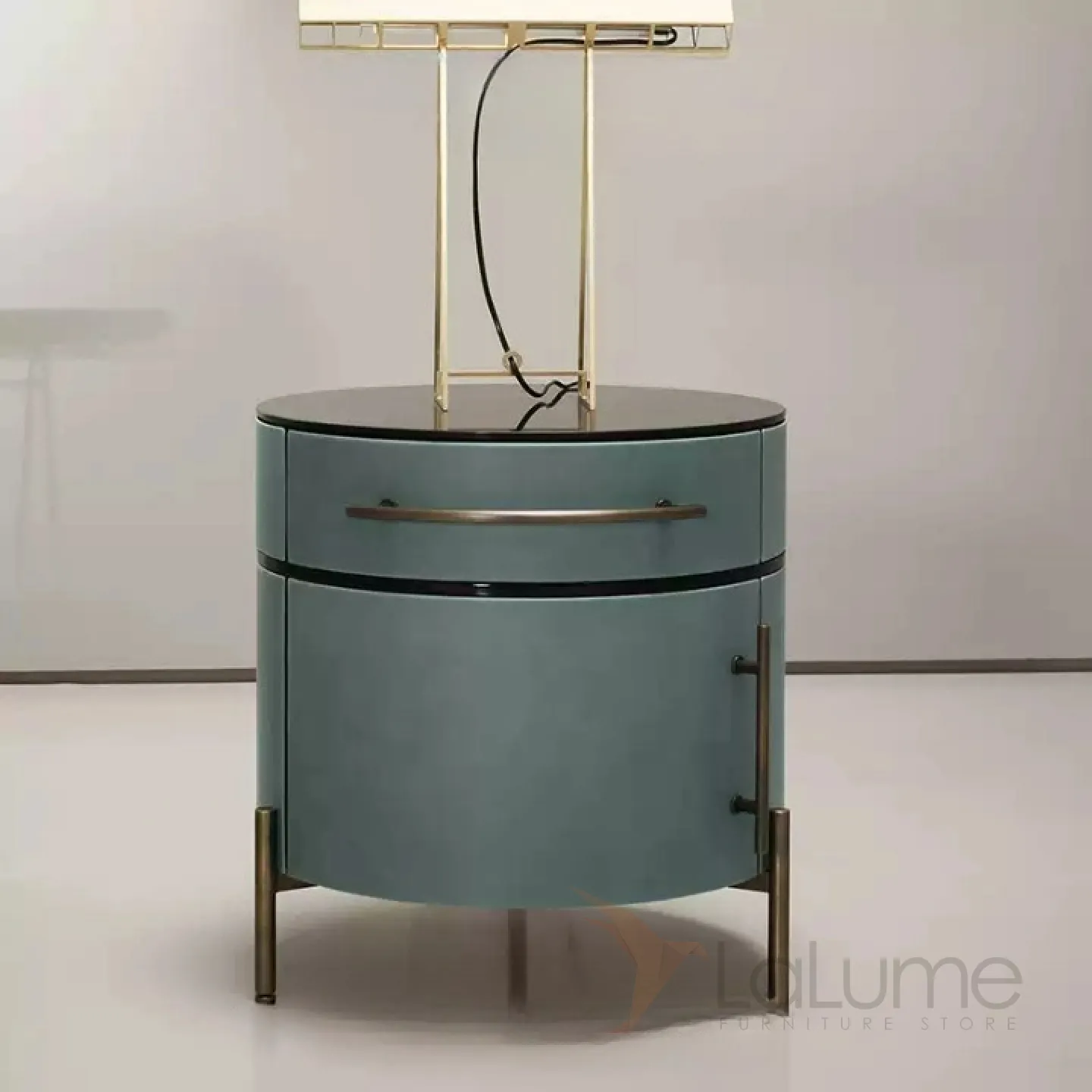 Прикроватная тумба выполнена из прочной древесины и имеет оригинальную форму. Металлические ножки добавляют ей устойчивости. Каркас обит кожей, что придает изделию элегантный вид. Внутри тумбы есть выдвижной ящик и отделение с дверцей для удобного хранения вещей.