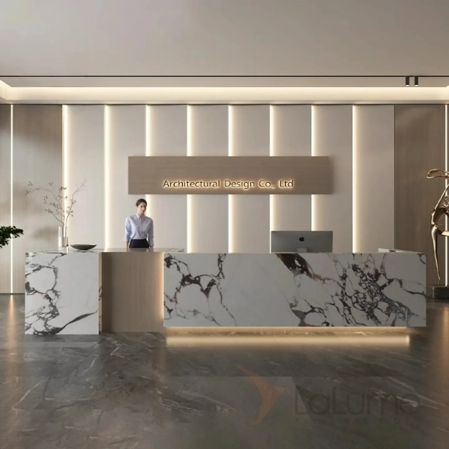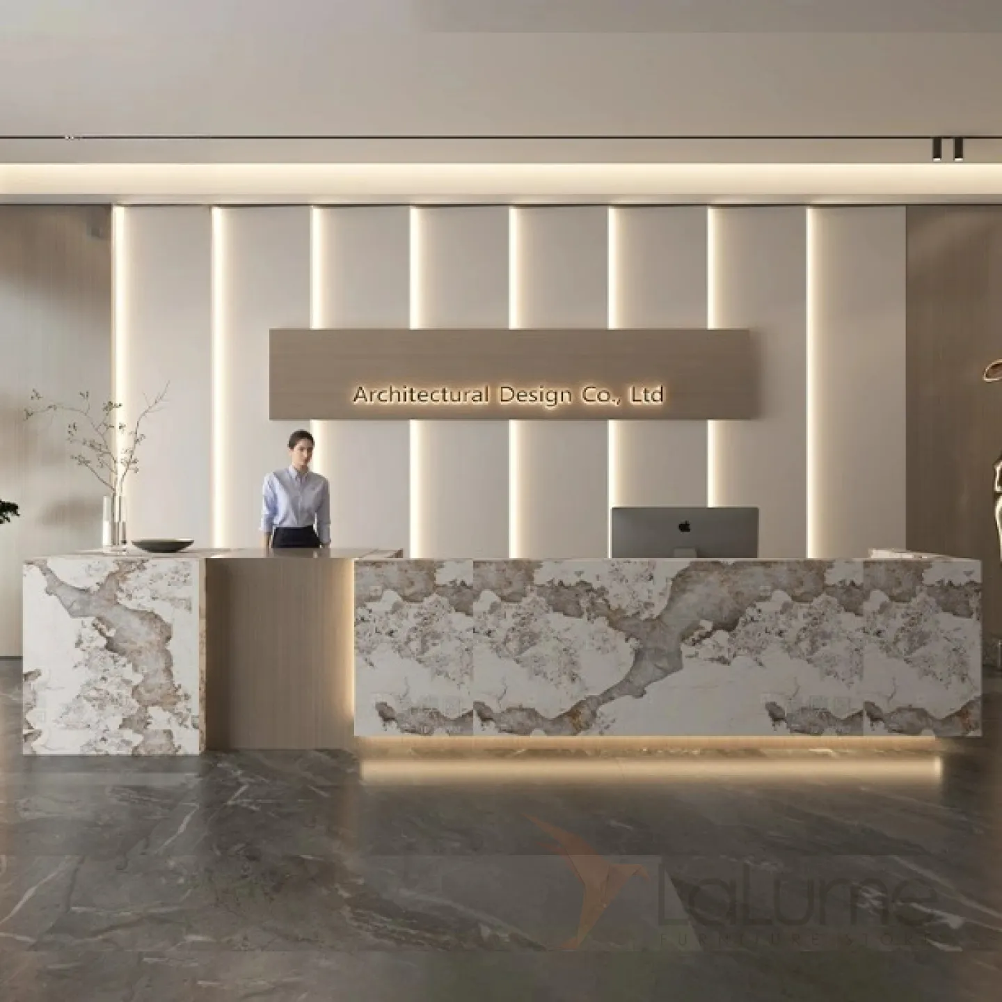 Угловая стойка ресепшен от LaLume с имитацией мрамора RS40233-32