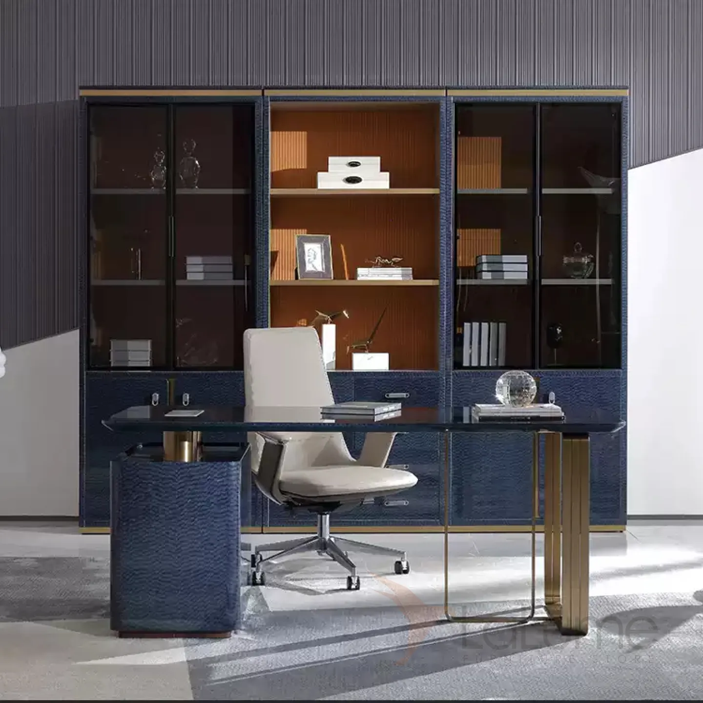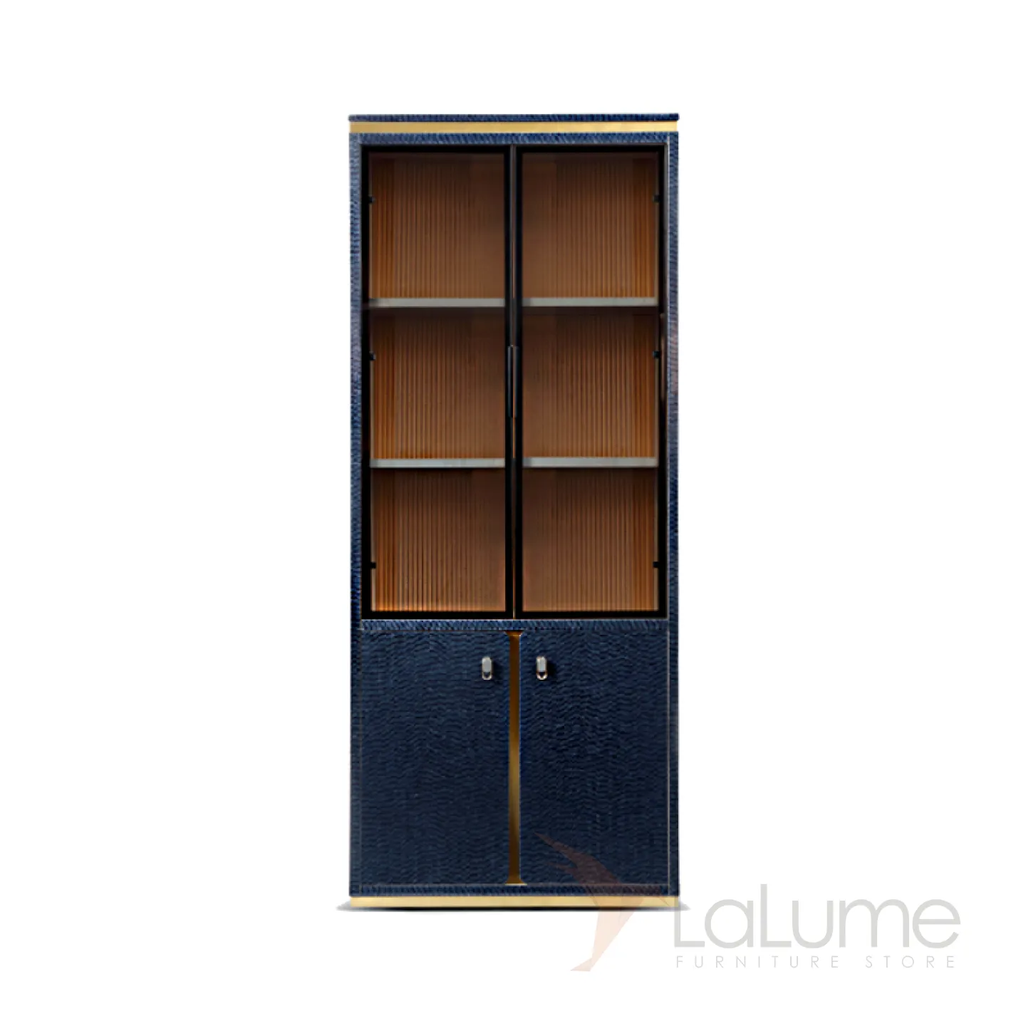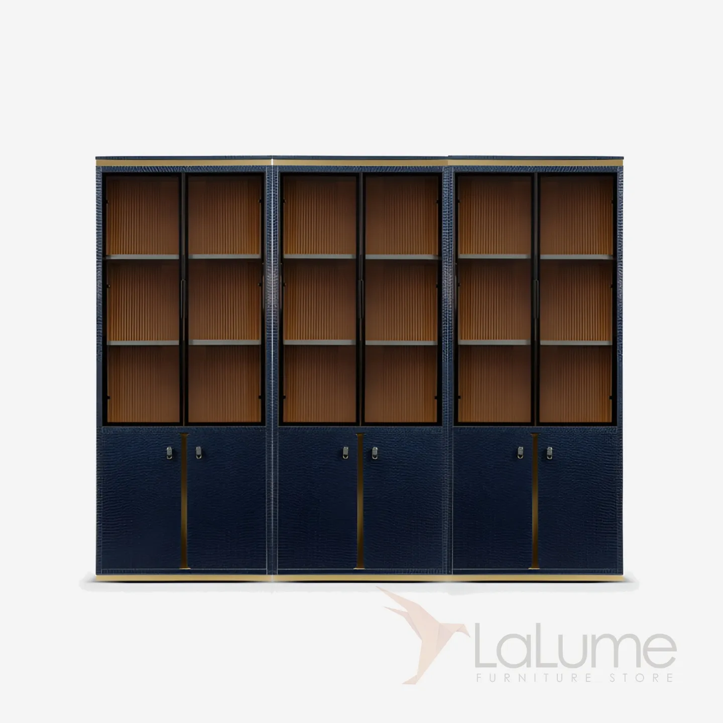 Шкаф состоит из трёх одинаковых секций, каждая из которых со стеклянными дверцами и полками, а также из двух закрытых секций внизу. Стеклянные дверцы не только защищают содержимое от пыли, но и позволяют всегда иметь под рукой всё необходимое. Изготовленный из бука с использованием различных видов шпона, этот шкаф станет настоящим украшением вашего интерьера.