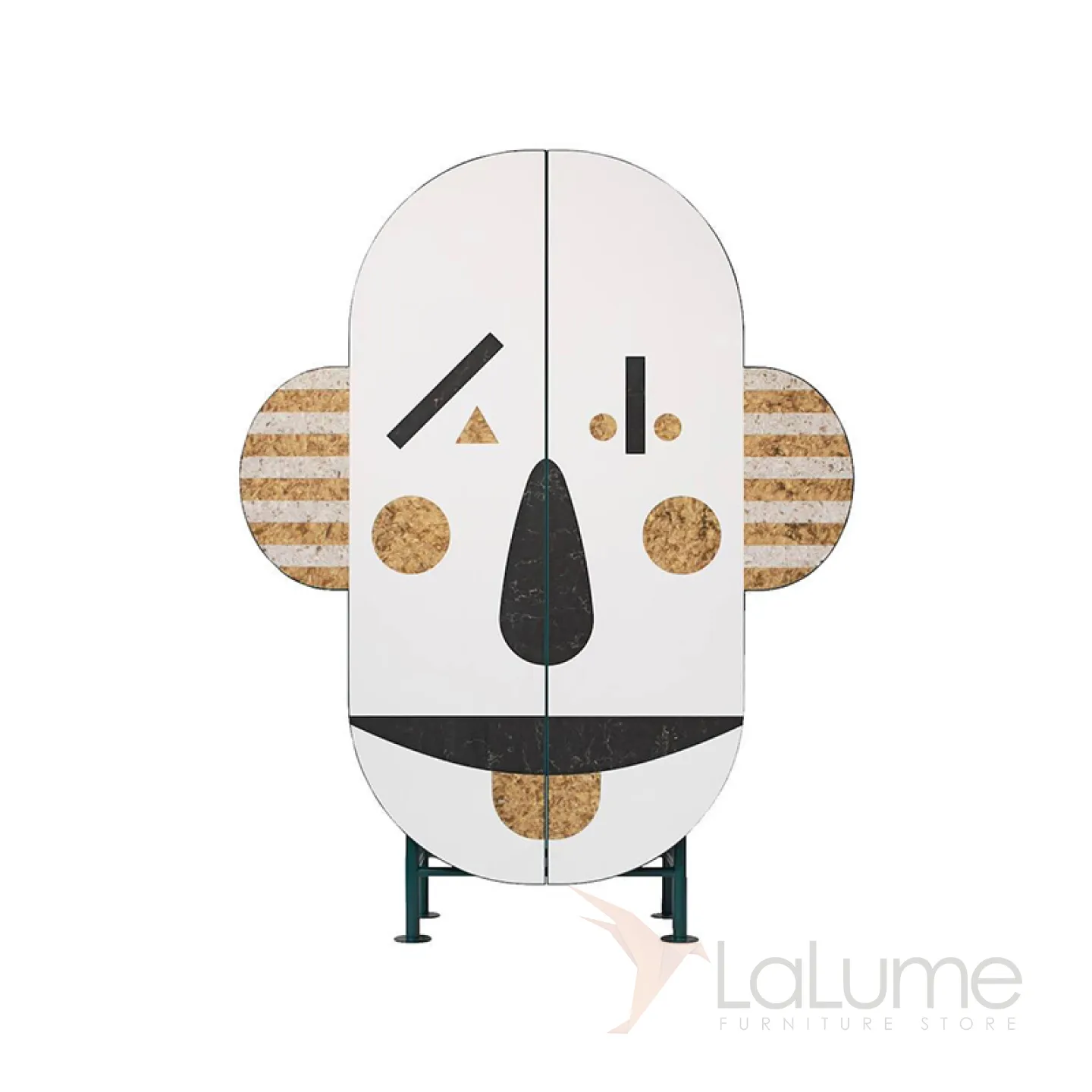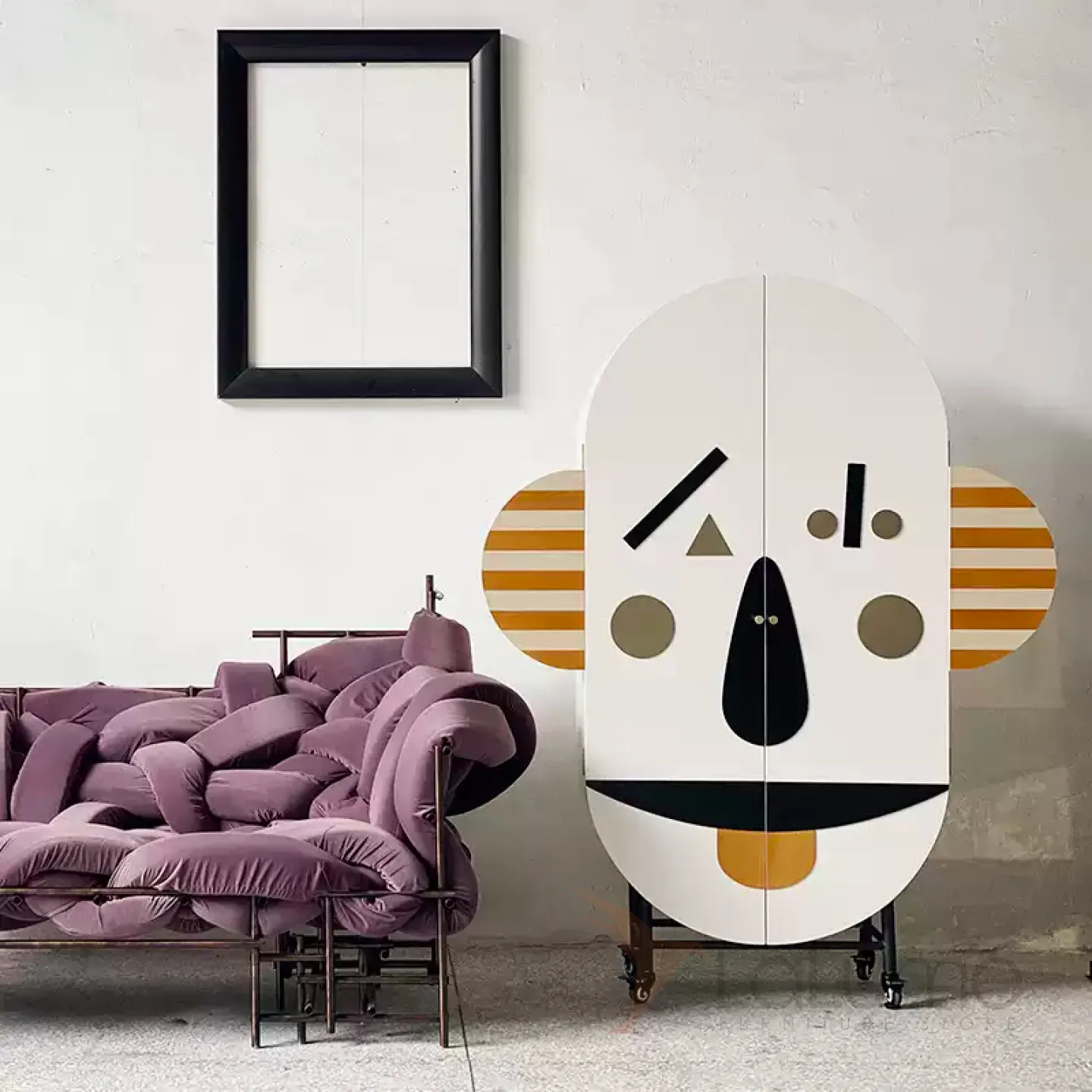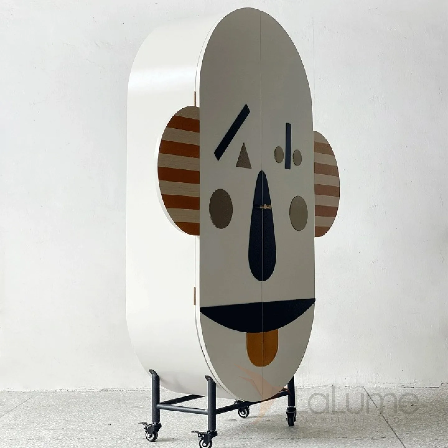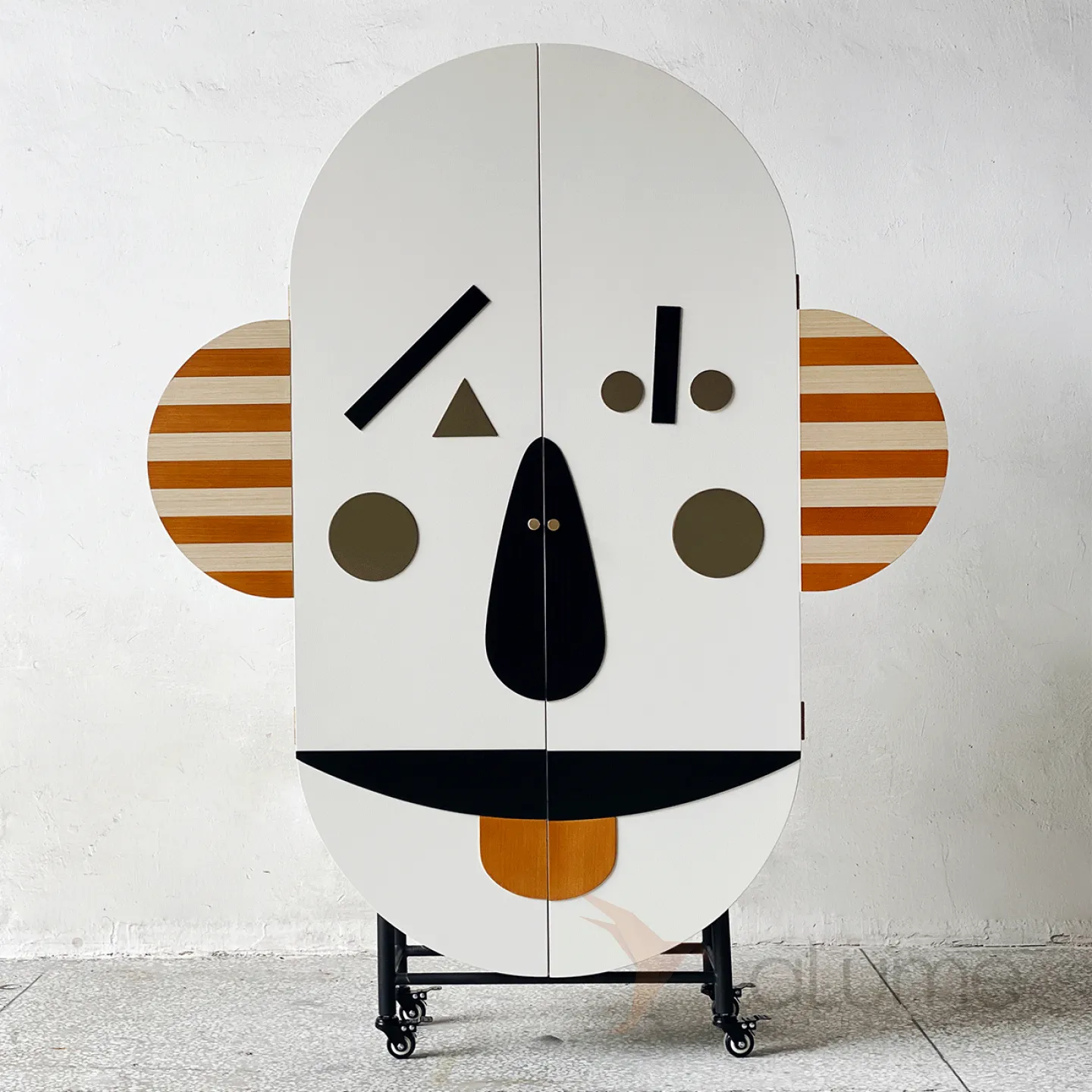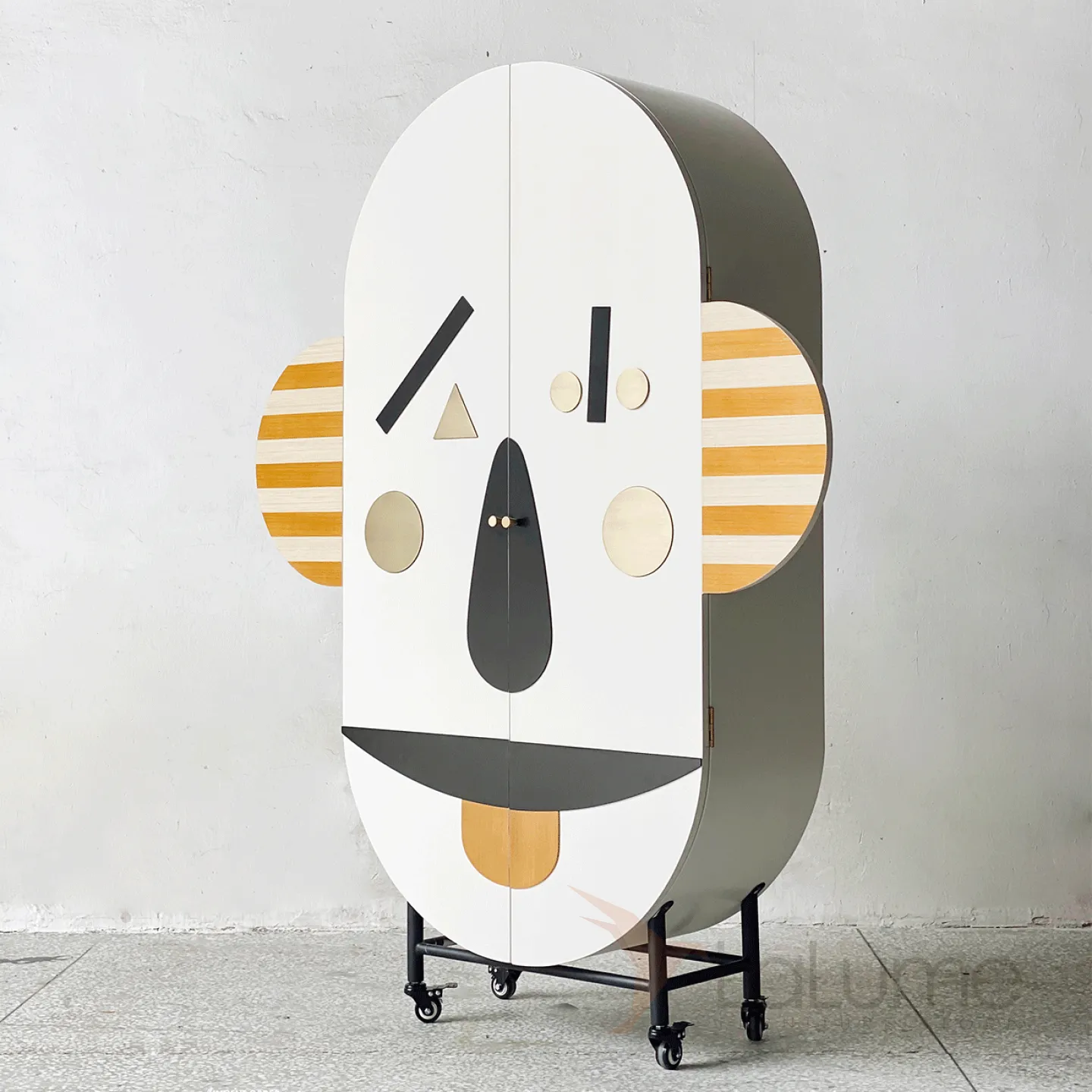 Стилизованный дизайн – шкаф выполнен в форме головы клоуна с выразительными деталями, создающими художественный образ.
