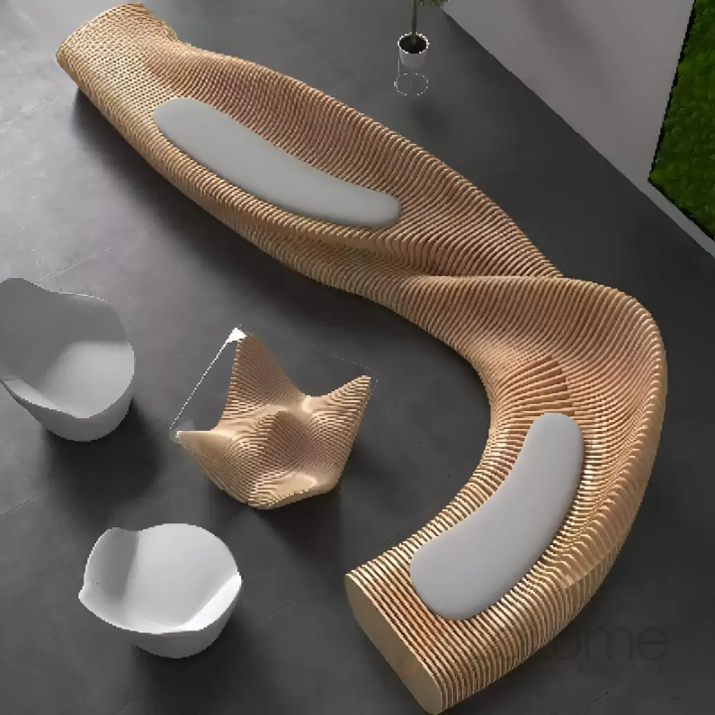 Необычная по дизайну уличная скамейка, выполненная из натурального дерева, составные деталей. Станет украшением фойе офиса, гостиницы, торгового центра.