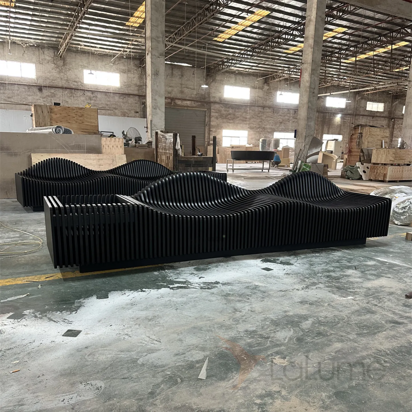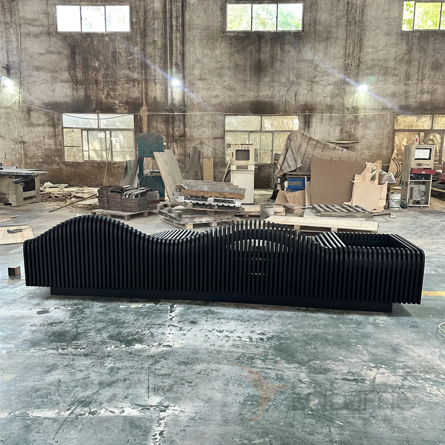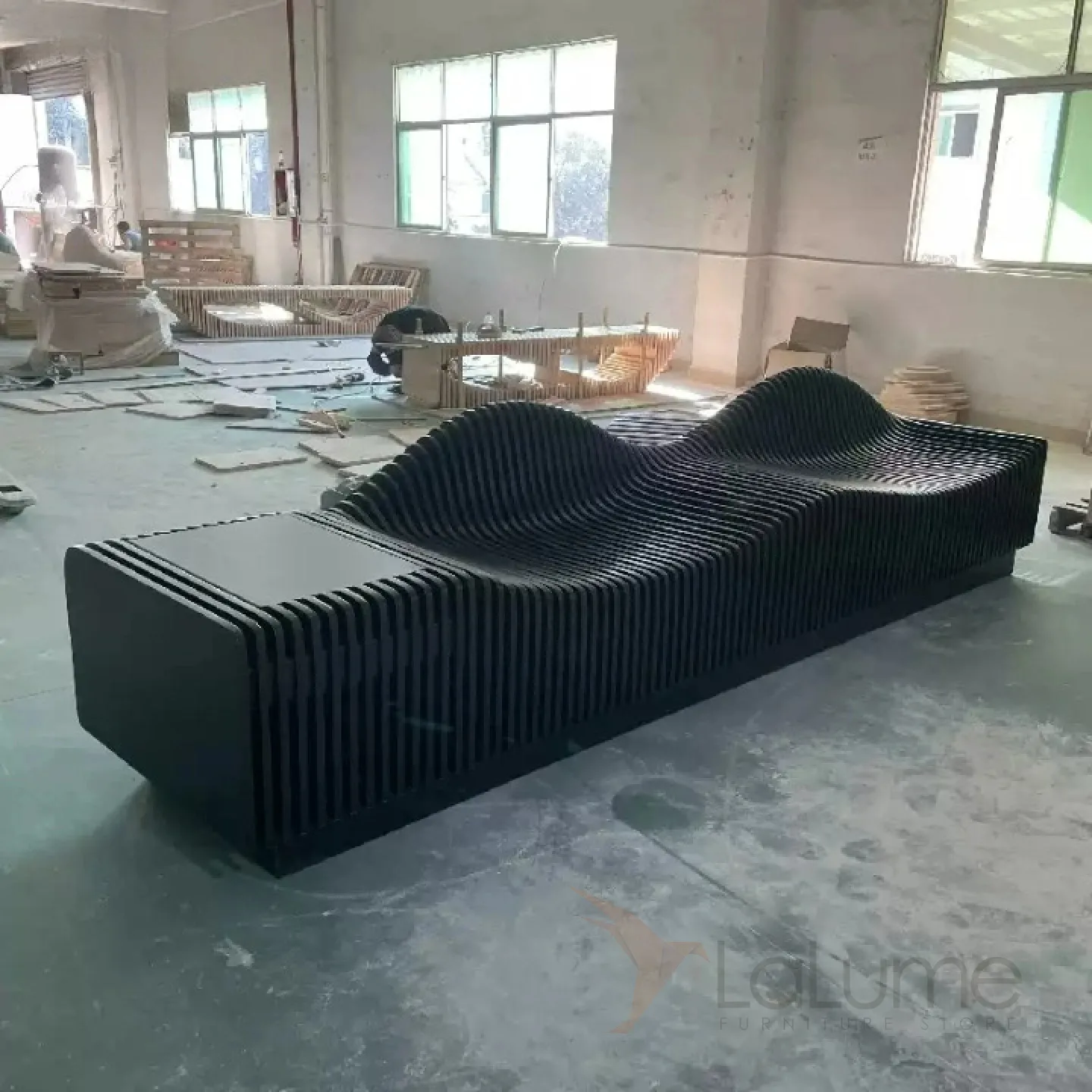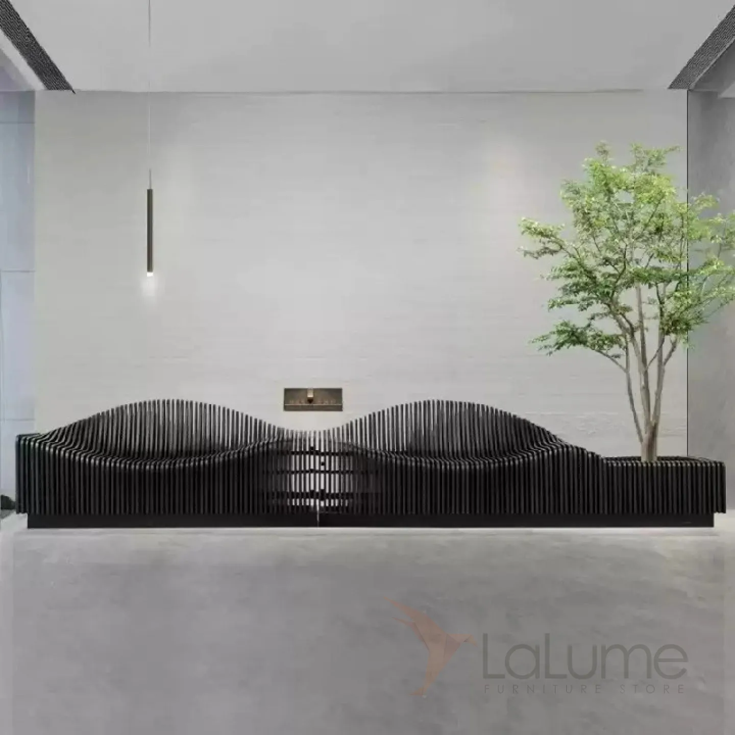 Необычная по дизайну скамейка, выполненная из натурального дерева, составные деталей с отсеком для квадратного кашпо. Станет украшением фойе офиса, гостиницы, торгового центра.