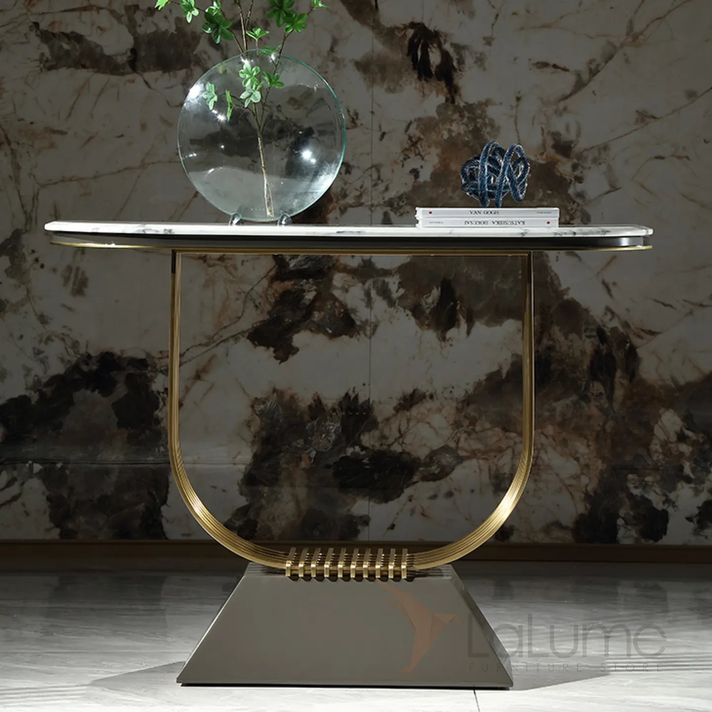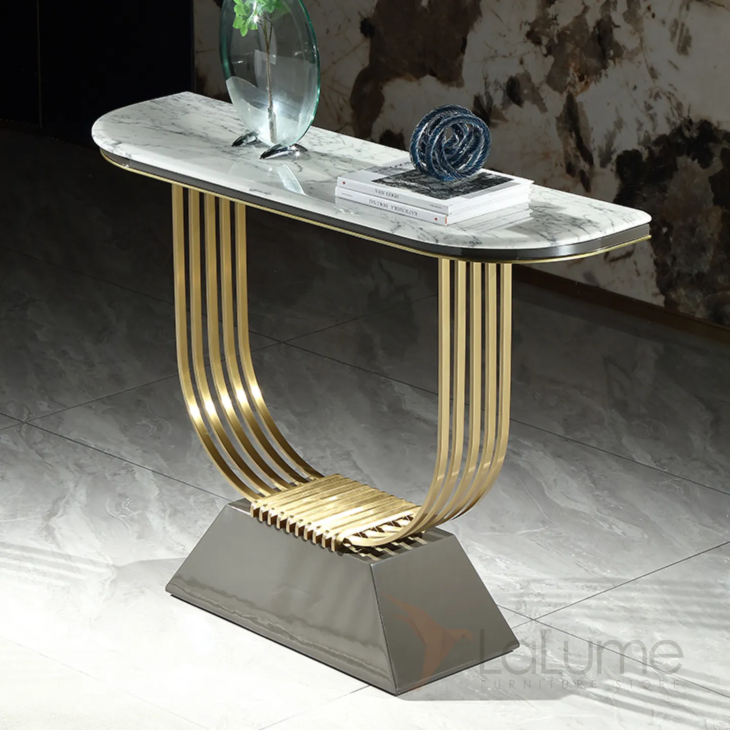 Элегантный пристенный столик MIVICA из дерева, стали и мрамора ST38195-32