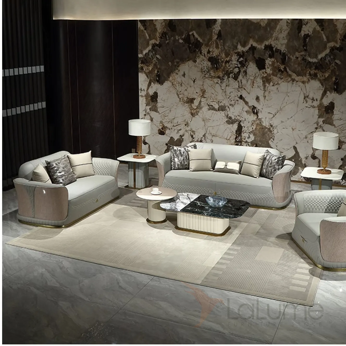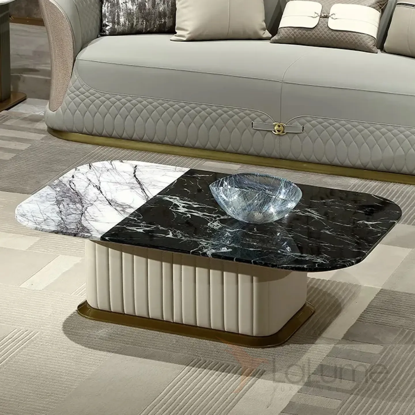 Современный журнальный стол MIVICA из мрамора, кожи, красного дерева ST38233-32