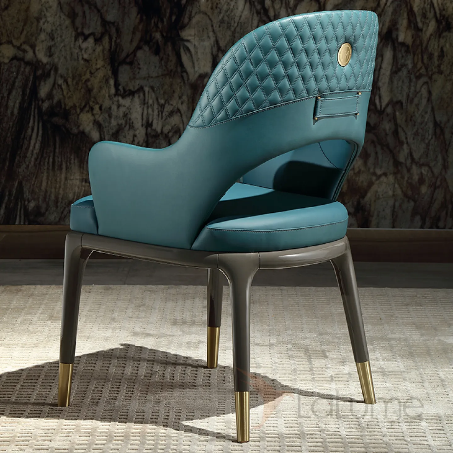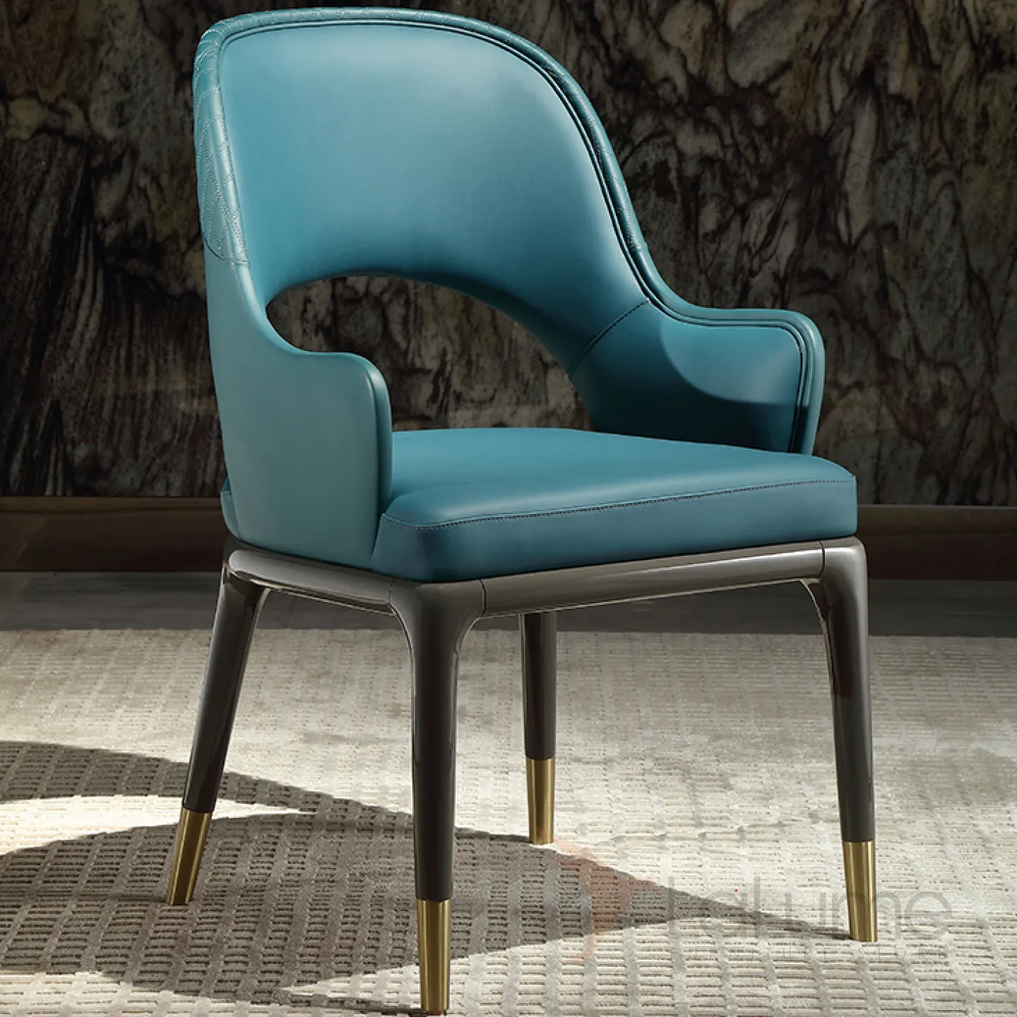 Эргономичный обеденный стул MIVICA из кожи, латуни и красного дерева ST38278-32