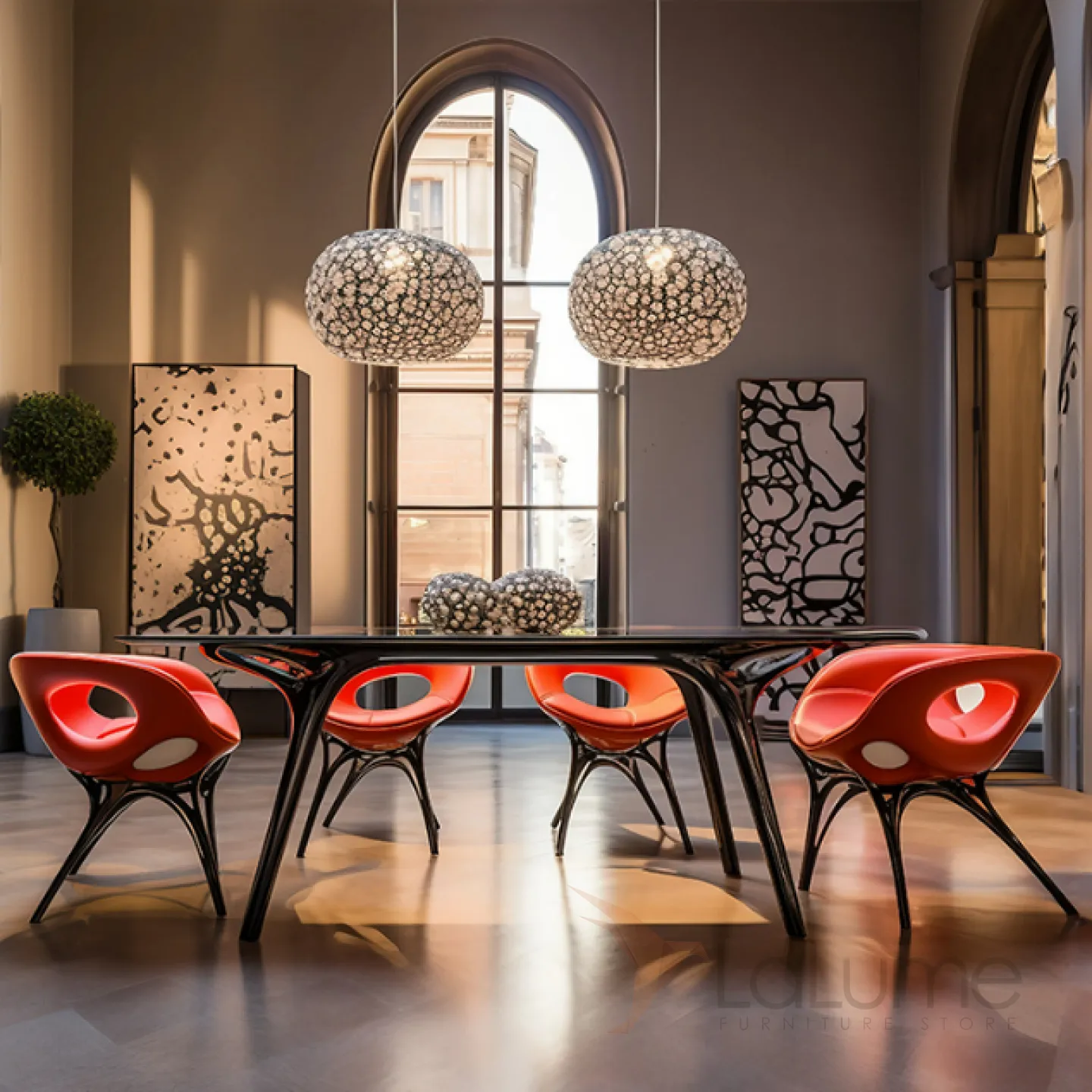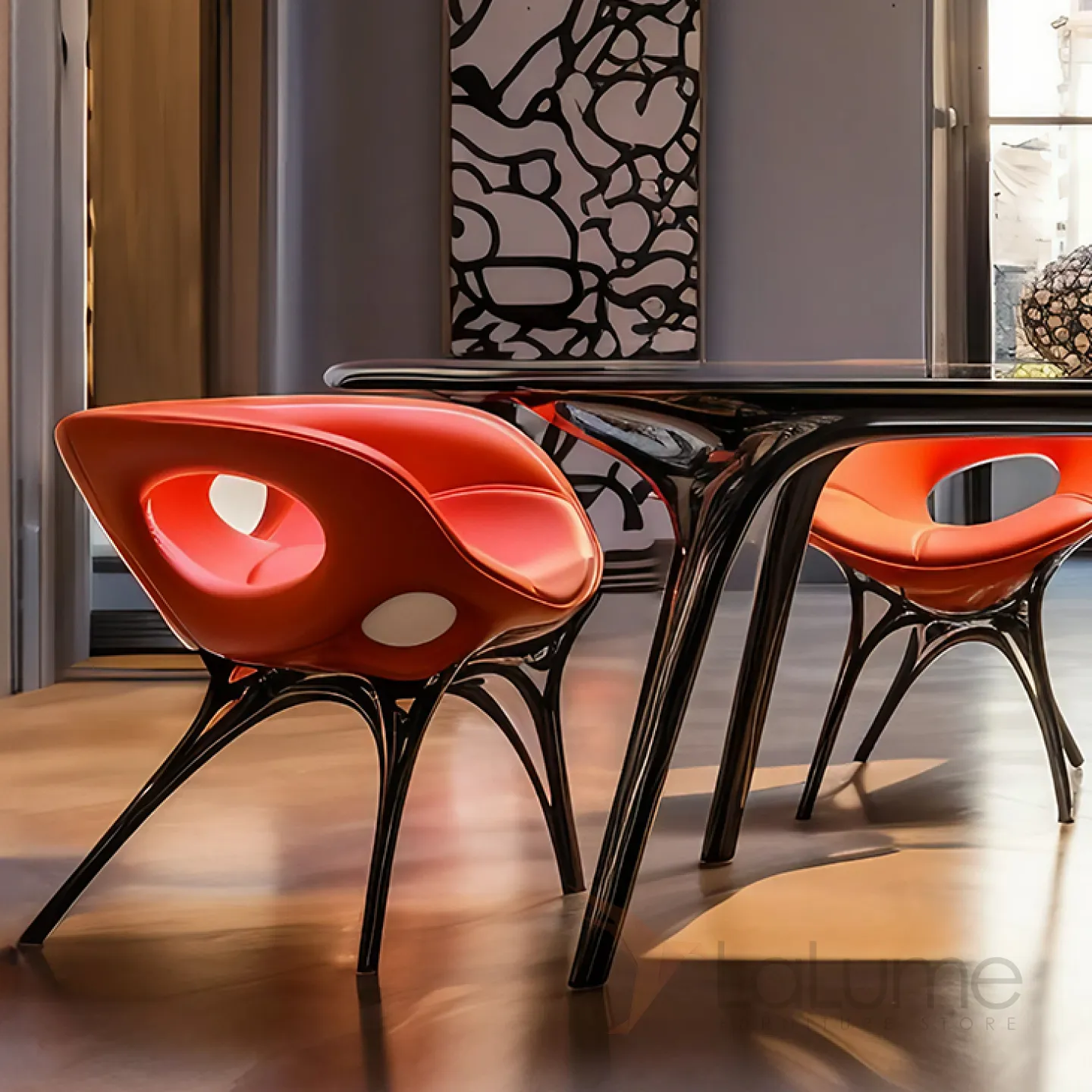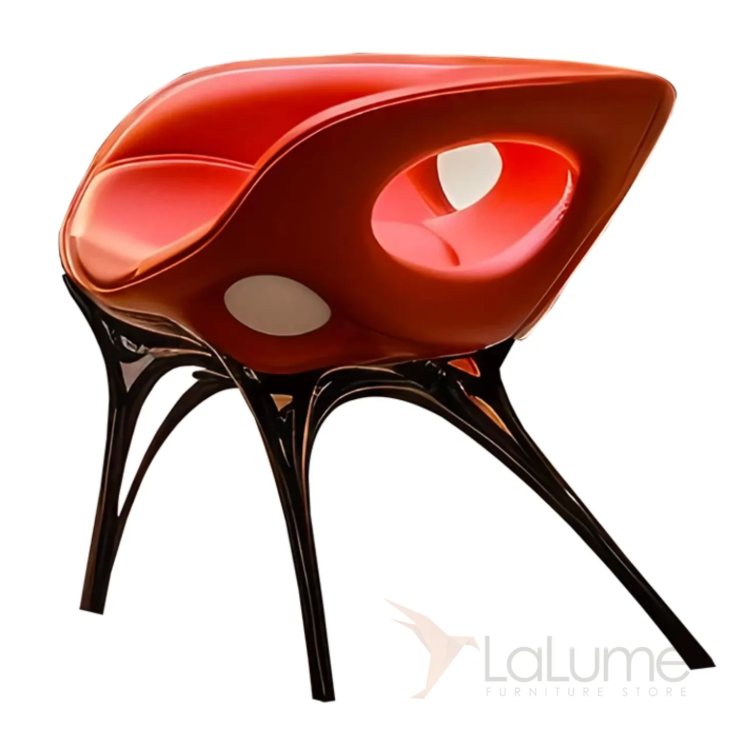 Этот дизайнерский стул создан из инновационного пластика ASA, дополненного деревянным основанием, поролоновыми вставками и обивкой из ярко-красной кожи. Его сиденье обладает эргономичной формой, что обеспечивает высокий уровень комфорта во время использования.