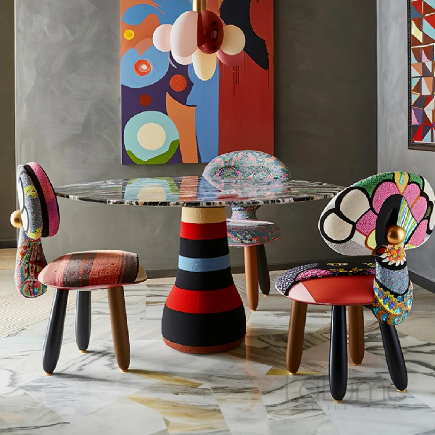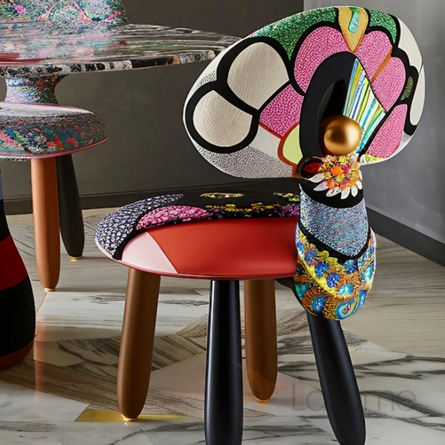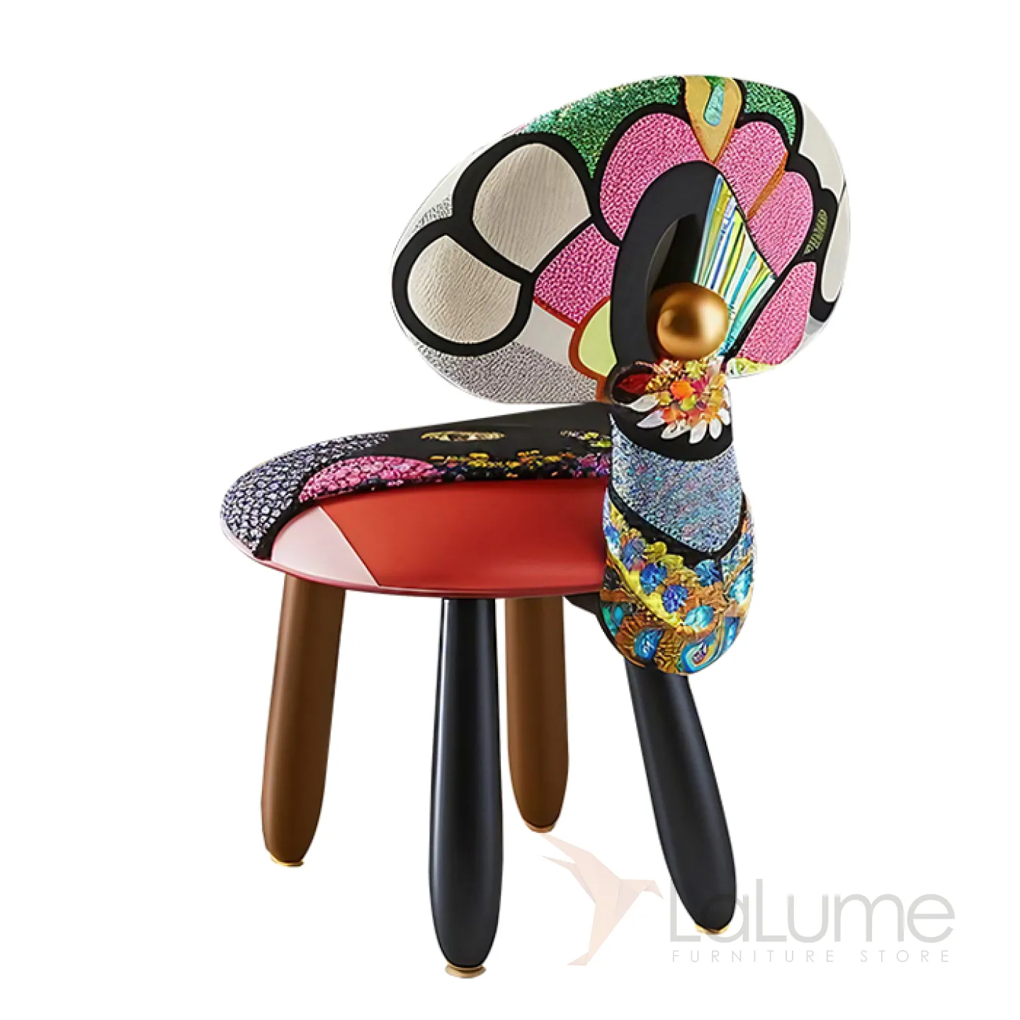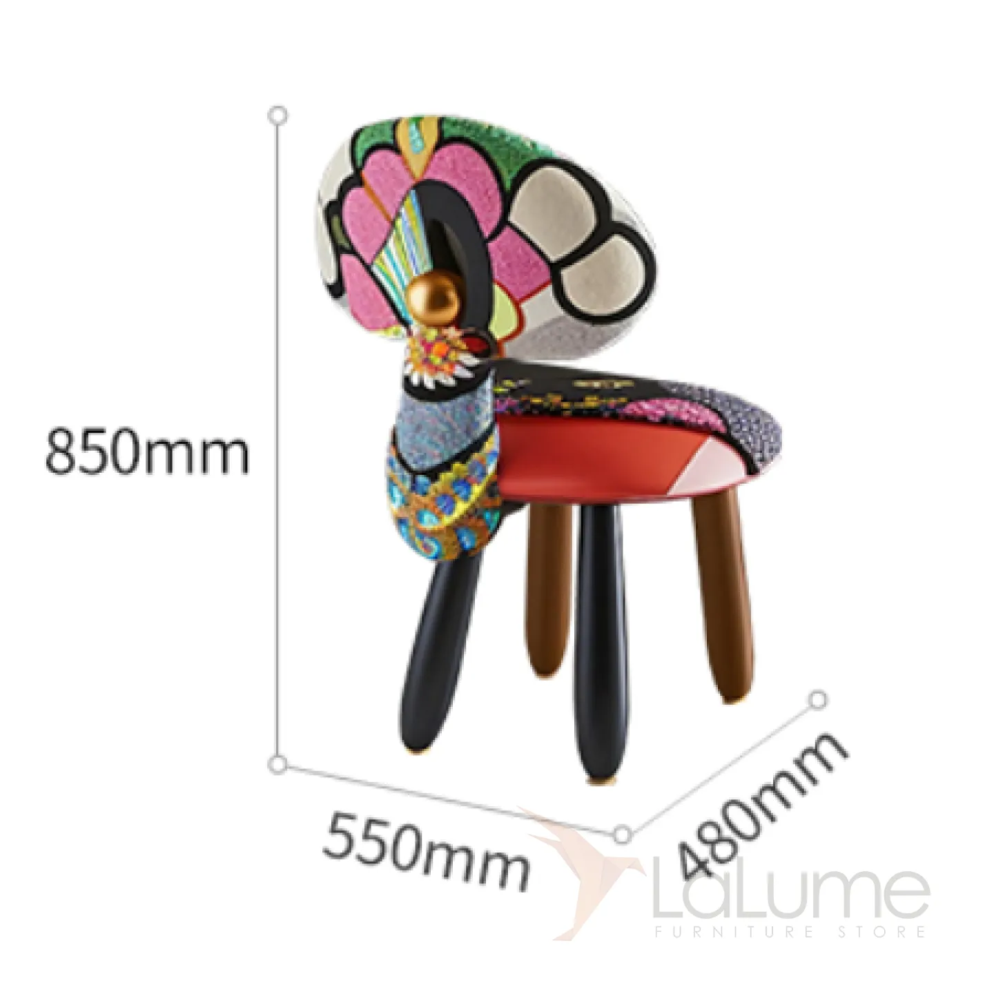 Оригинальный стул с ярким дизайном понравится любителям современного интерьера. Его спинка, напоминающая хвост павлина по форме и цвету, добавляет акцента. Эргономичная конструкция гарантирует удобство и комфорт при использовании.