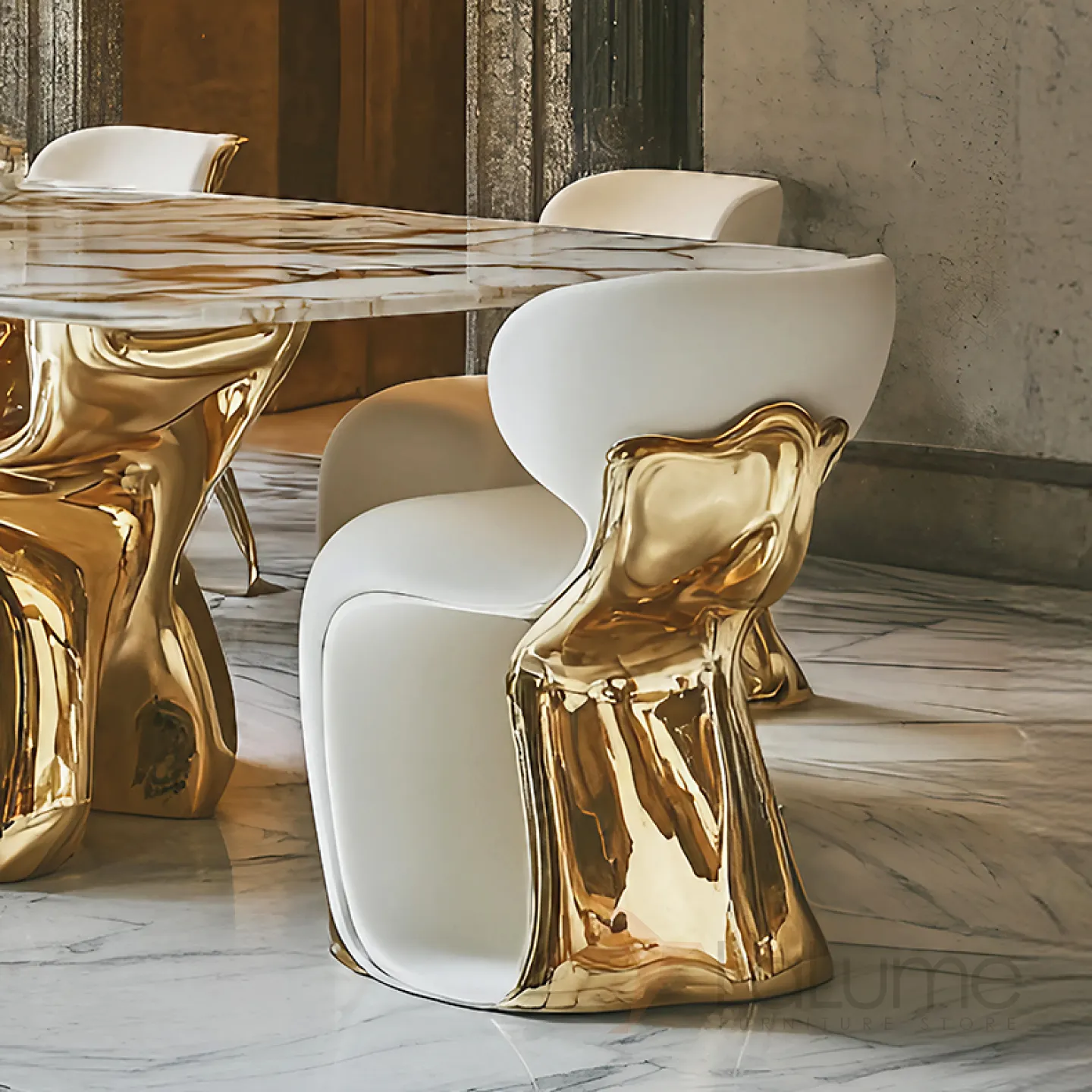 Обеденный стул выполнен из прочного сплава ASA с золотым покрытием. Сиденье эргономичной формы изготовлено из инновационного поролона и высококачественной искусственной кожи. Такая комбинация обеспечивает максимальный комфорт и стильный внешний вид, делая стул идеальным дополнением для любого интерьера.