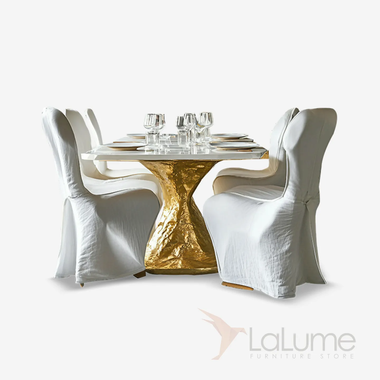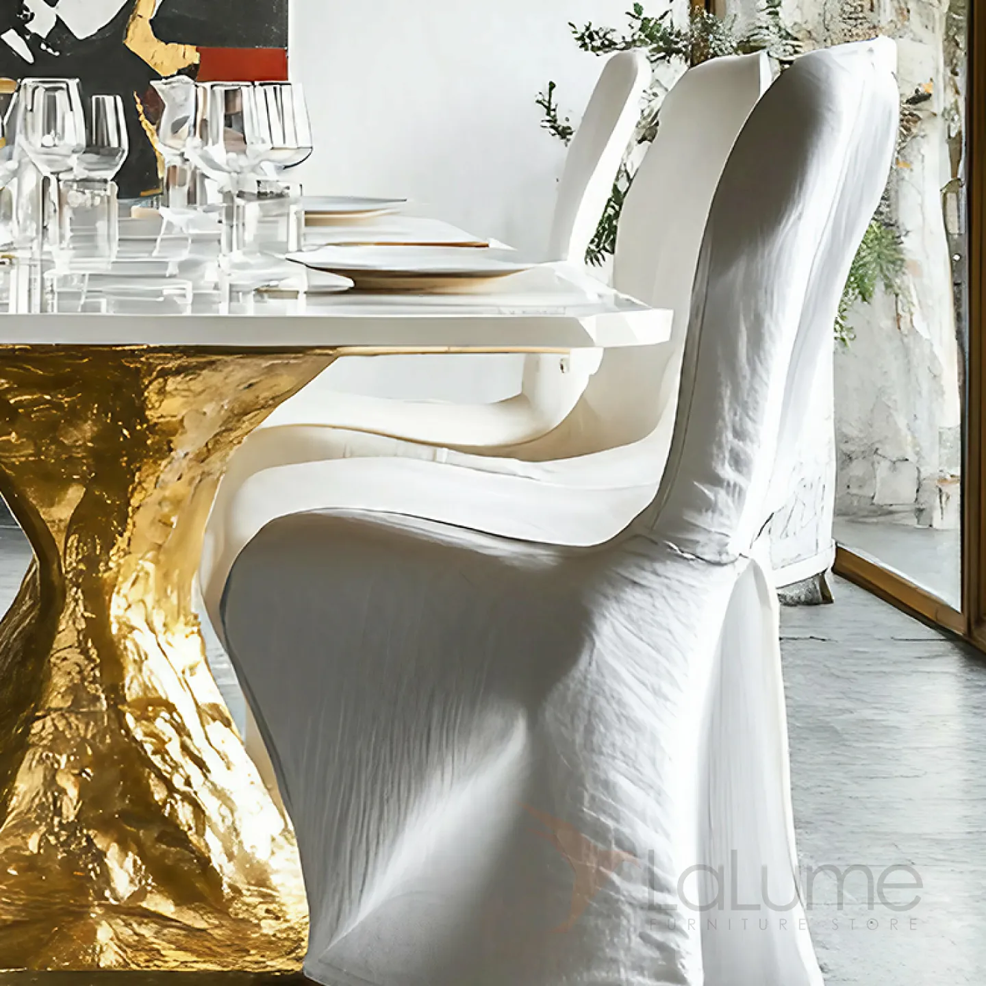 Стул для обеденной зоны отличается утончённым дизайном и изготовлен из надёжного сплава ASA, покрытого золотом. Обивка стула выполнена из высококачественного льняного материала и хлопка.