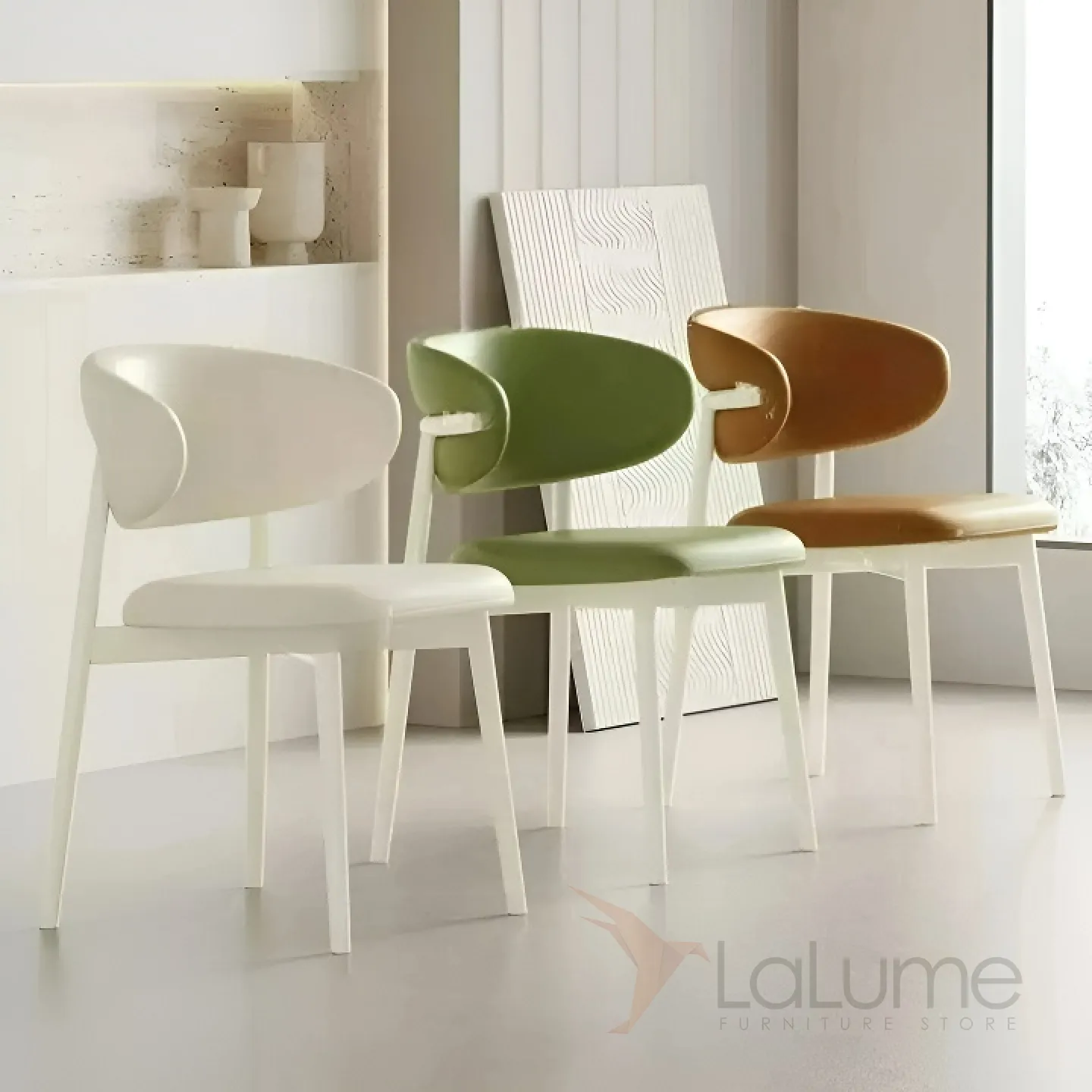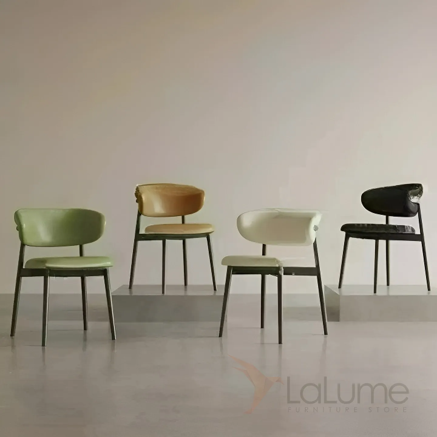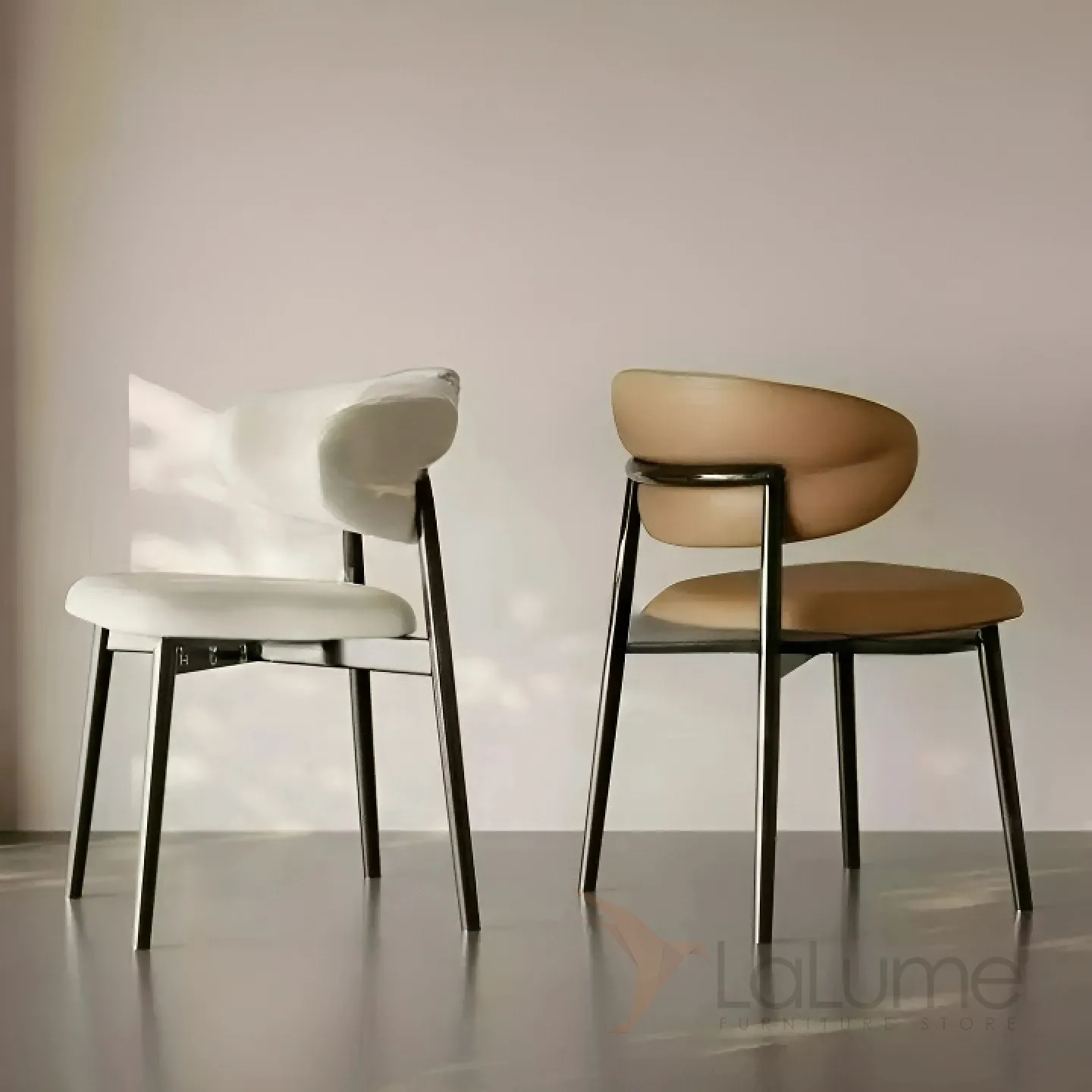 Изящный обеденный стул с металлическим основанием и элегантной спинкой. Обивка кожей с микрофиброй в разных цветах.